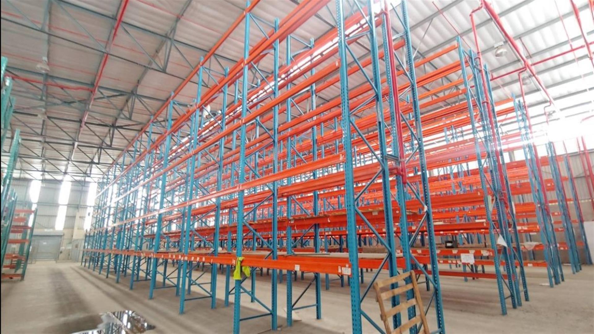 The warehouse features ample internal height, allowing for efficient racking and storage, and is serviced by six roller shutter doors to support high-volume dispatch and receiving. A single dock leveller further enhances loading capability, while the large open floor area provides flexibility for various operational layouts. The facility benefits from good natural light, contributing to a practical and functional working environment.