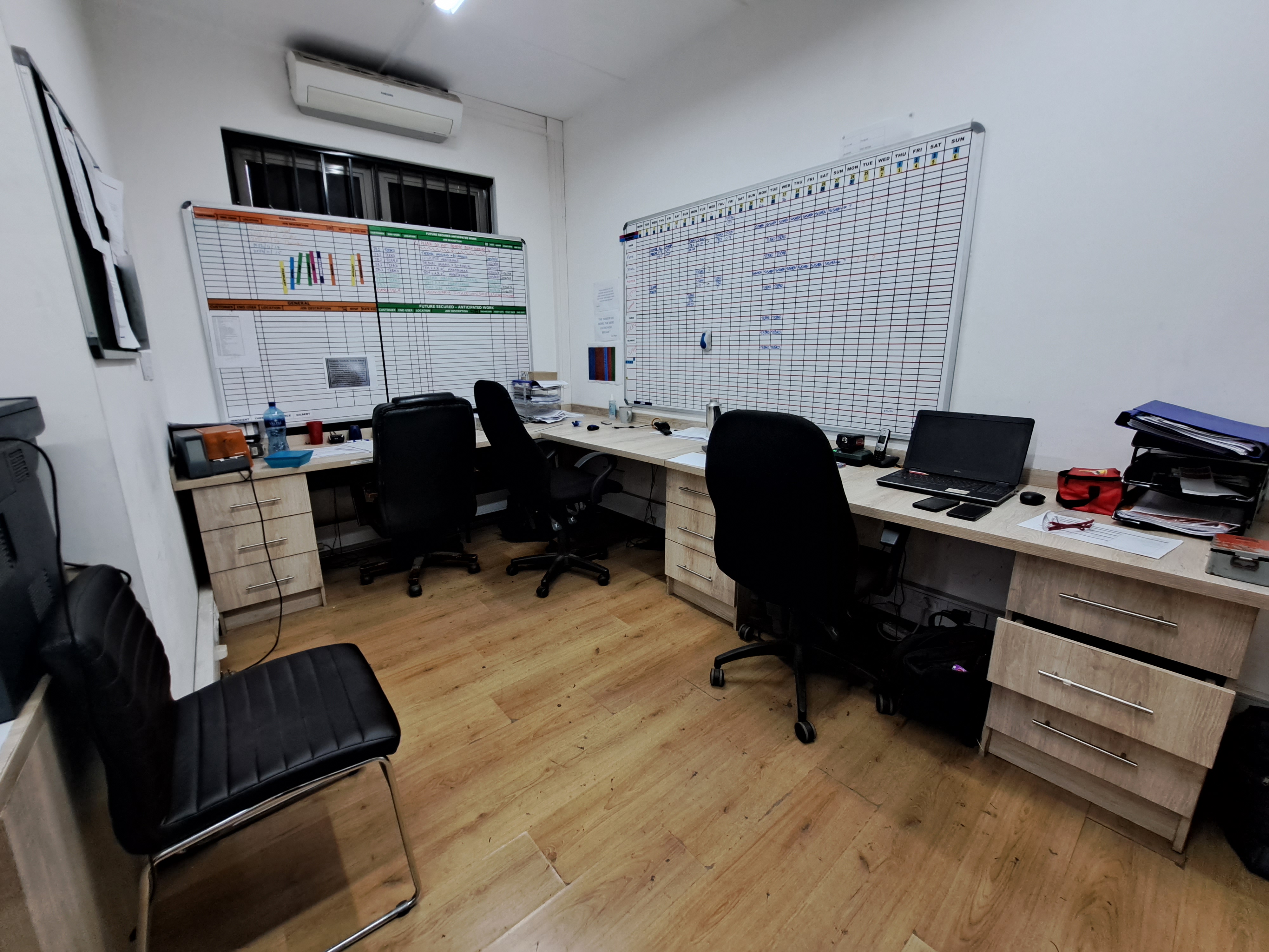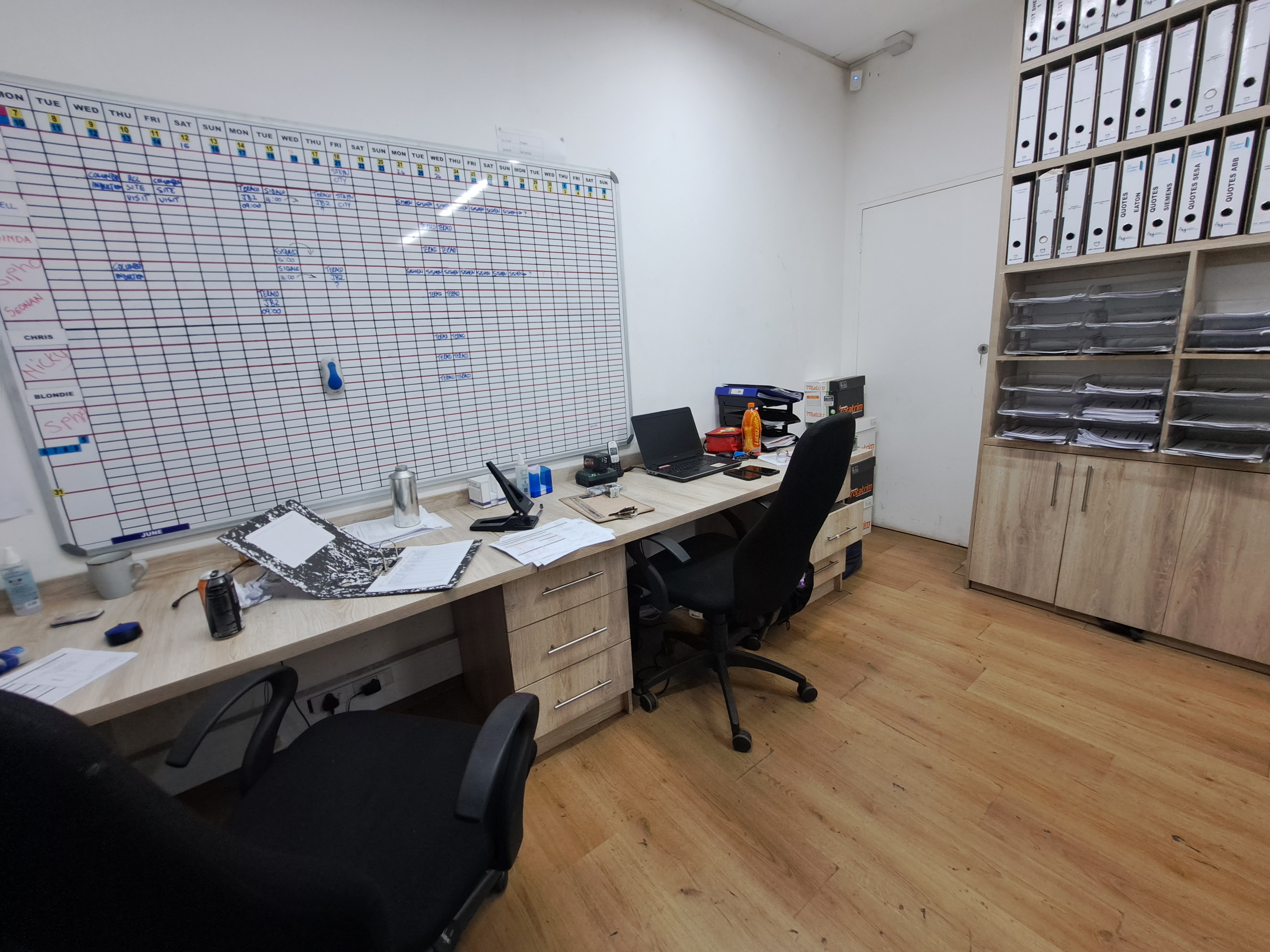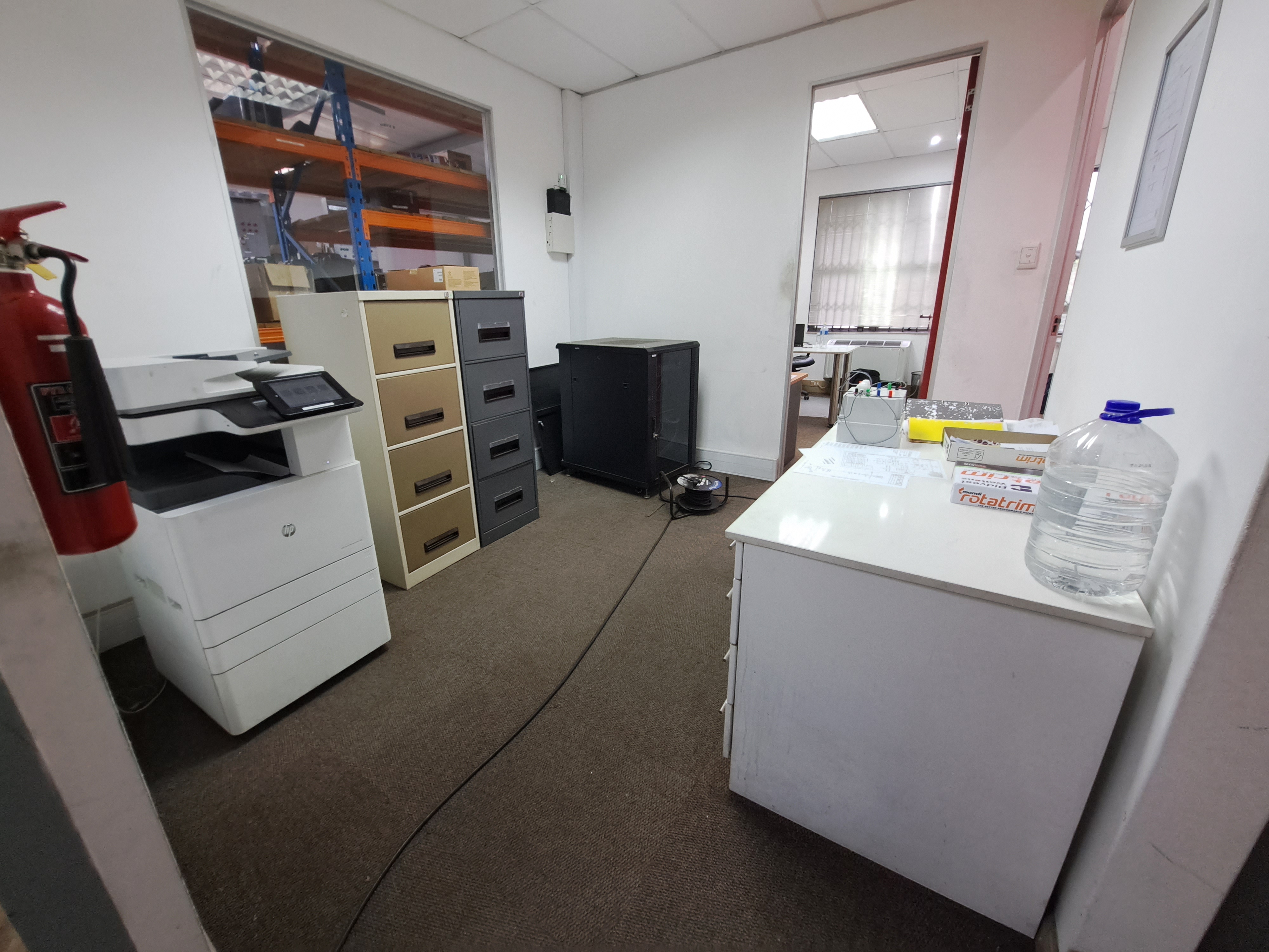 It is equipped with a reception area, workspace, 3 offices, and a boardroom, all equipped with aircon. Deliveries and dispatch are handled through a large roller shutter door and parking is available undercover in five bays.