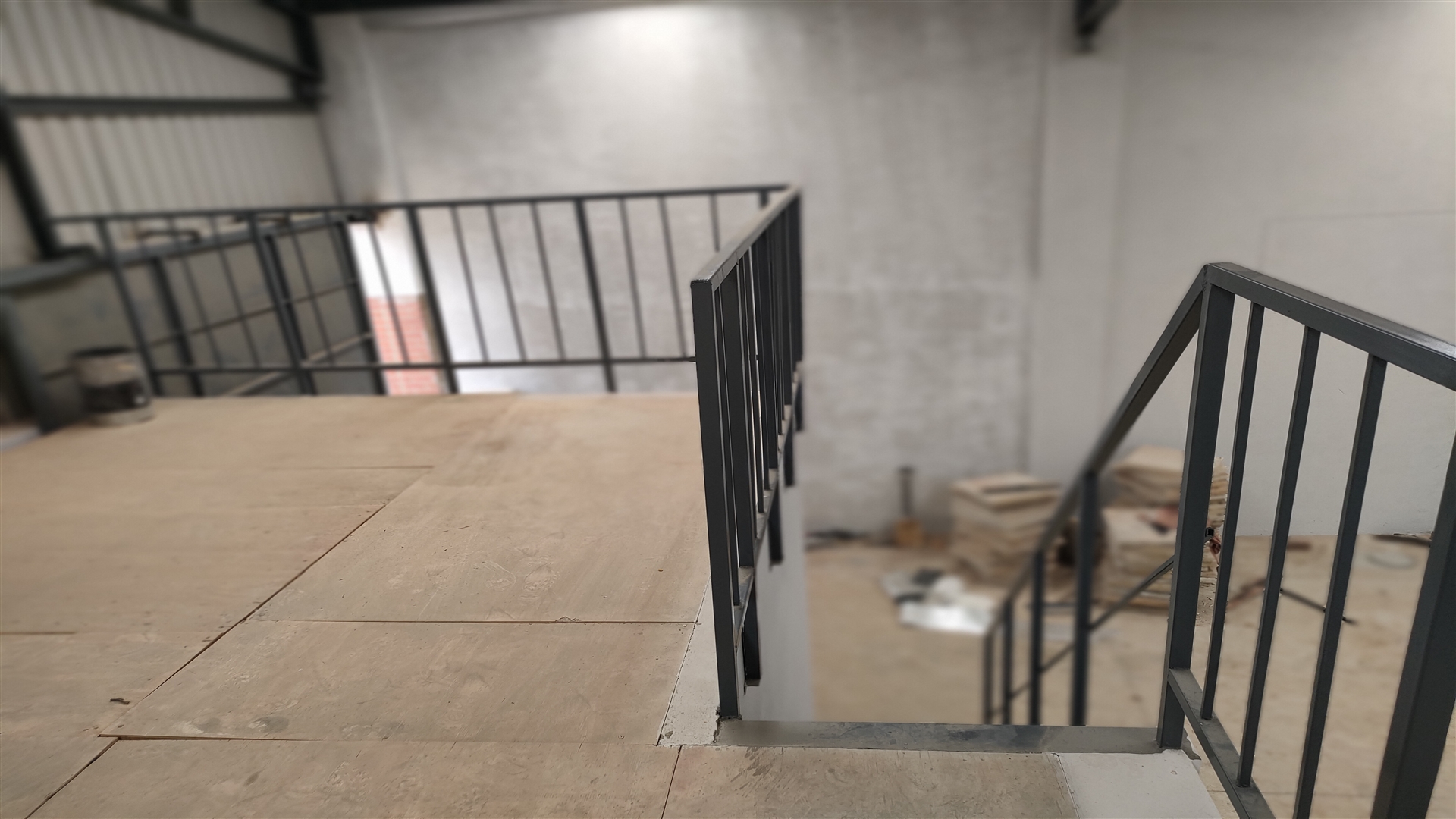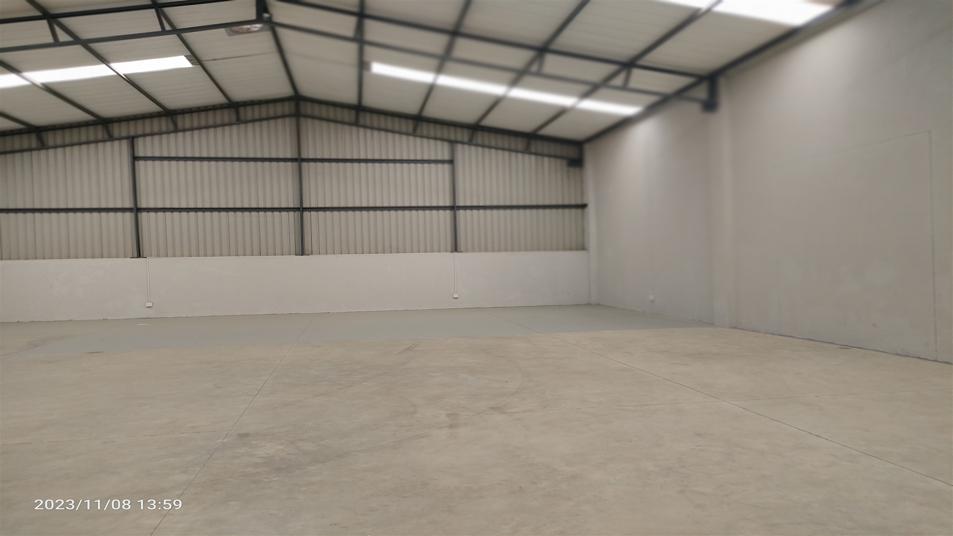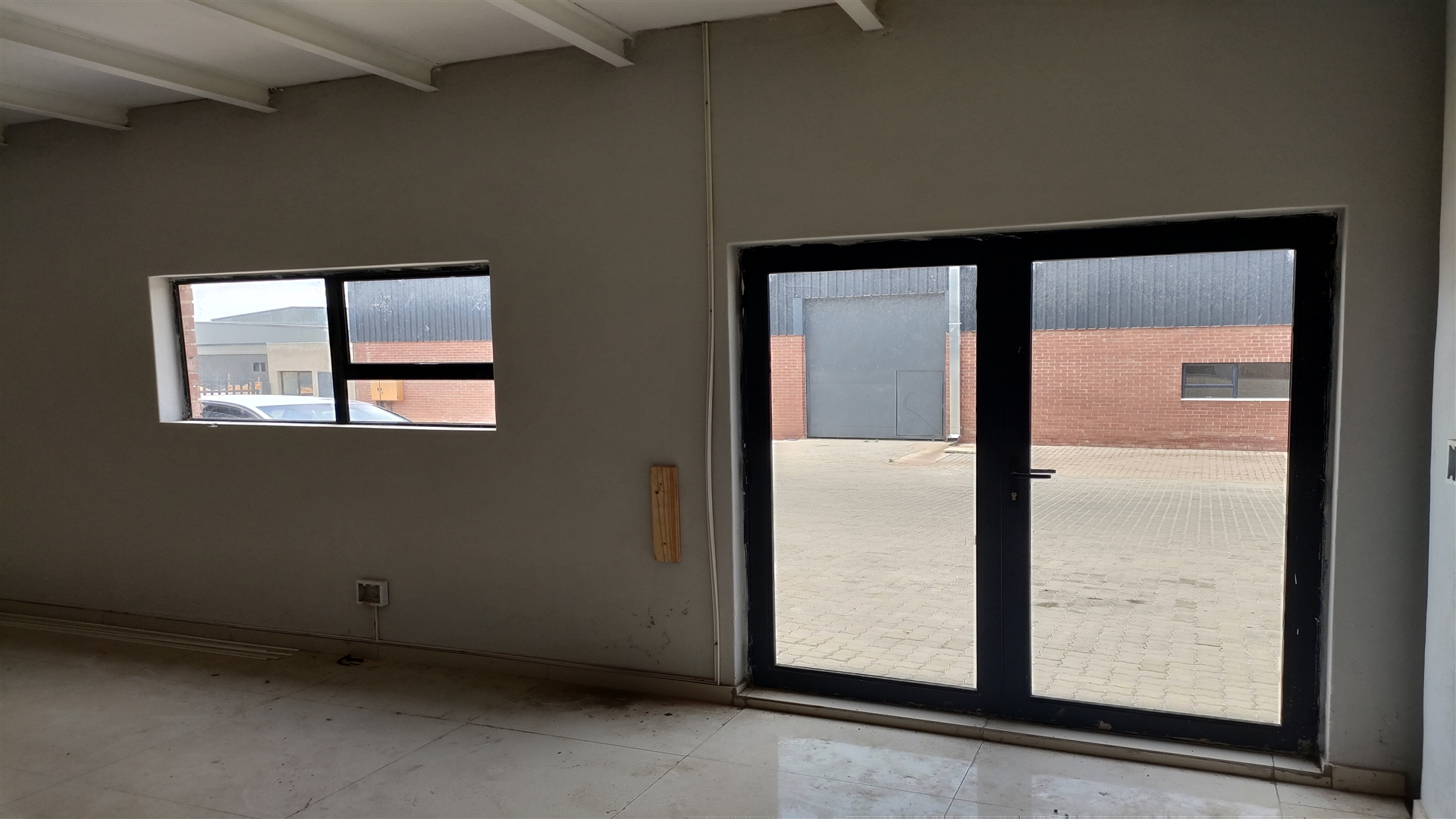 Epoxy floor and plastered and painted walls for the warehouse.