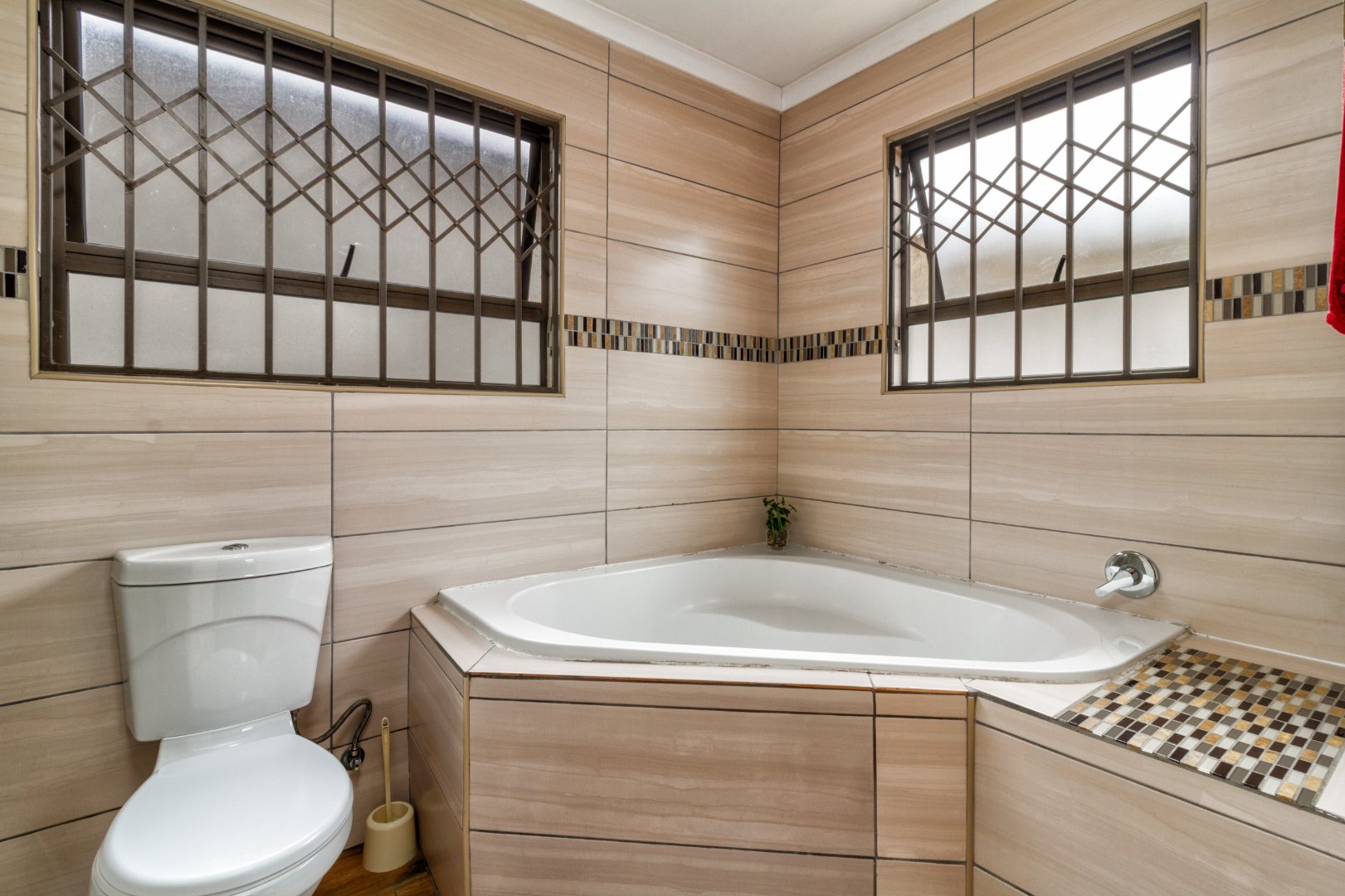 All 4 bedrooms have built in cupboards and the bathrooms are beautifully finished with sparkling mosaic accents. The super spacious main bedroom has a full en-suite bathroom with both a jacuzzi bath and shower.
