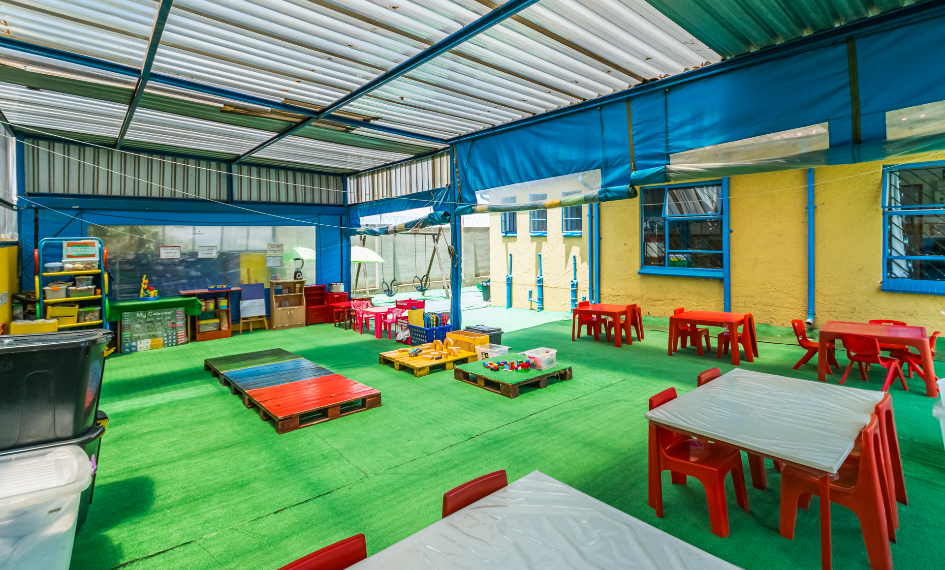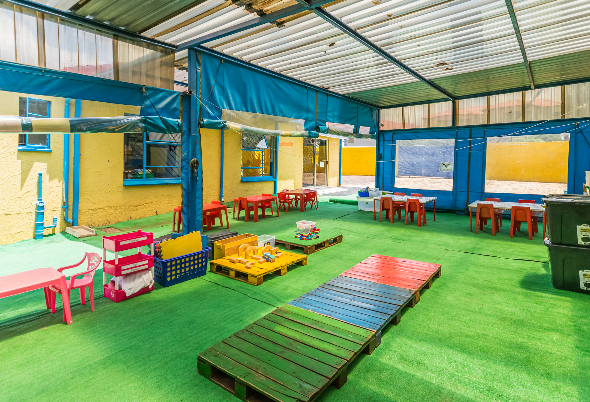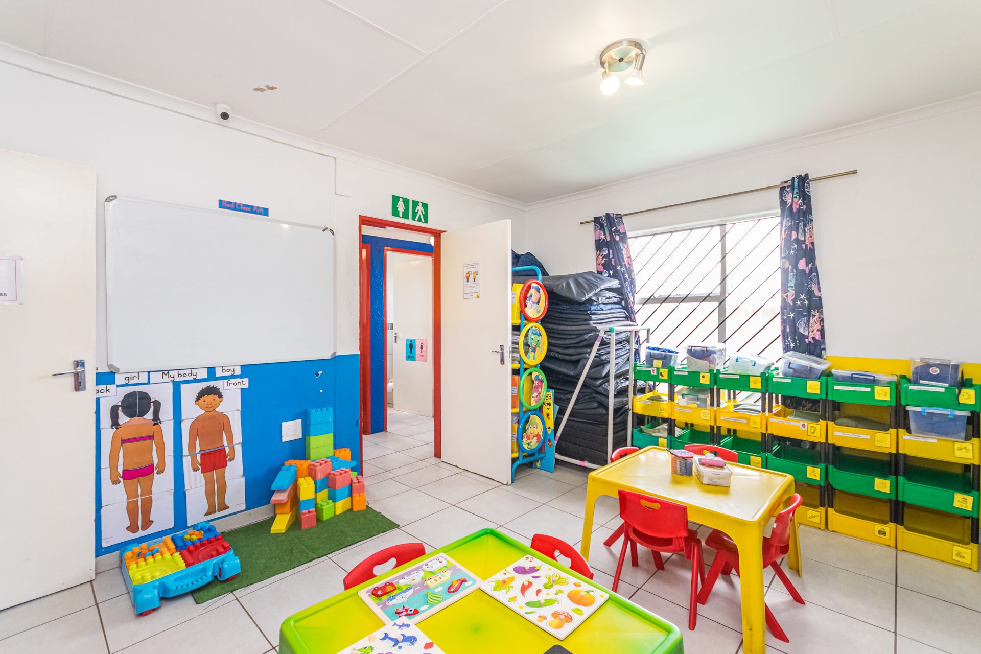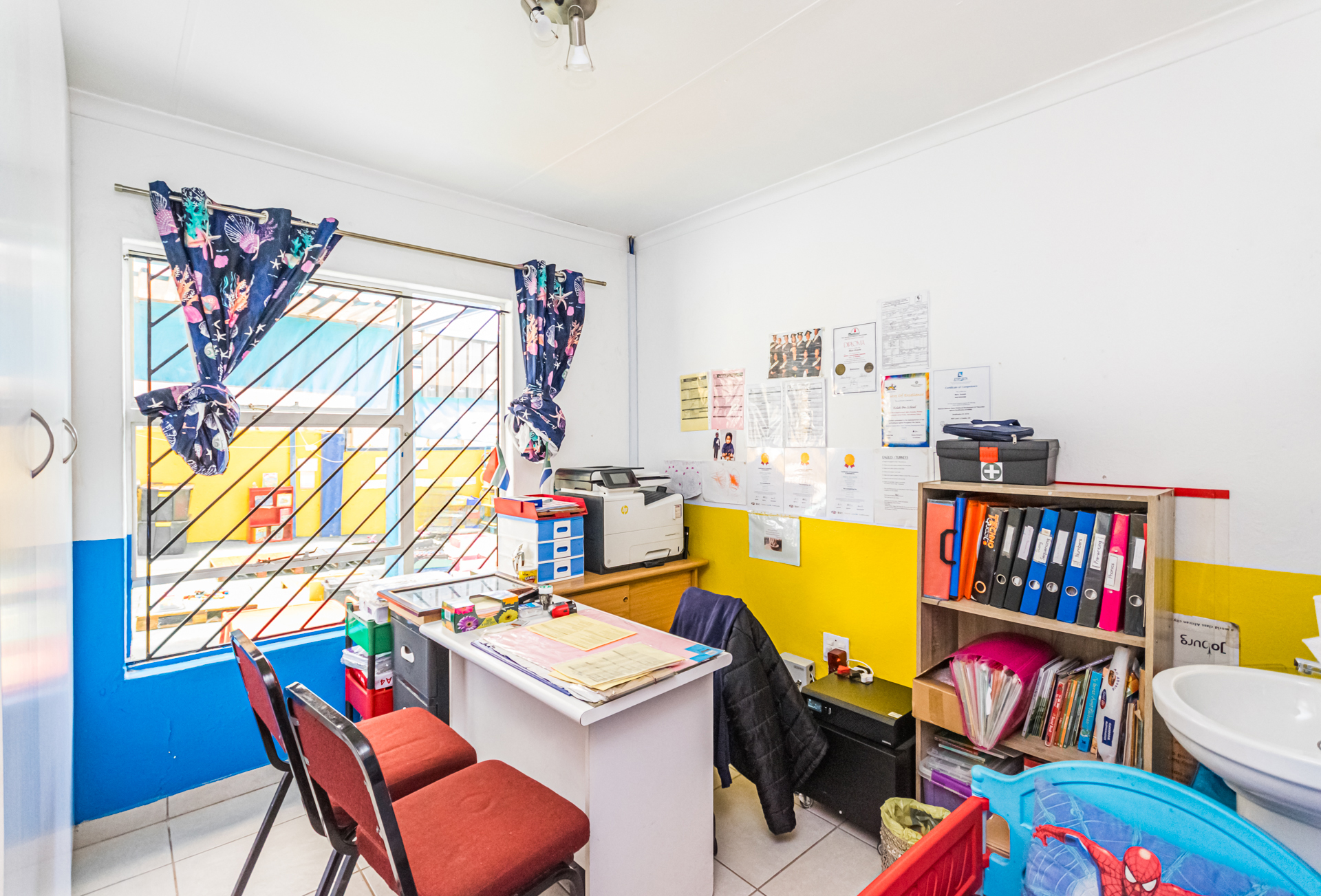 It presents opportunities for multiple streams of income, e.g. pre-school, Maths tutoring in the afternoons, kids’ party venue on weekends, etc. It is spacious, well-equipped and furnished indoors and outdoors with everything you need to start operating the businesses from day one. It boasts three classrooms; three child-sized toilets and basins; a full bathroom with a nappy-changing area; a kitchen with a double sink, built-in cupboards and a gas stove; an office with built-in cupboards, a Wendy house for storage, a jungle gym and a covered sandpit play area. The grounds are paved, and the play area is covered with artificial turf for the children’s comfort.
