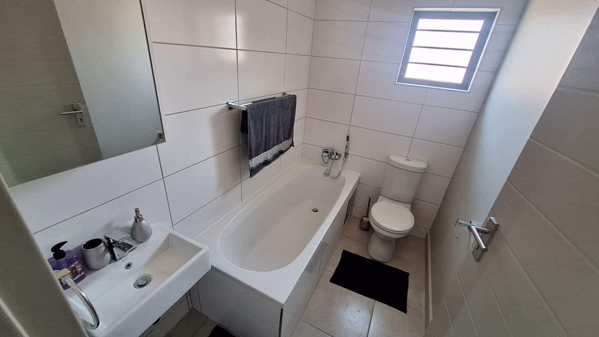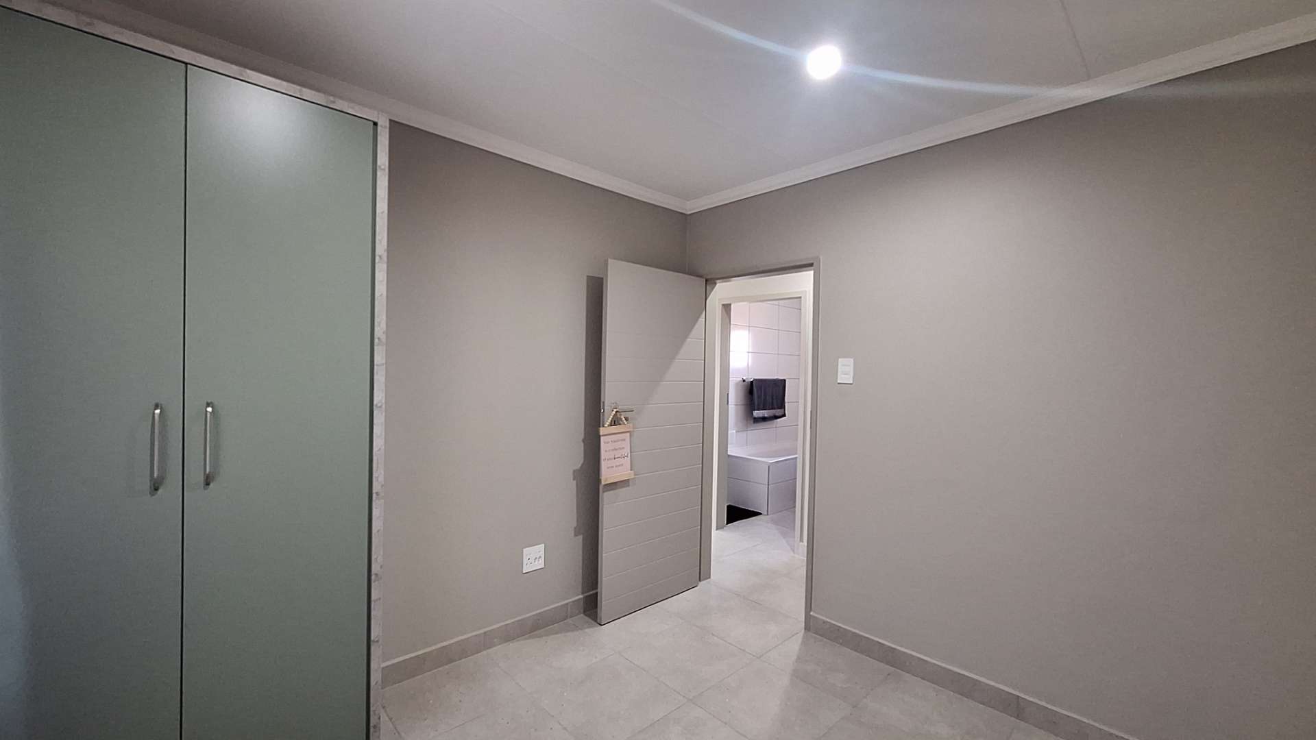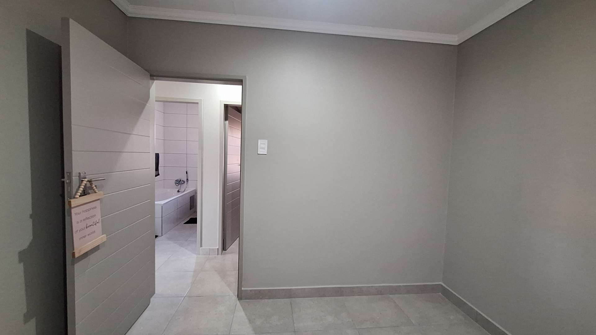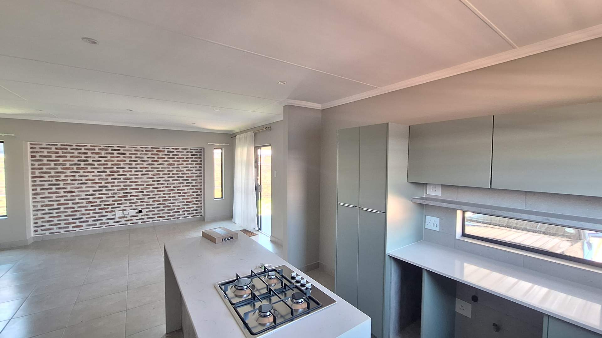 This newly built 3 bedroom, 2 bathroom cluster is located in Lion Pride Estate. The unit is fully tiled throughout and fitted with downlights, with neat, modern finishes. The open-plan living and kitchen area is well sized, with an exposed brick feature wall in the living room. Sliding doors lead from the living area onto the patio, fitted with an expandable trellis security gate.