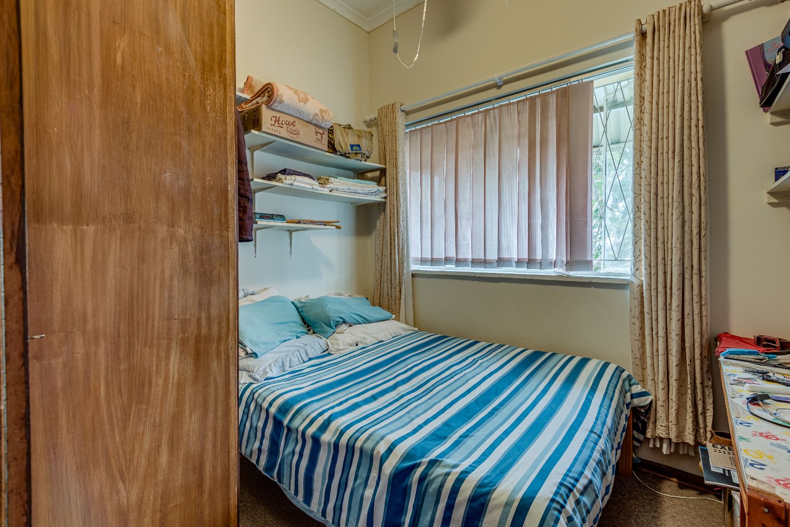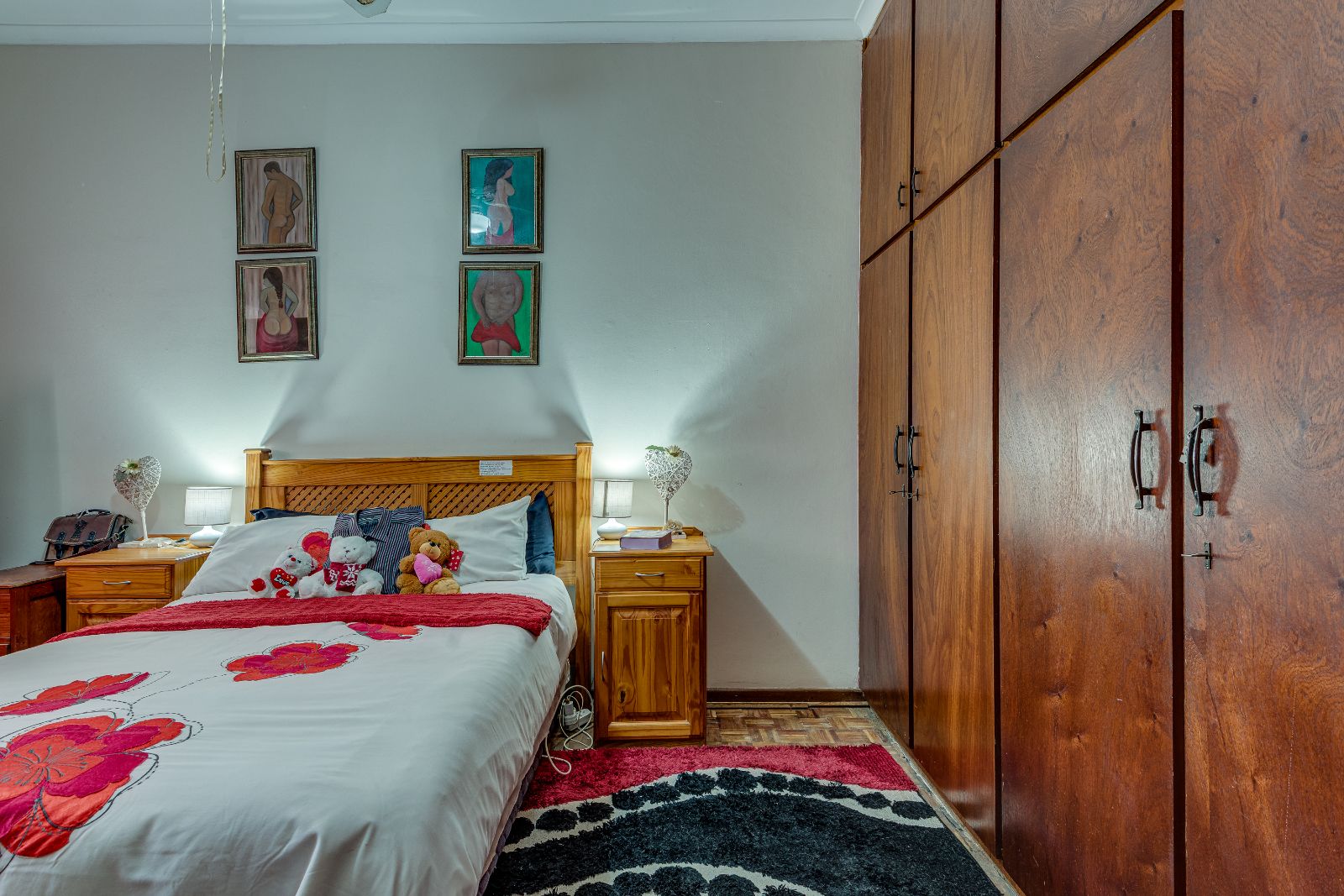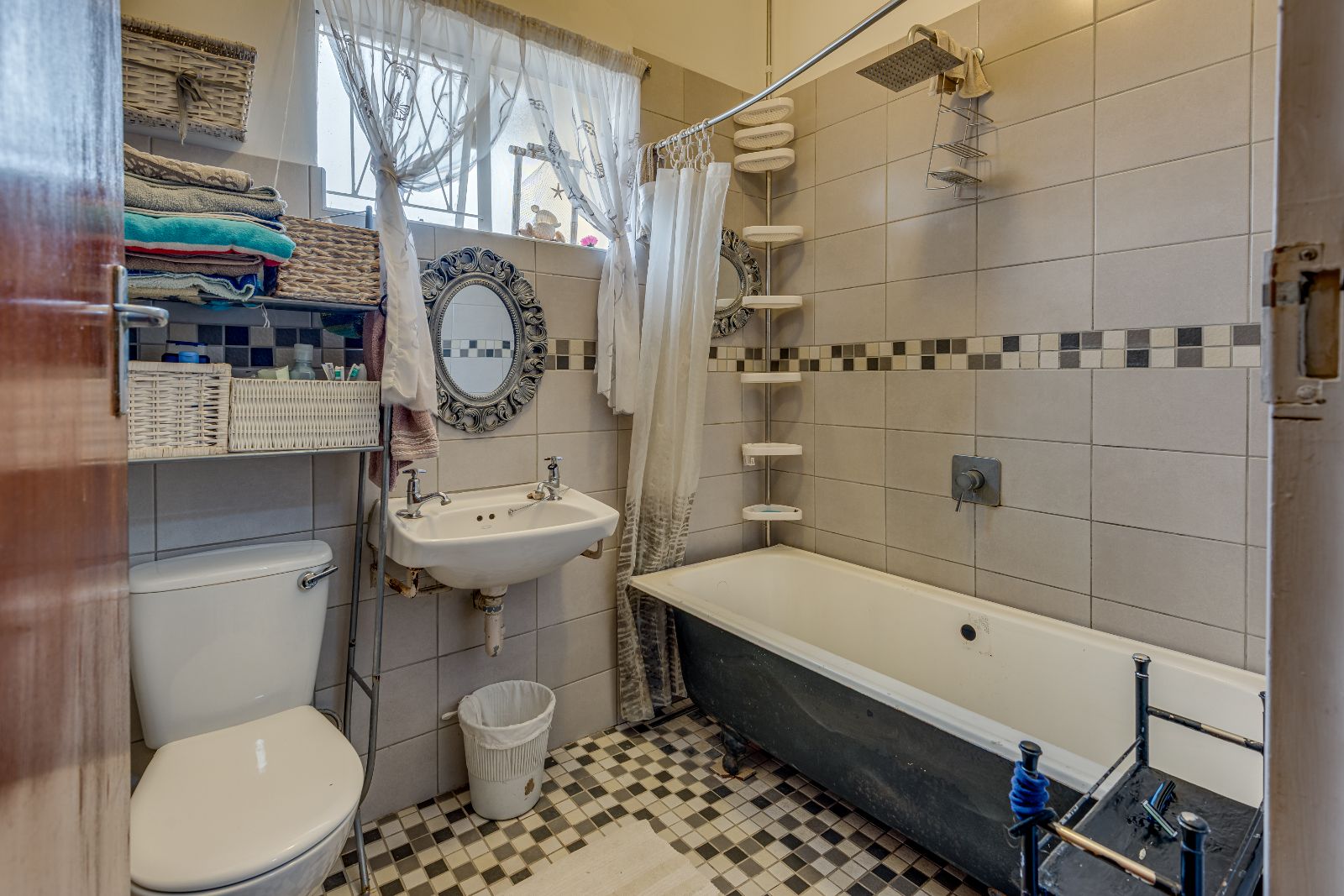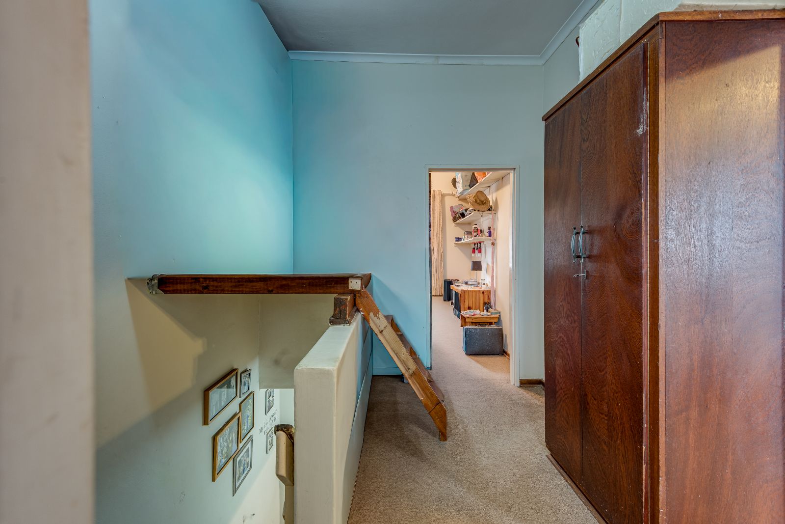 Upstairs you’ll find three bedrooms, all with built-in cupboards and ceiling fans, as well as a family bathroom fitted with a bath with shower over the bath.