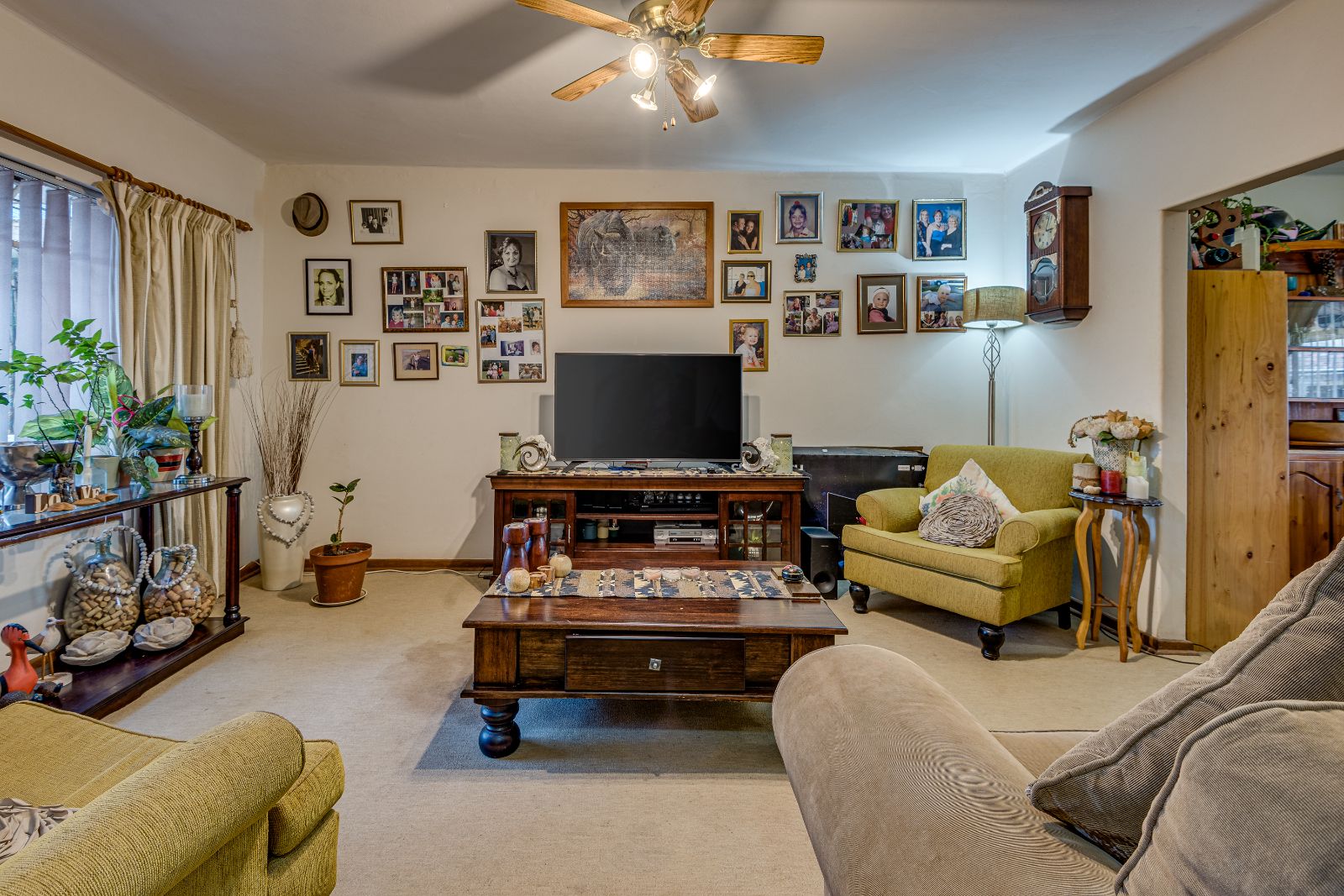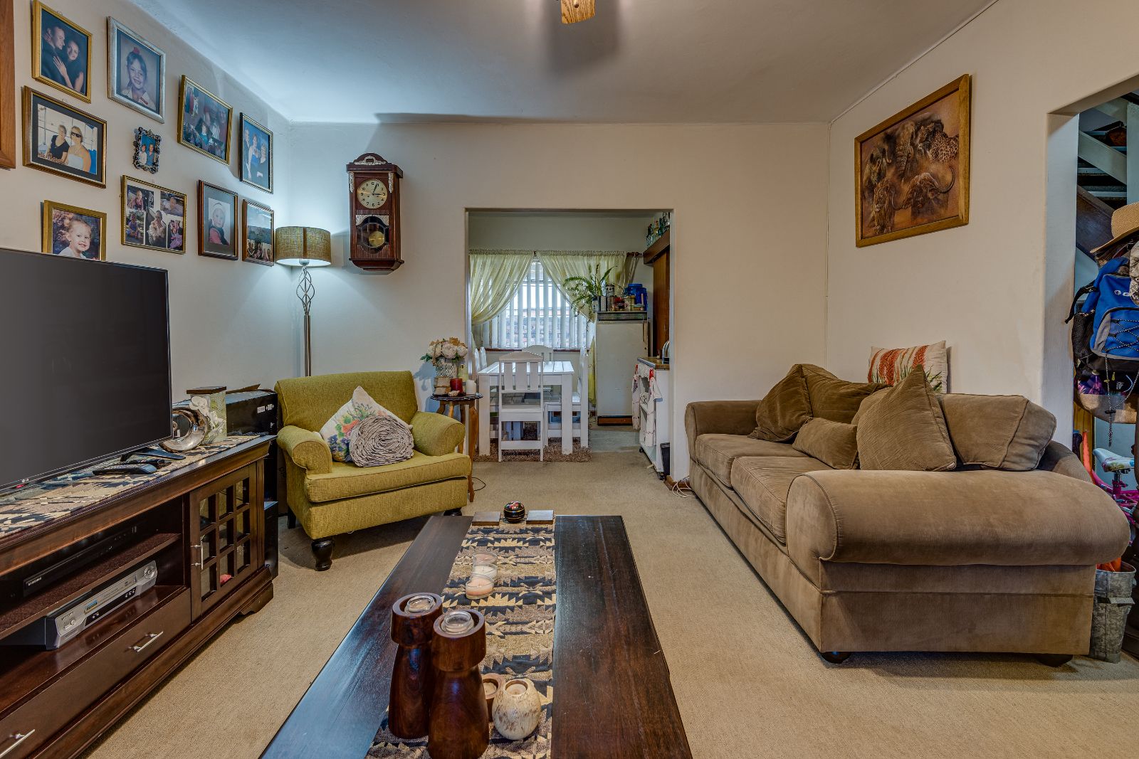 Downstairs features a guest toilet and a good-sized open-plan lounge fitted with a ceiling fan, flowing seamlessly into the dining area and kitchen. The layout creates a welcoming space for everyday living and easy entertaining.