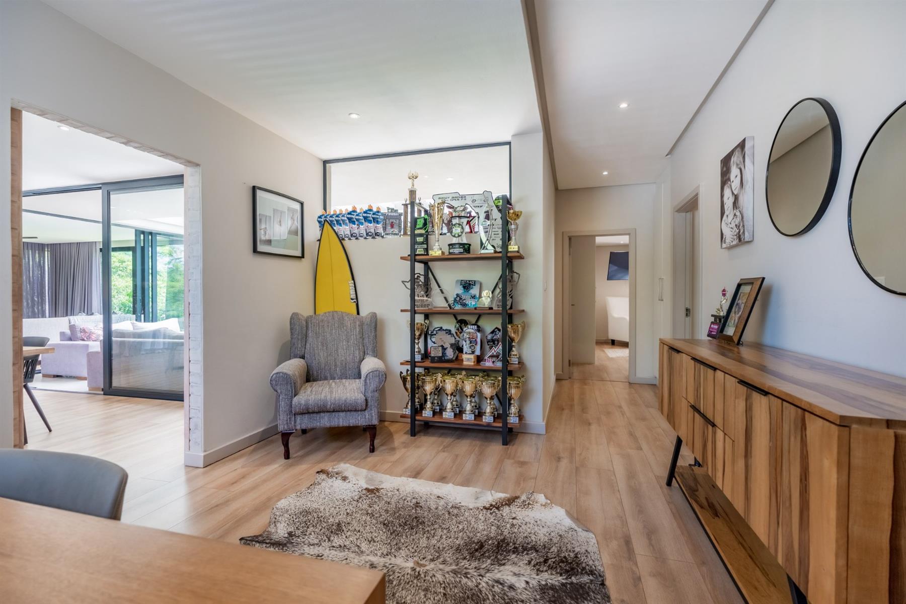 The home offers four generously sized bedrooms, three of which are en-suite, providing ideal privacy and comfort for family members or guests. Quality wood laminate flooring throughout enhances the inviting atmosphere, creating a seamless flow from room to room. The covered veranda is perfectly suited for entertaining, offering a relaxed outdoor space to enjoy year-round, whether hosting friends or spending time with family. A valuable bonus is the inverter system, ensuring peace of mind with reliable backup power when needed. This home effortlessly combines style, comfort, and practicality in one of Cotswold Downs Estate’s most desirable locations.