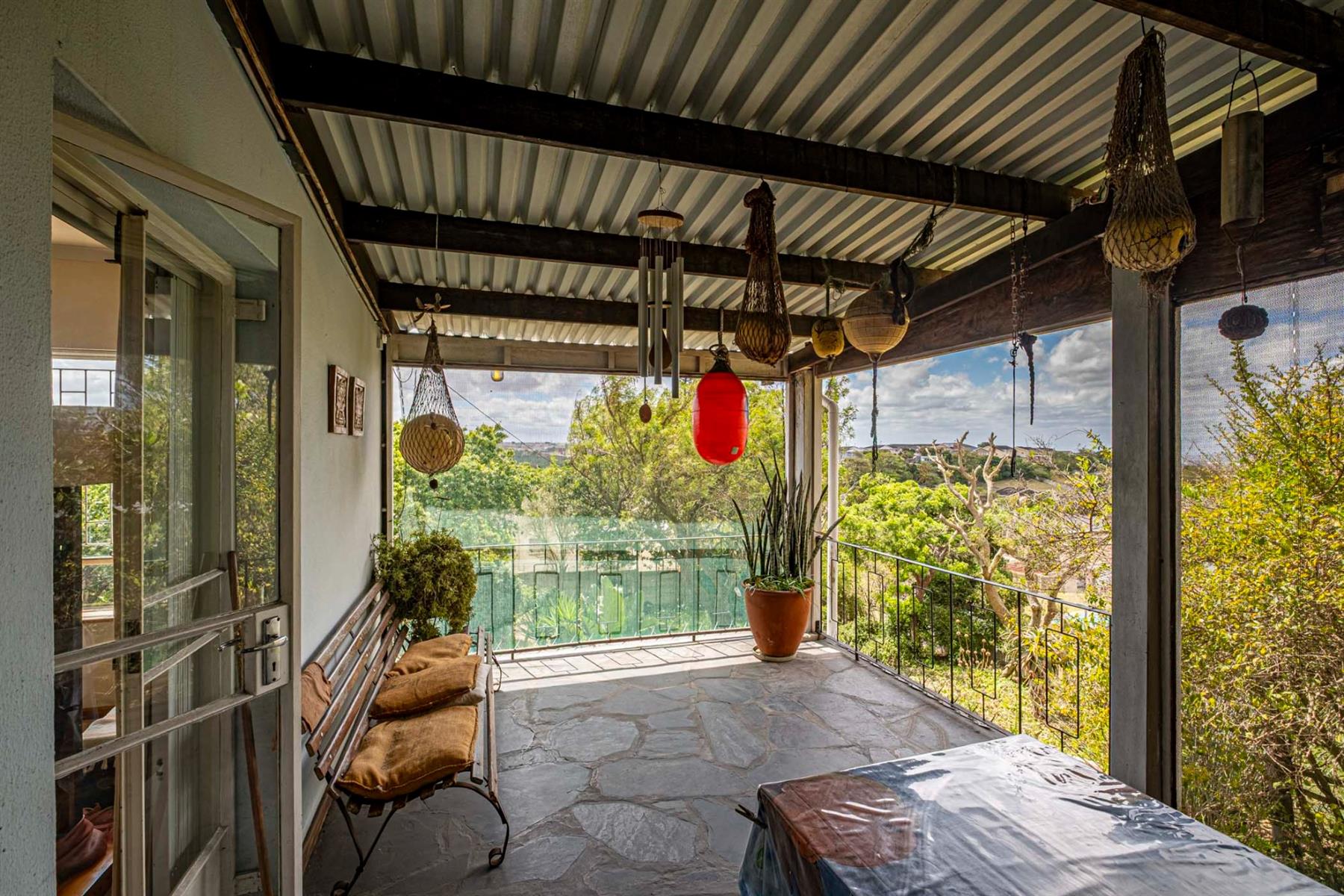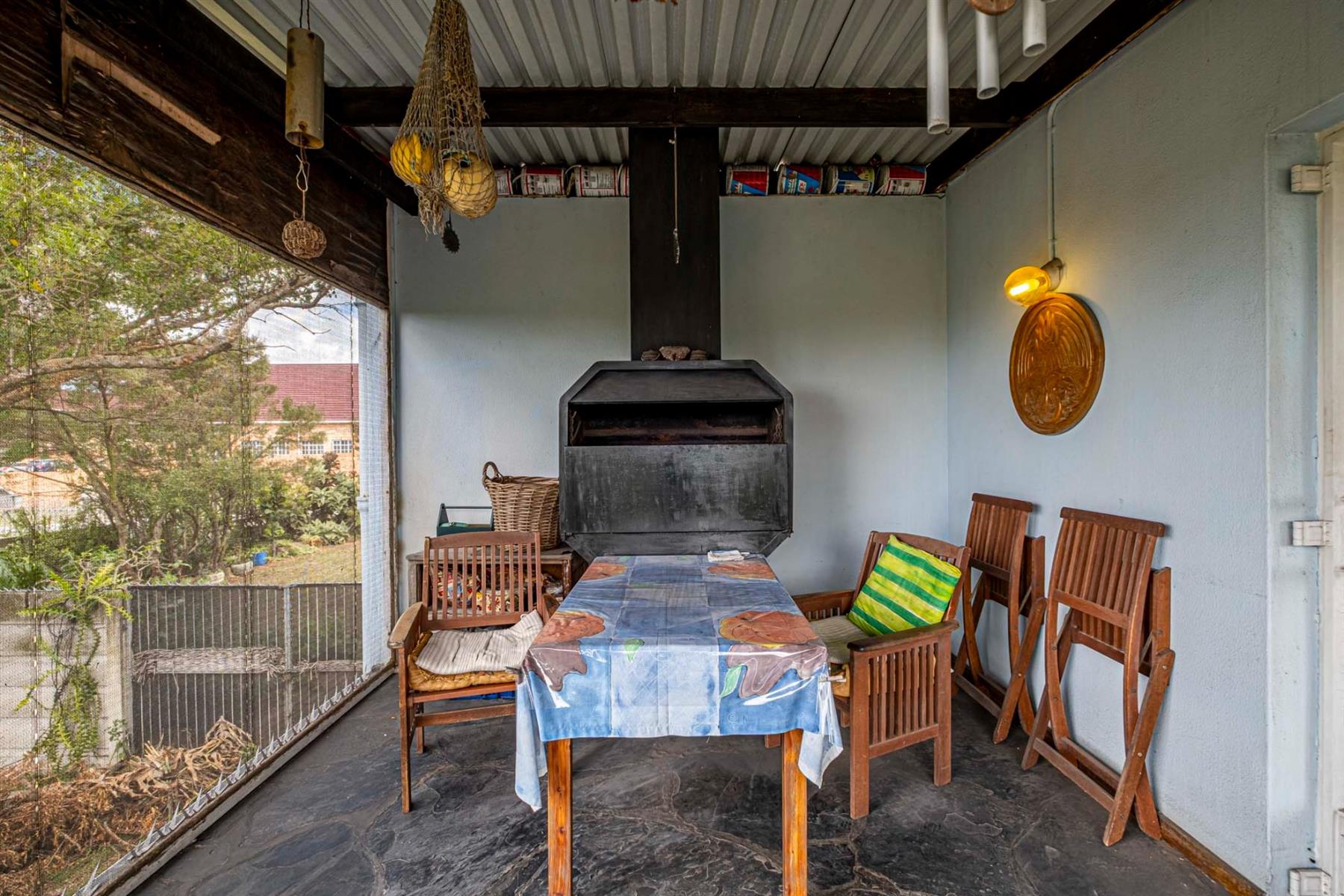 The sunny lounge is warm and welcoming, flowing seamlessly onto a covered stoep, built in braai, creating a perfect indoor-outdoor entertainment area where you can relax or enjoy time with guests.