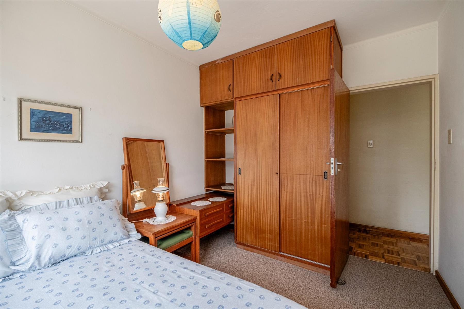 The parquet floors are well mantained in all the living areas, carpets in the bedrooms over the parquet floors.