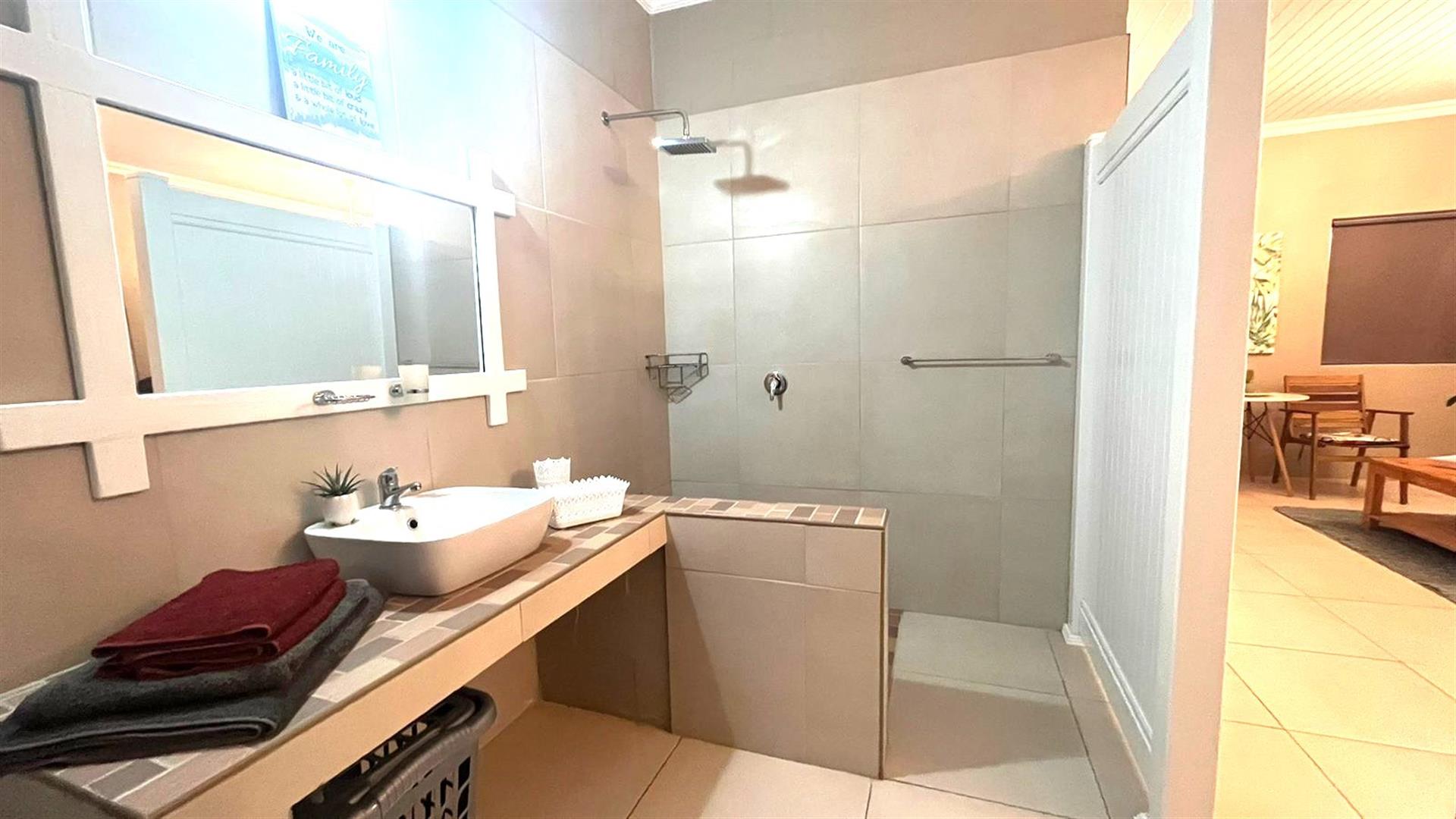 Very spacious flat with own entrance to unit. Very private from main house. Open plan living area with kitchen and bedroom. Large bathroom with walk in shower. Yard totally enwalled and safe for a pet.