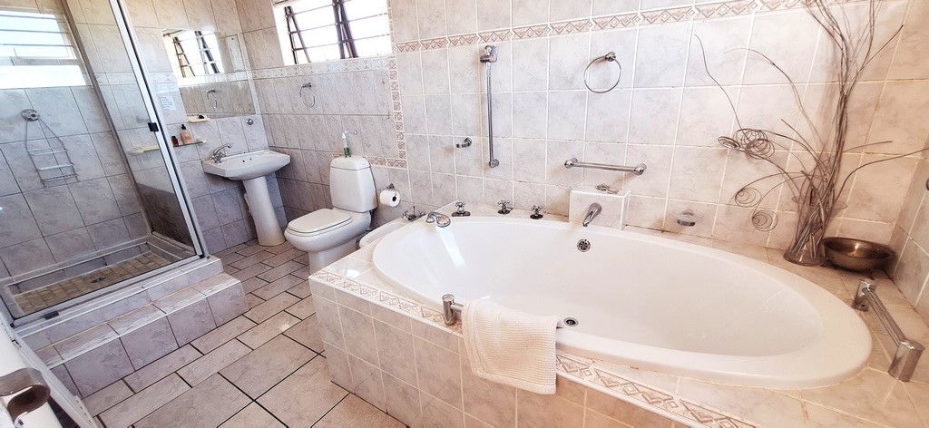 Boasting 8 beautifully appointed bedrooms and 8 bathrooms, including 4 luxurious en-suite guest rooms, the guesthouse is designed to accommodate both privacy and relaxation. Two en-suite rooms are located upstairs and two downstairs, each offering breath taking views from a private terrace, flat-screen TVs, Wi-Fi, microwaves, and bar fridges—perfect for self-catering stays.