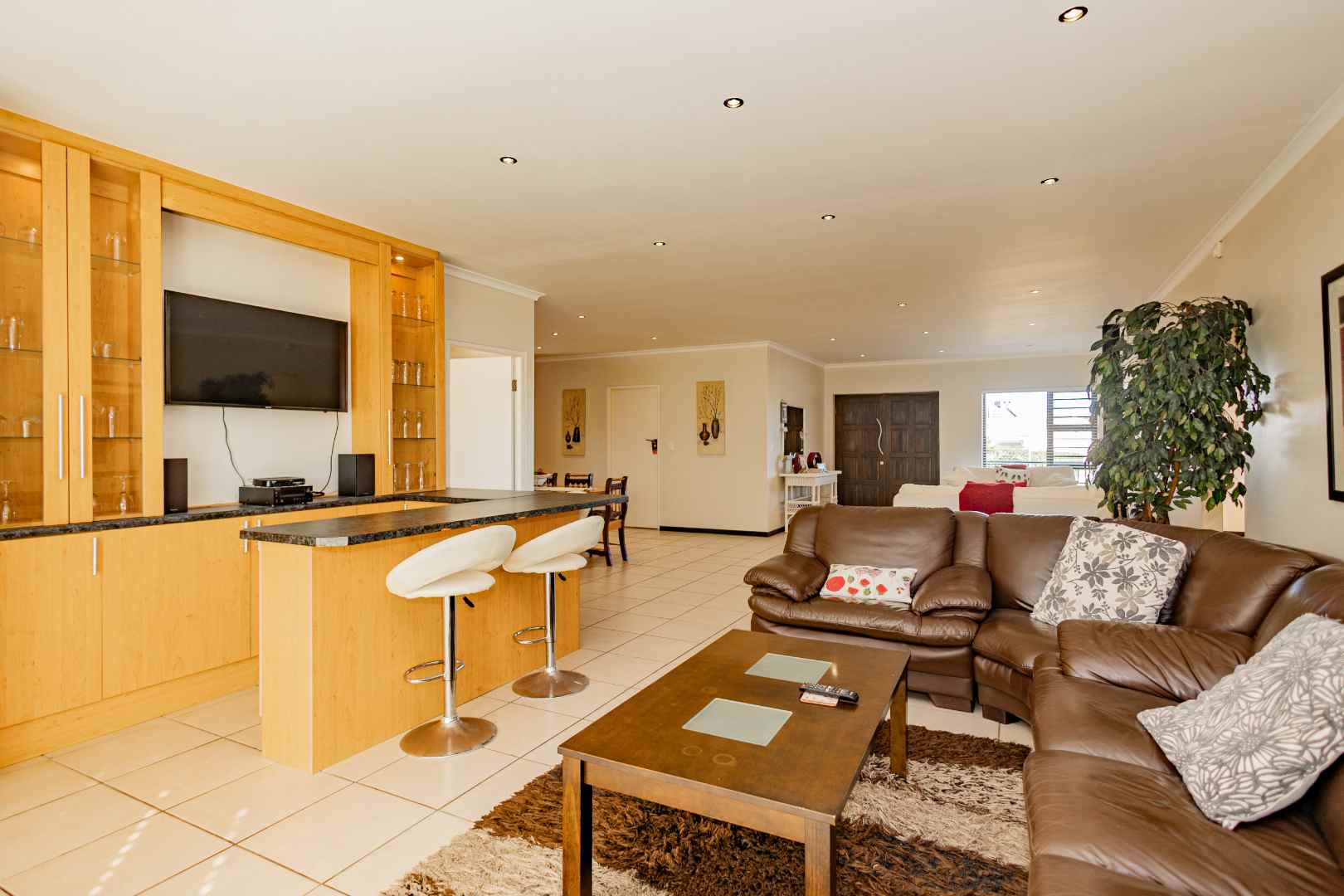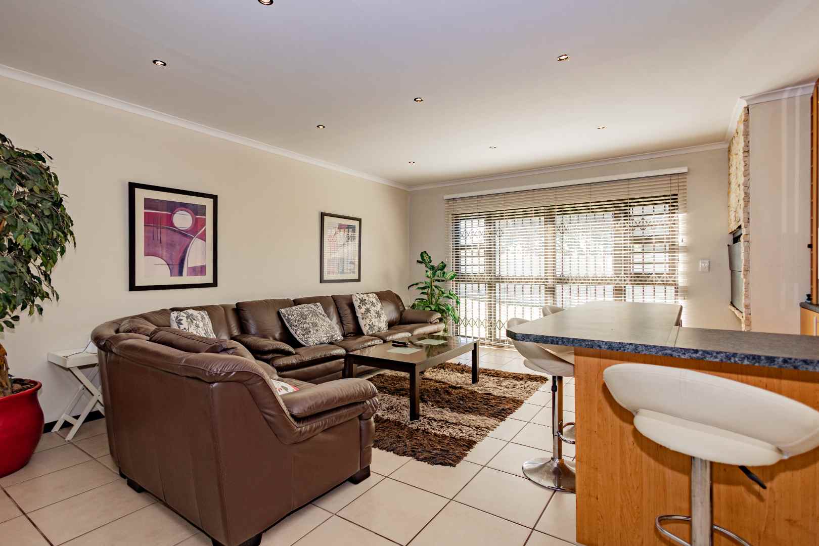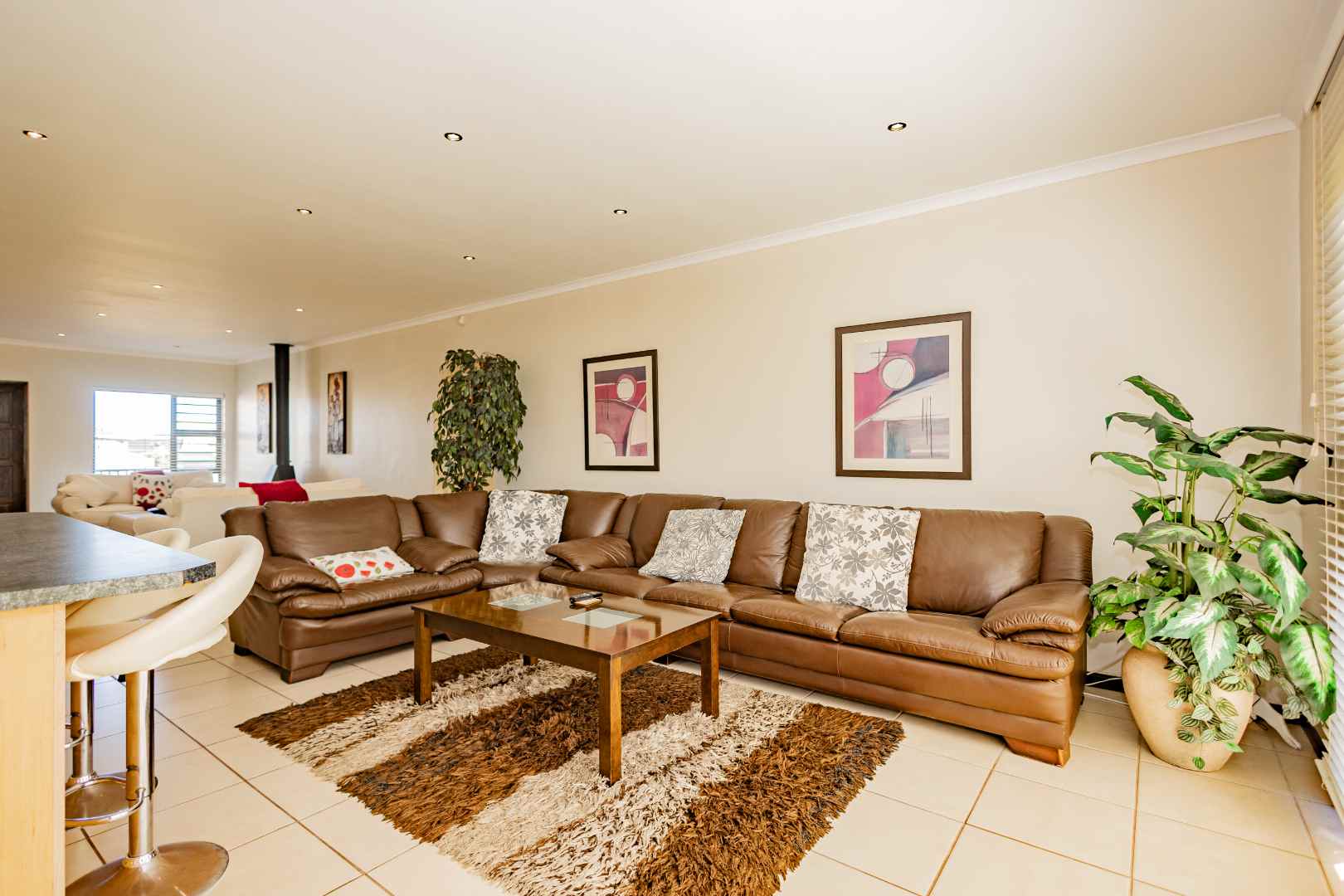 This is a comfortable family home that offers the best of both family life and coastal life. Designed for easy living it features four comfortable bedrooms, a large living area with a built-in braai, a dining room, an office space and an open plan kitchen with a scullery. All four bedrooms have built-in cupboards. The main bedroom has an en-suit bathroom, and the family bathroom has a bath and shower.