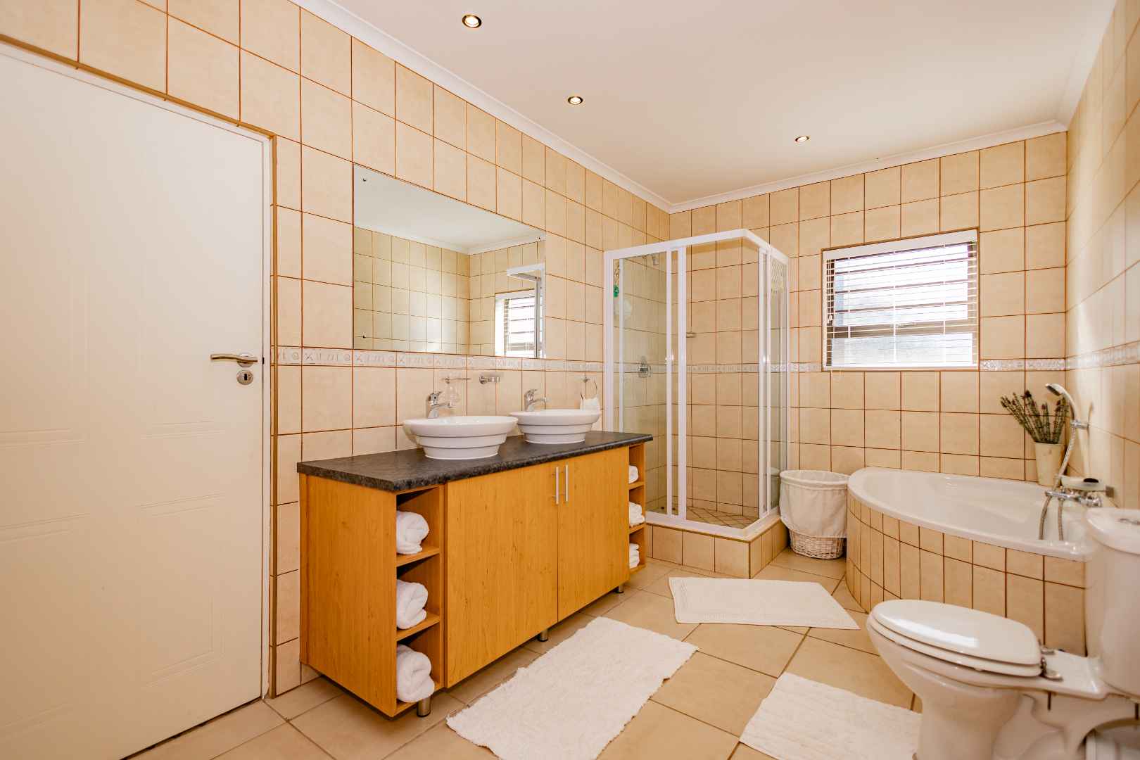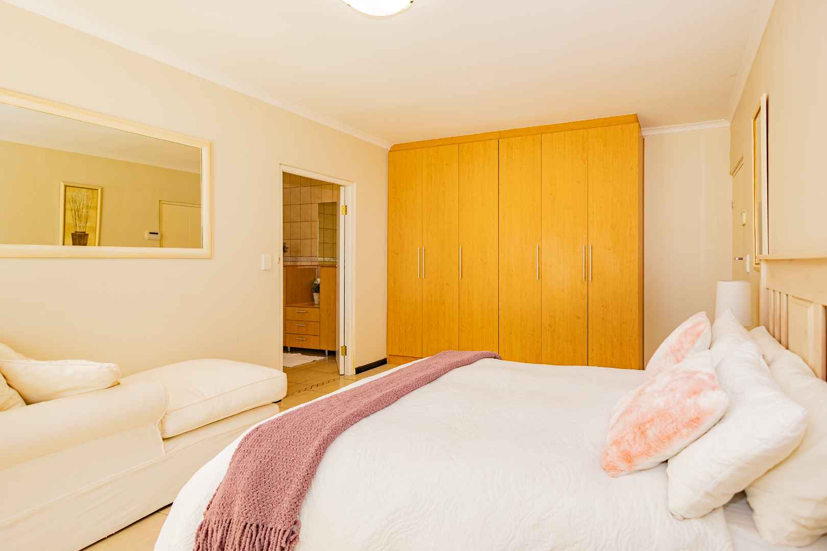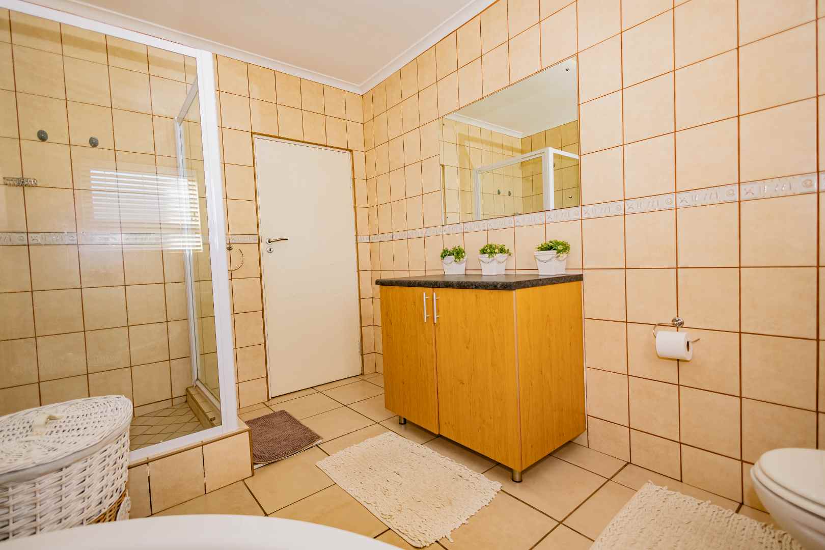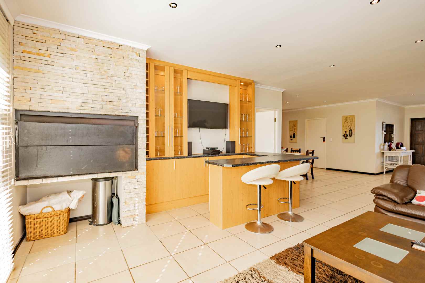 This is a comfortable family home that offers the best of both family life and coastal life. Designed for easy living it features four comfortable bedrooms, a large living area with a built-in braai, a dining room, an office space and an open plan kitchen with a scullery. All four bedrooms have built-in cupboards. The main bedroom has an en-suit bathroom, and the family bathroom has a bath and shower.