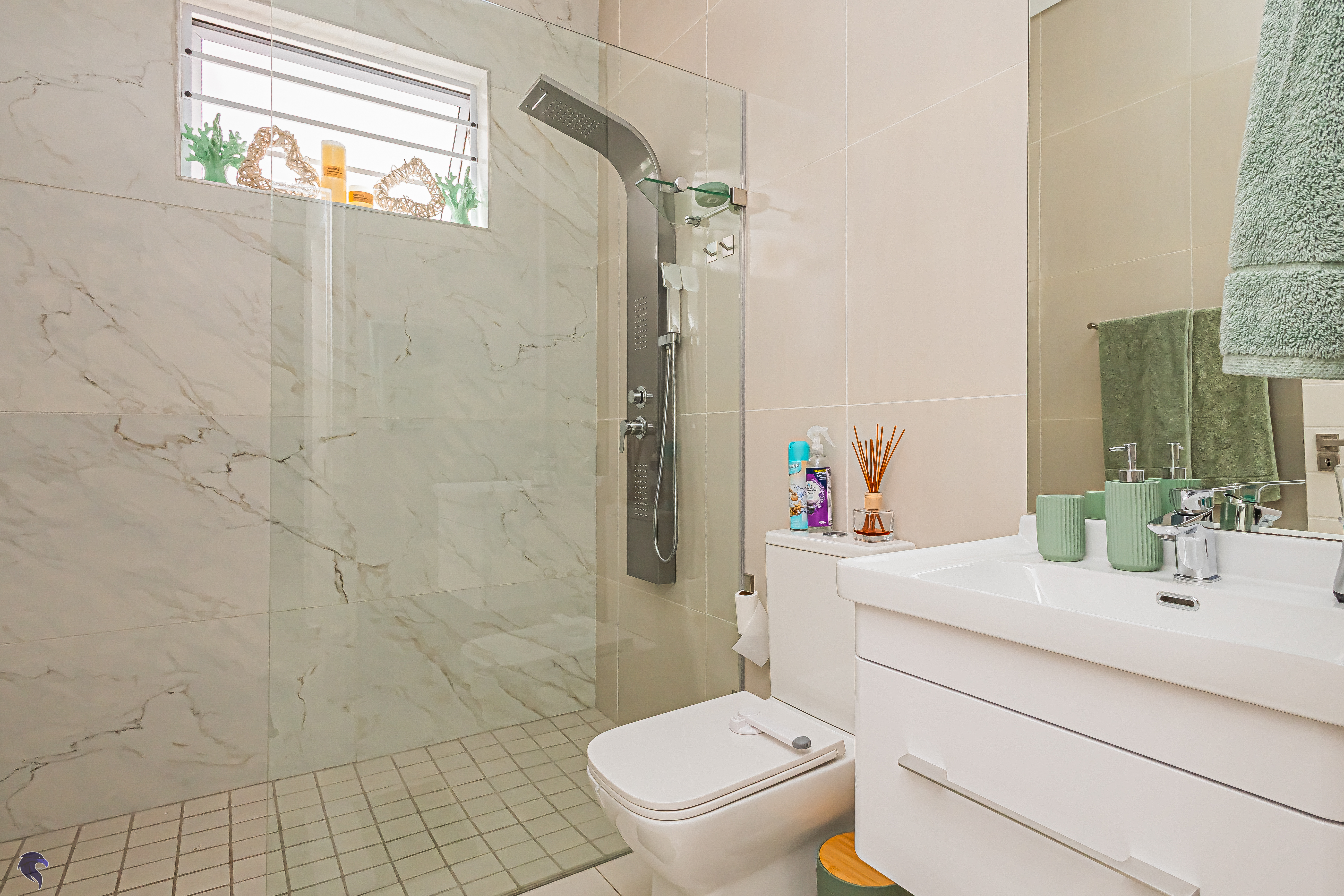 3 bedrooms, each with their own bathrooms (two en-suite)