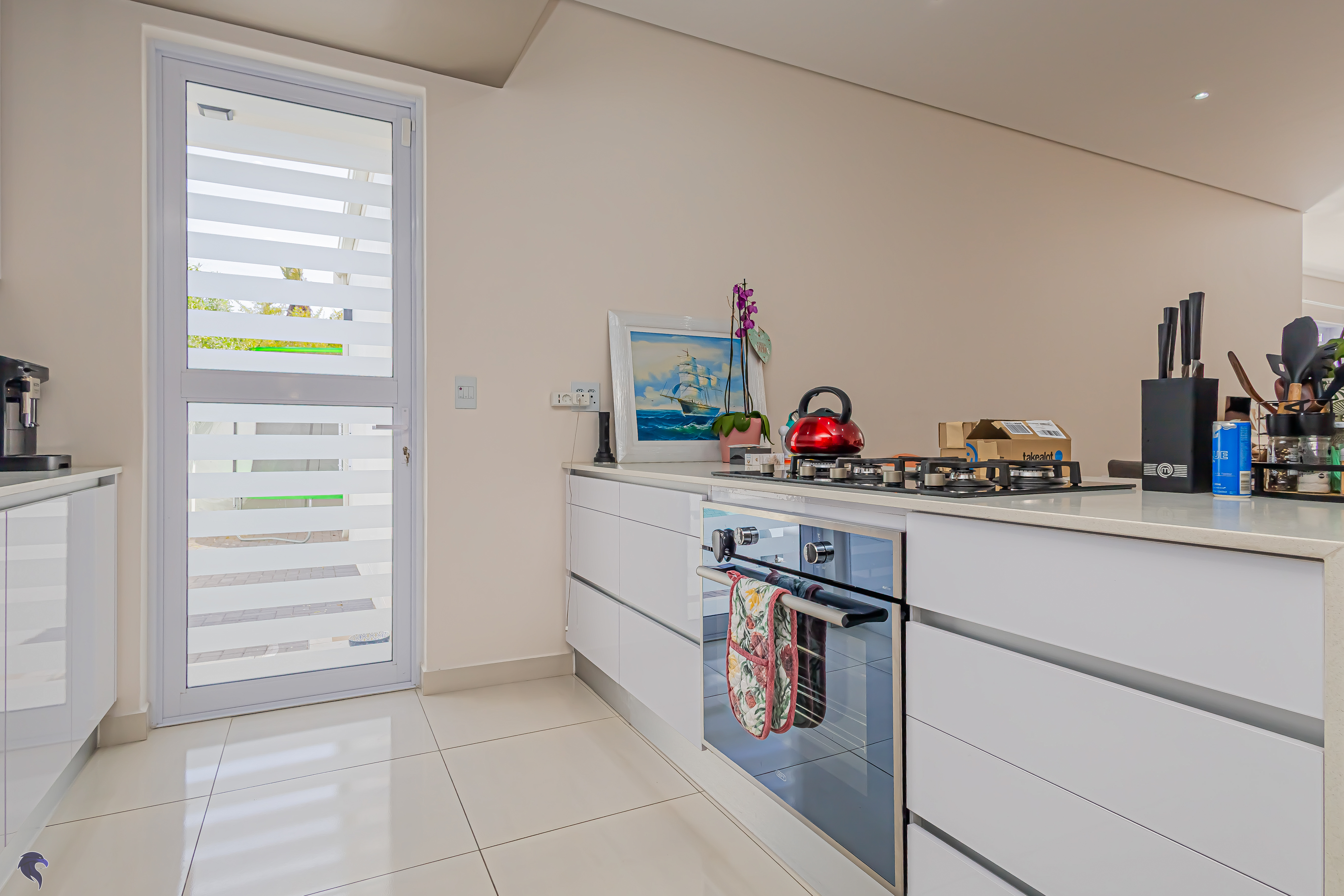 Open-plan kitchen and living area with gas oven