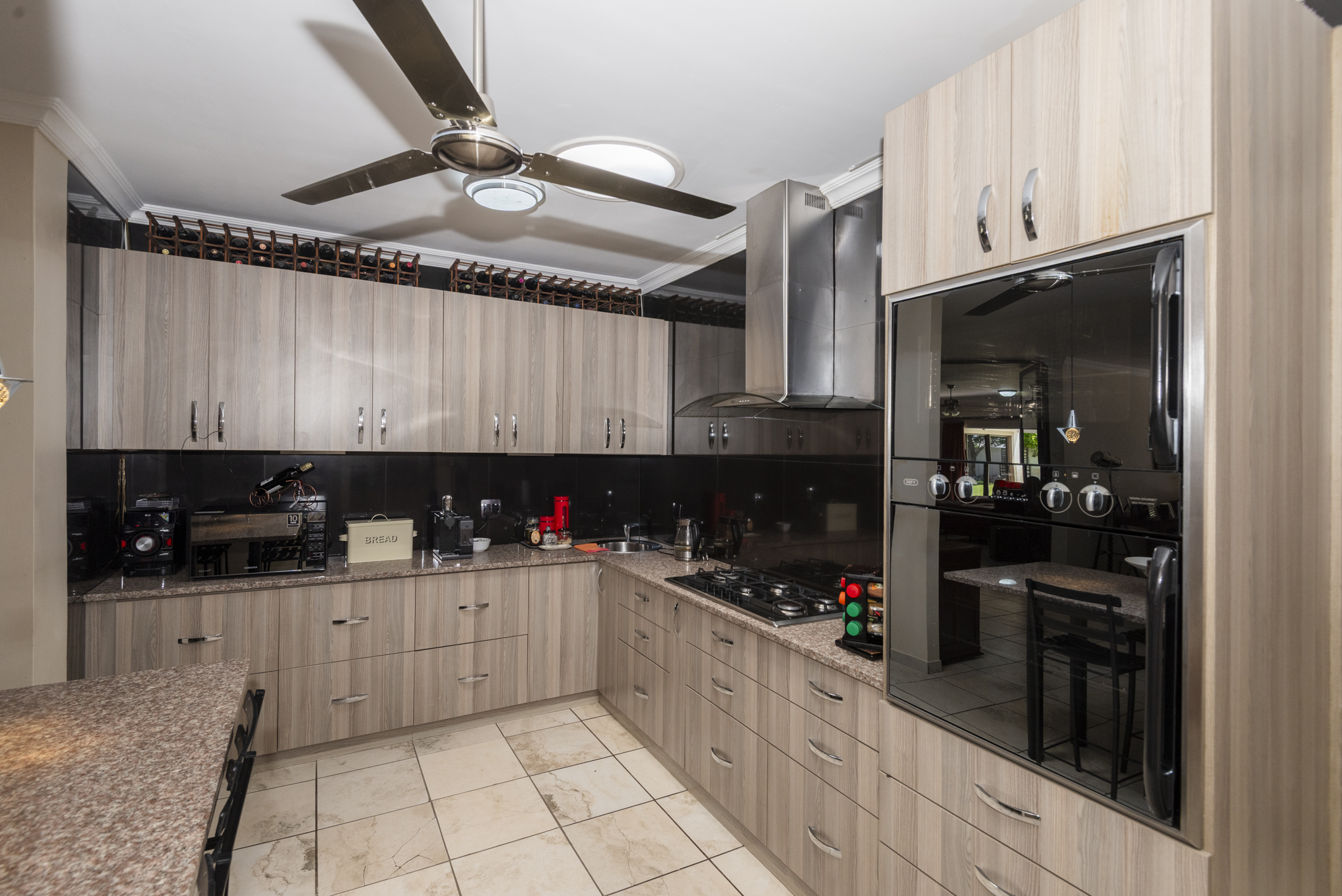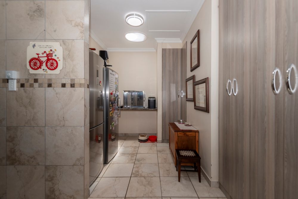 - The welcoming entrance hall leads you into bright, connected living spaces. The main lounge flows seamlessly to a modern, well-planned kitchen featuring timeless granite countertops, a gas hob, and skylights for natural light. The adjacent scullery and laundry keep the workspace neat, while an extra-large pantry provides abundant storage.