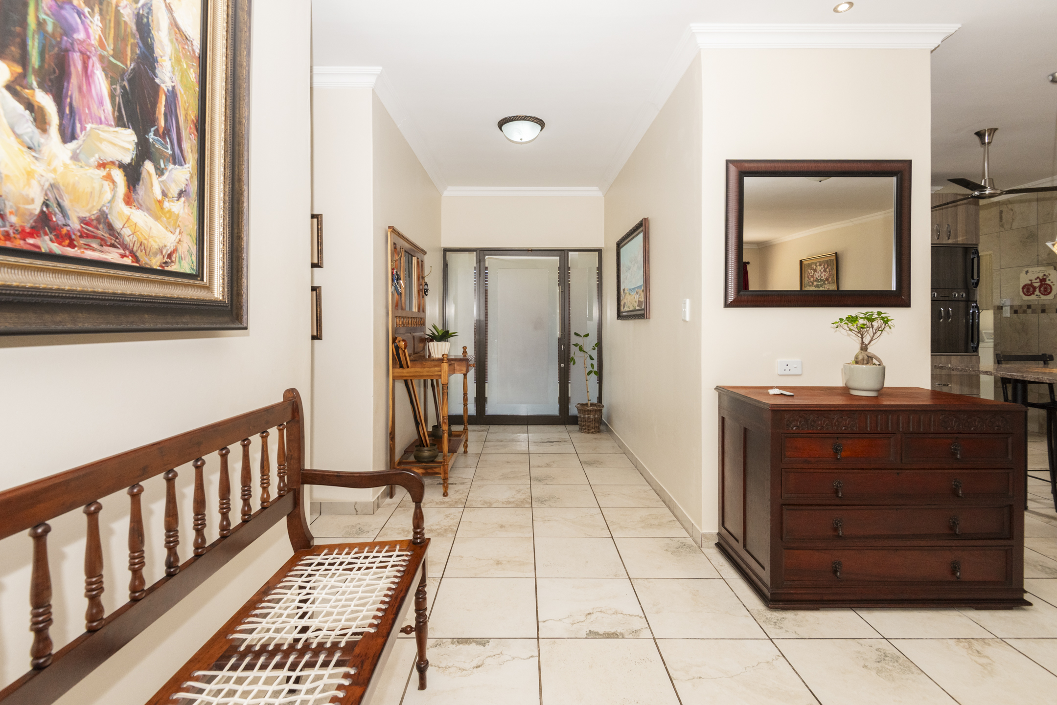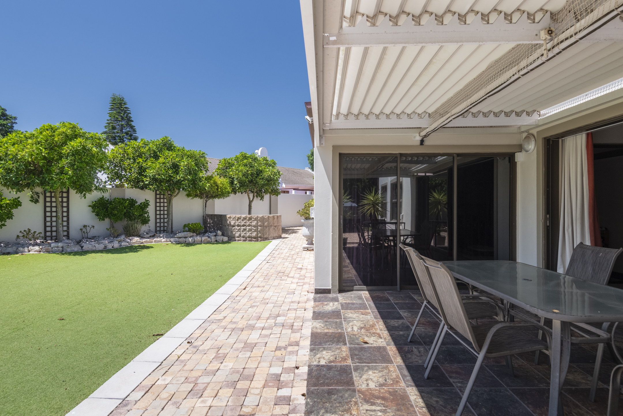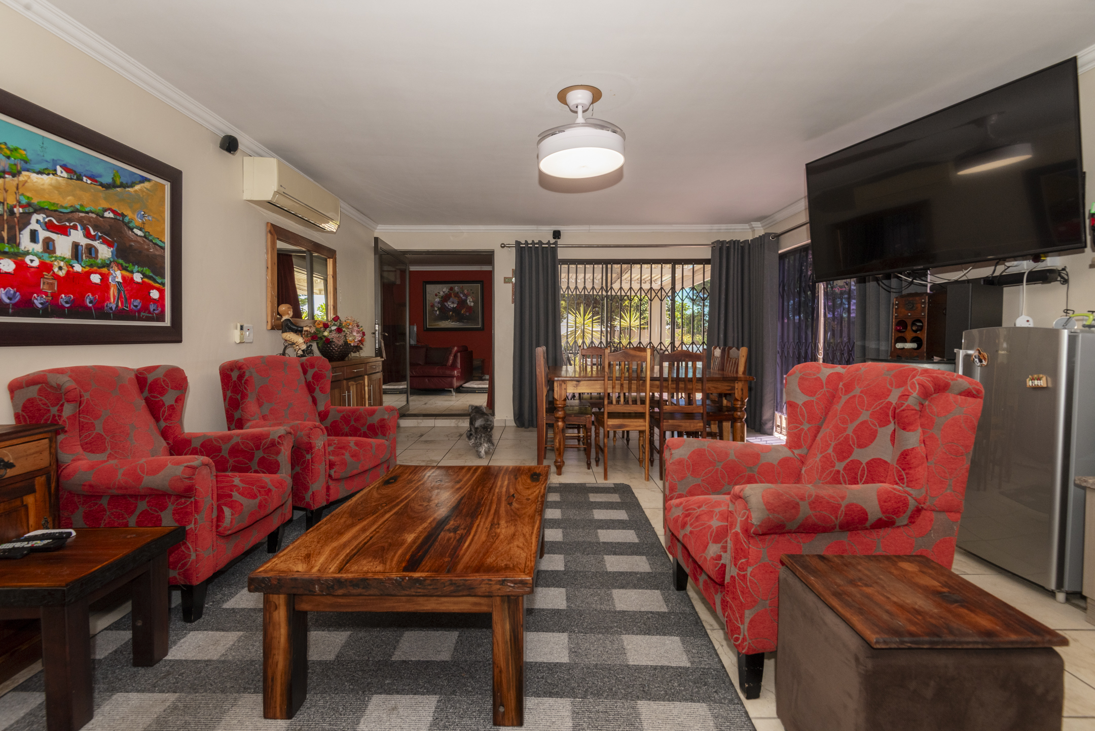 - Top-Tier Security: Clear burglar bars, Trellidoors on main doors and the bedroom wing, an alarm system, and perimeter outdoor beams.