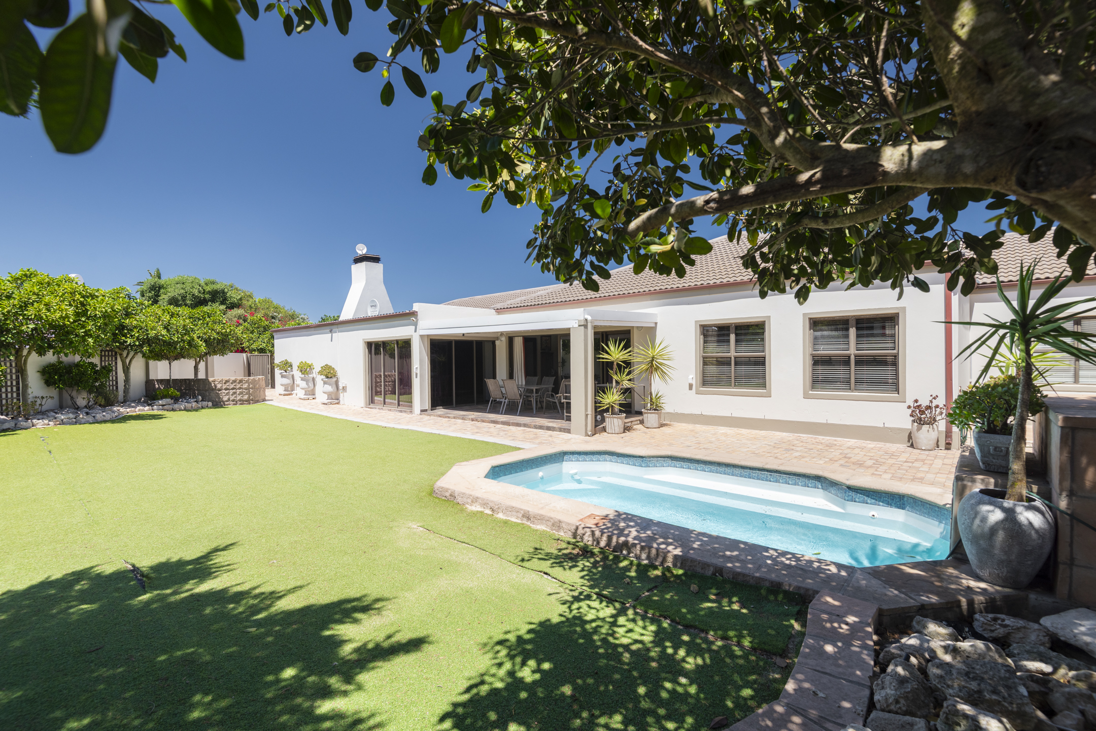 - Conveniently situated in a quiet corner of the Country Club, you are just moments from the Mashie golf course and a short 2.5 km drive to Langebaan’s central shops and amenities. This meticulously maintained property offers an outstanding lifestyle in one of the area’s most sought-after neighborhoods. This spacious and elegant home is truly priced to sell, offering an unparalleled blend of style, security, and versatility.