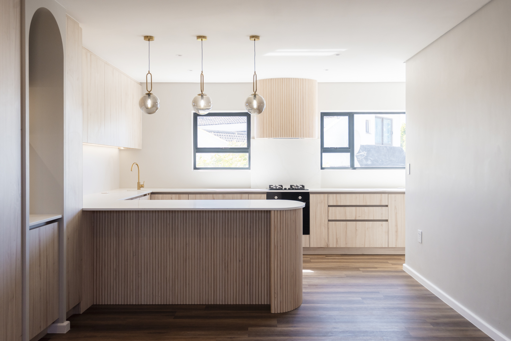 Then you head upstairs and it just gets better. The kitchen is stunning — really calm, neutral colours and the best part is the lagoon views. It’s got a scullery and a gas hob too, so it’s practical as well as pretty. The living area has another fireplace and an indoor braai, so you’re sorted whether it’s winter, summer, or anything in between. There’s even a guest loo up here, which is always a bonus.