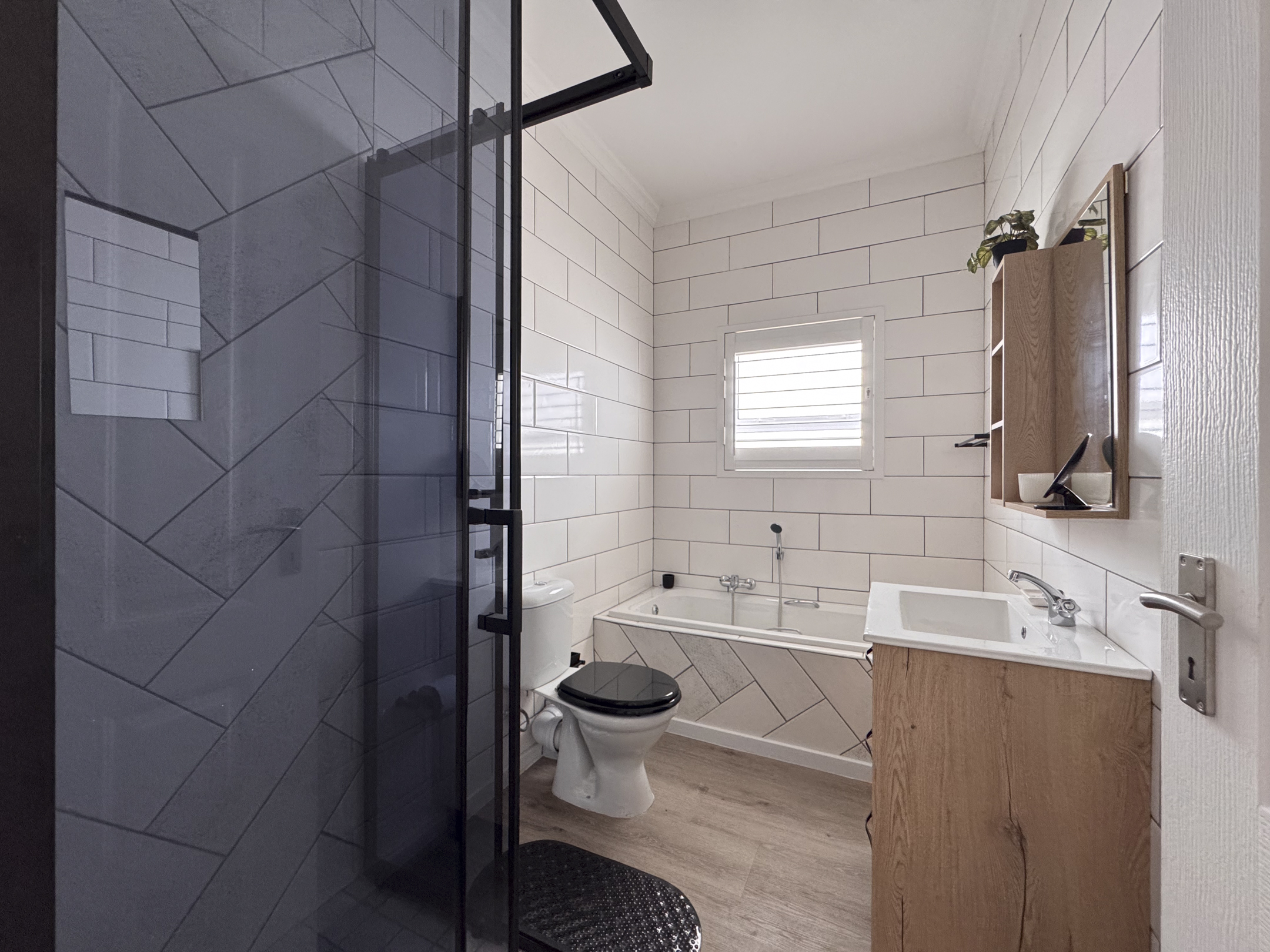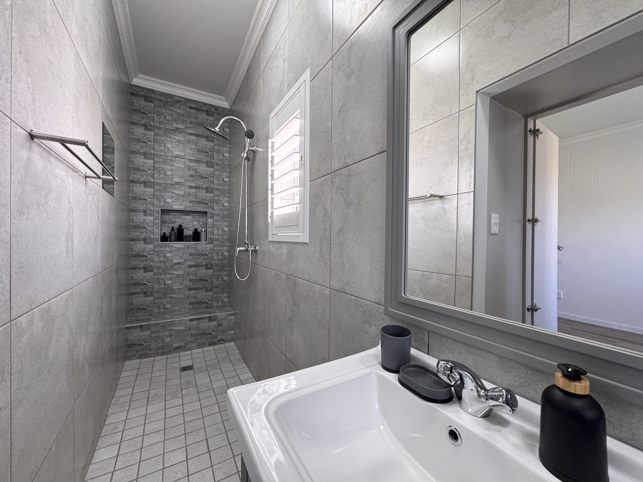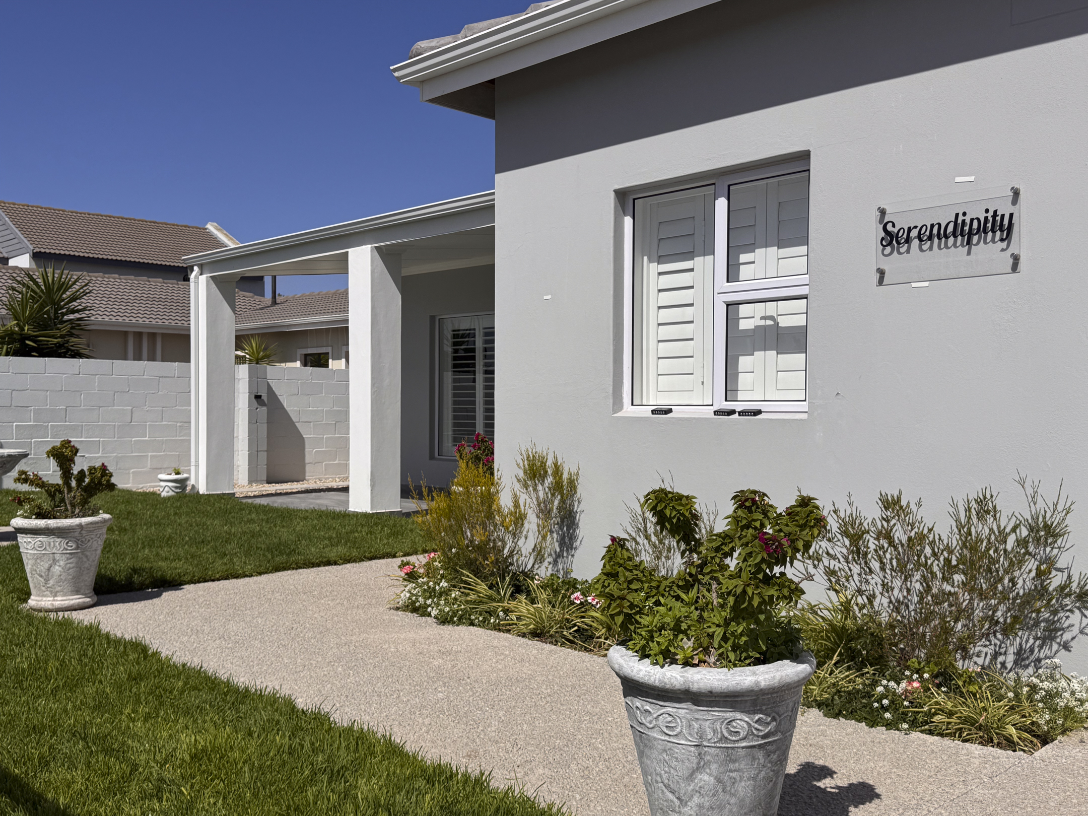 There are 2 bedrooms situated on the northern side of the house, with a guest bedroom and ensuite on the southern side, separate