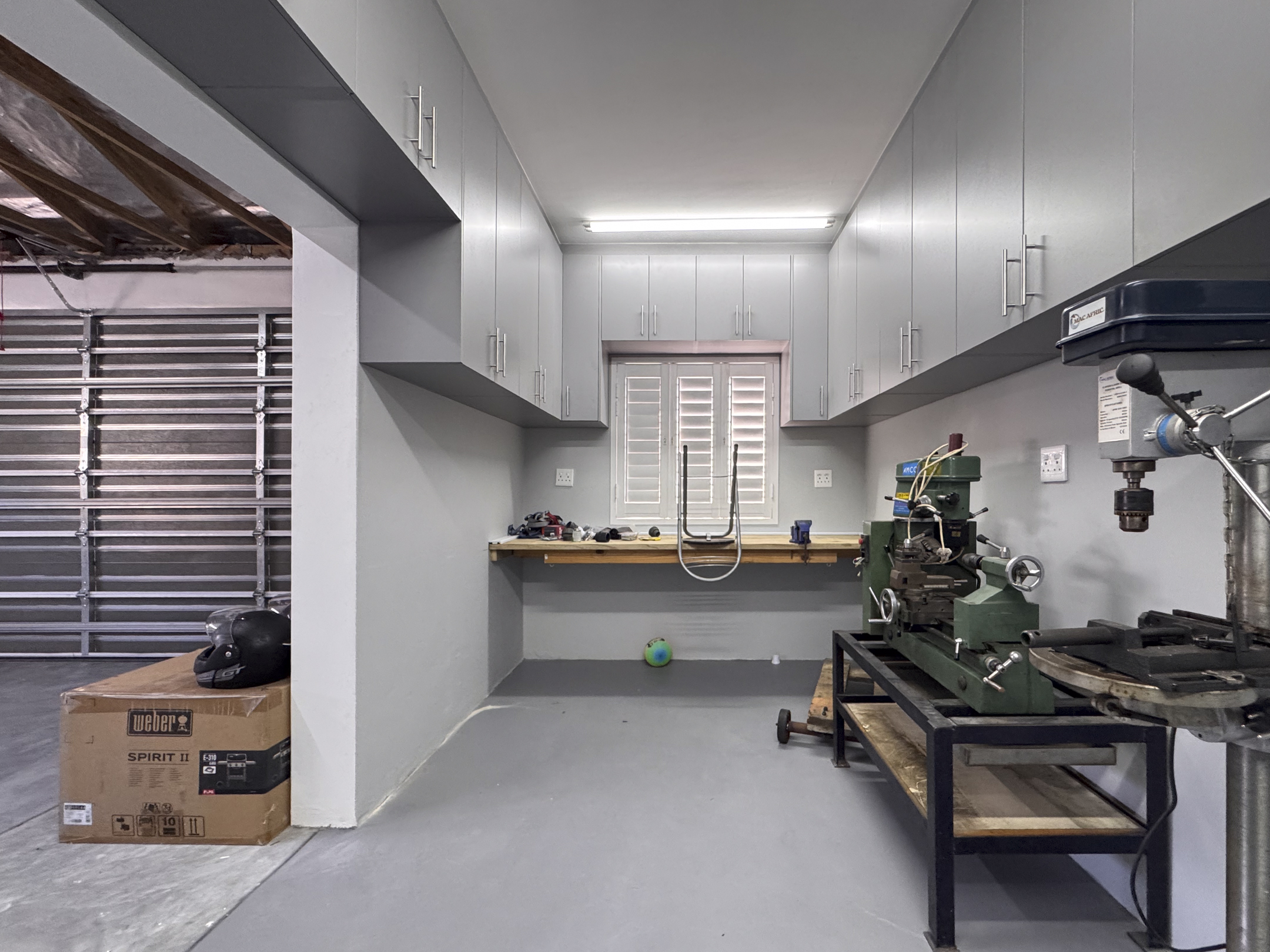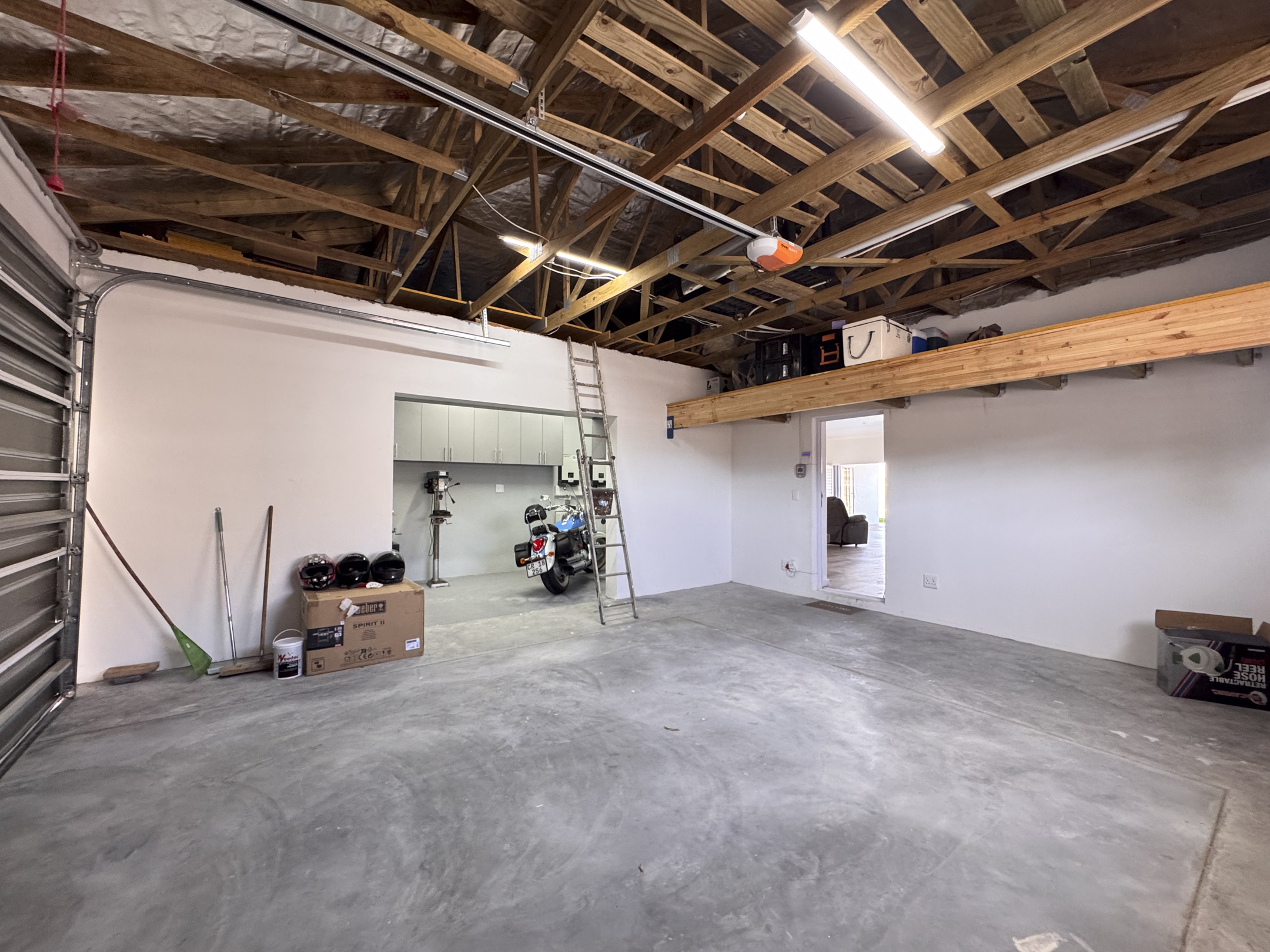 The garage has a workshop, fully kitted out with cupboards and loft packing space.