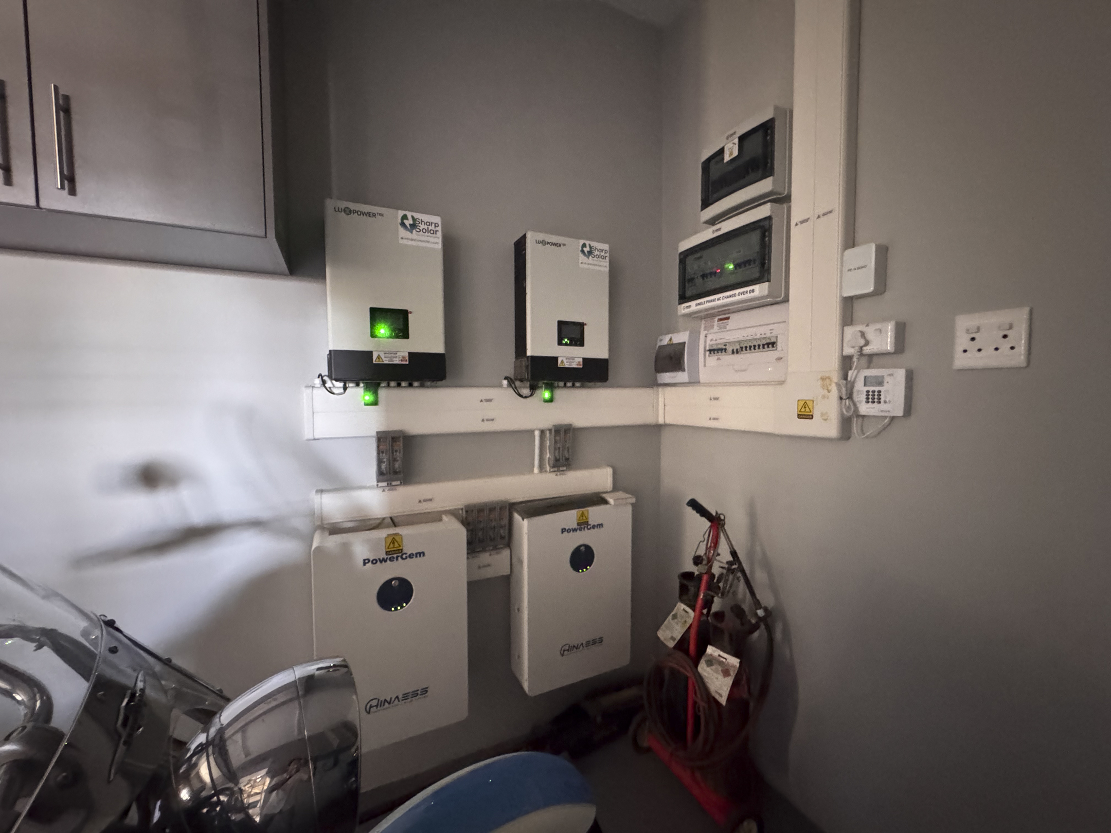 Electricity is supported by the 2x 5kw interters, each with a 5kw battery and panels on the roof.