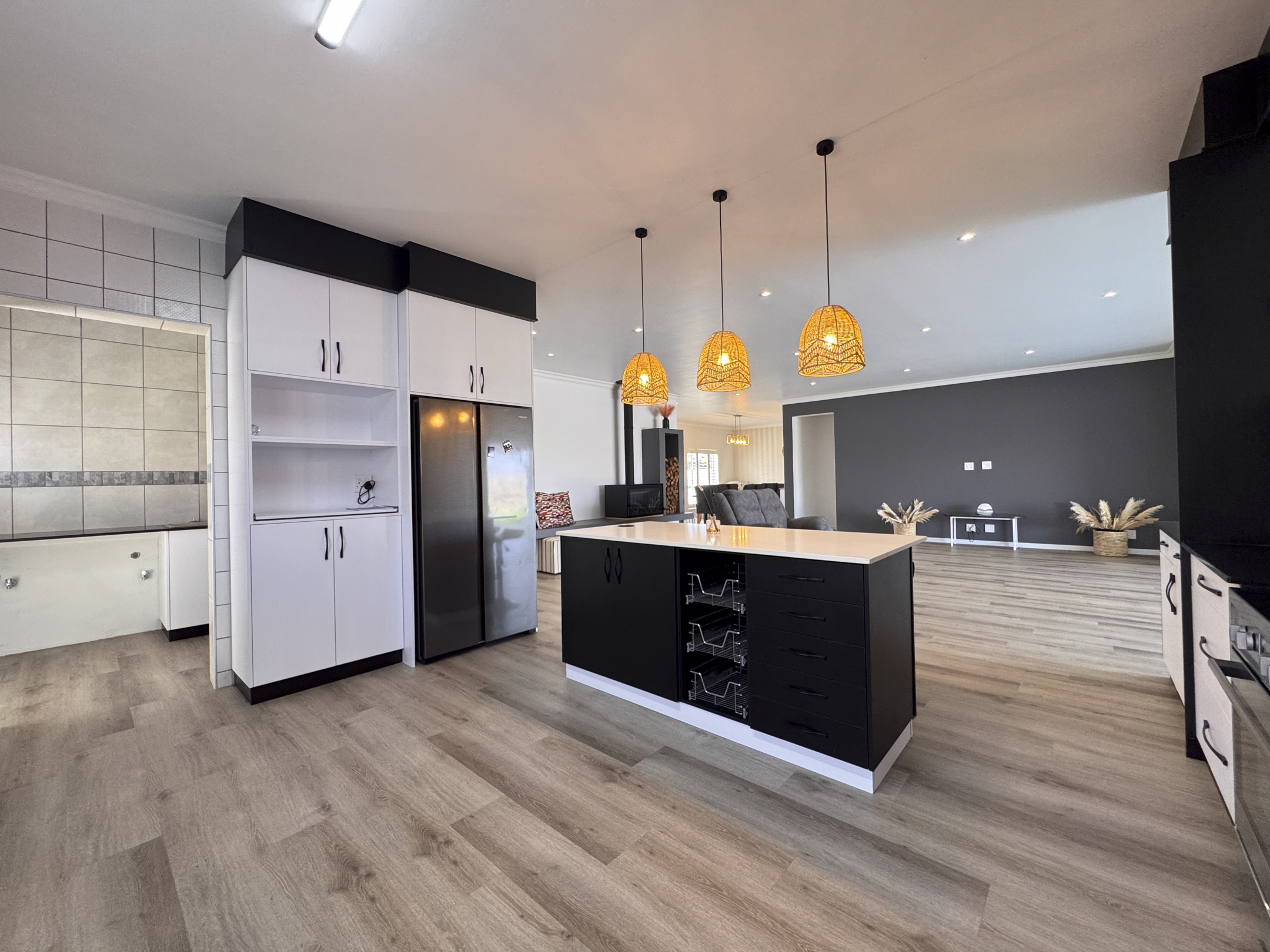 This 256m2 home is all on one level and has vinyl flooring throughout, a stunning kitchen with TONS of counter space..... you can go to town with meal prep in this space.