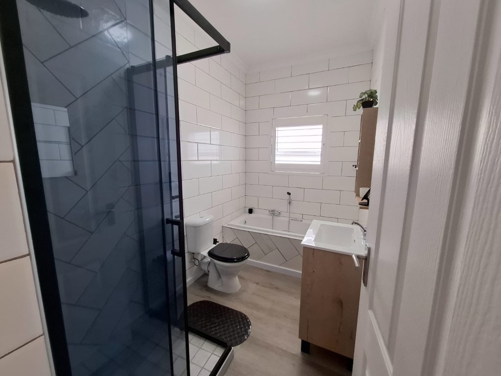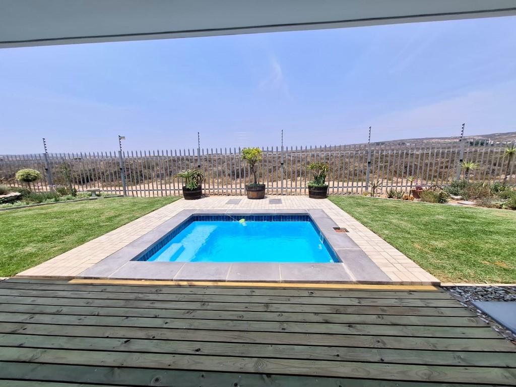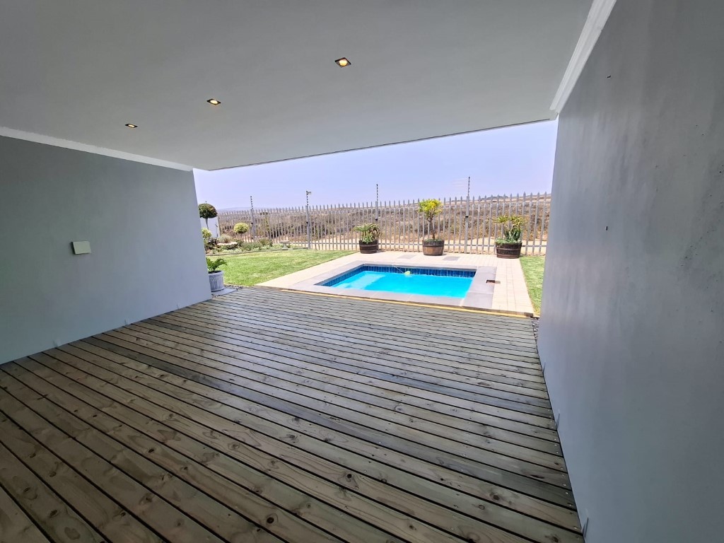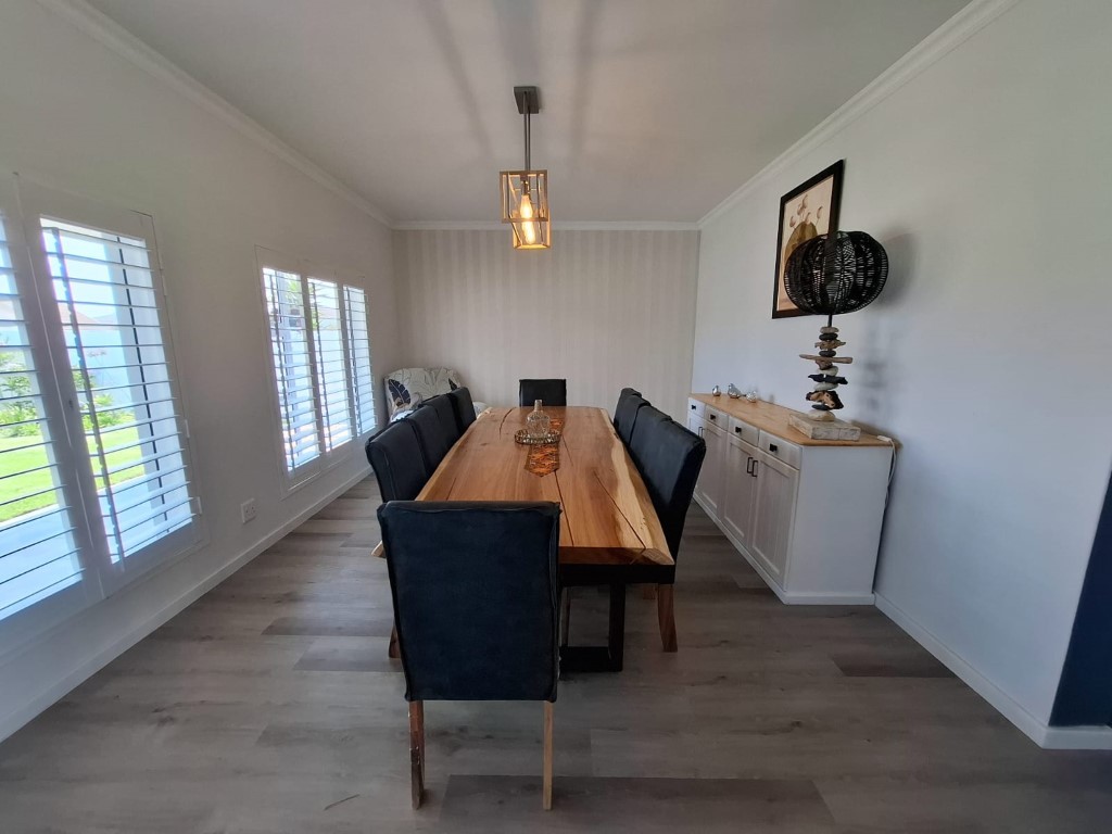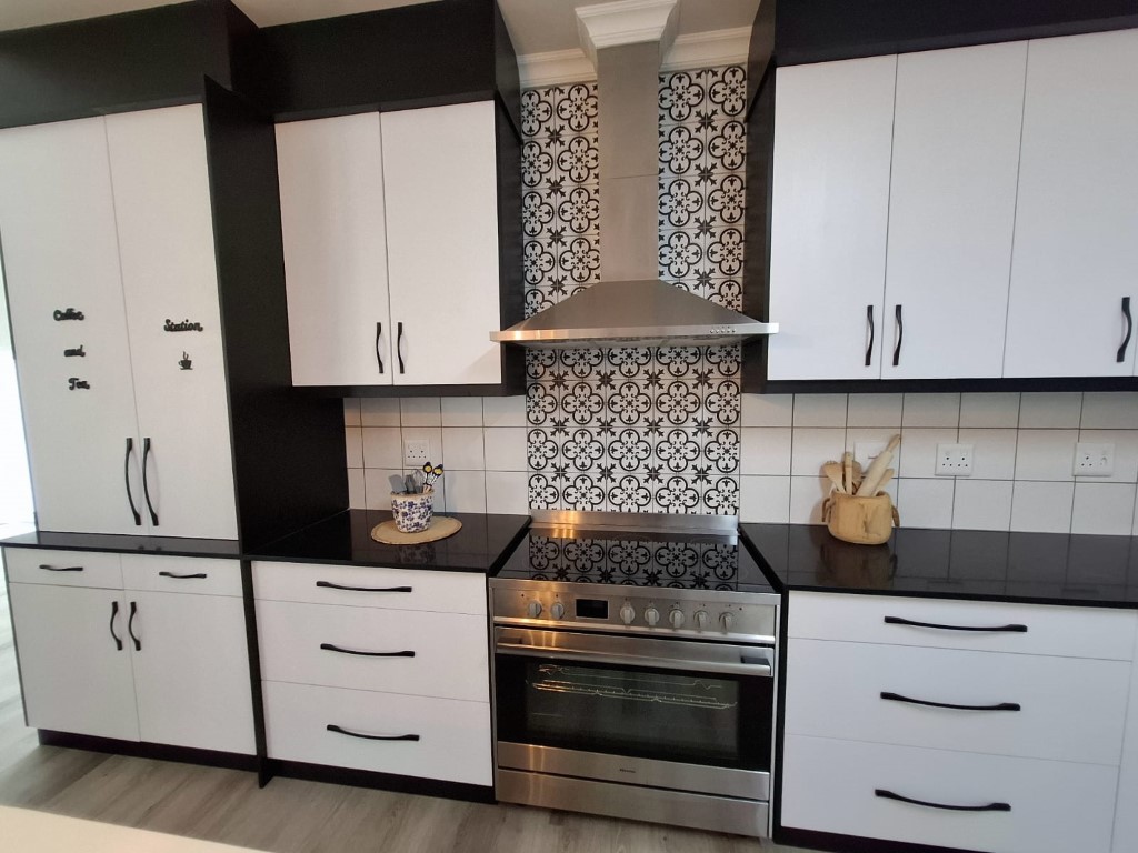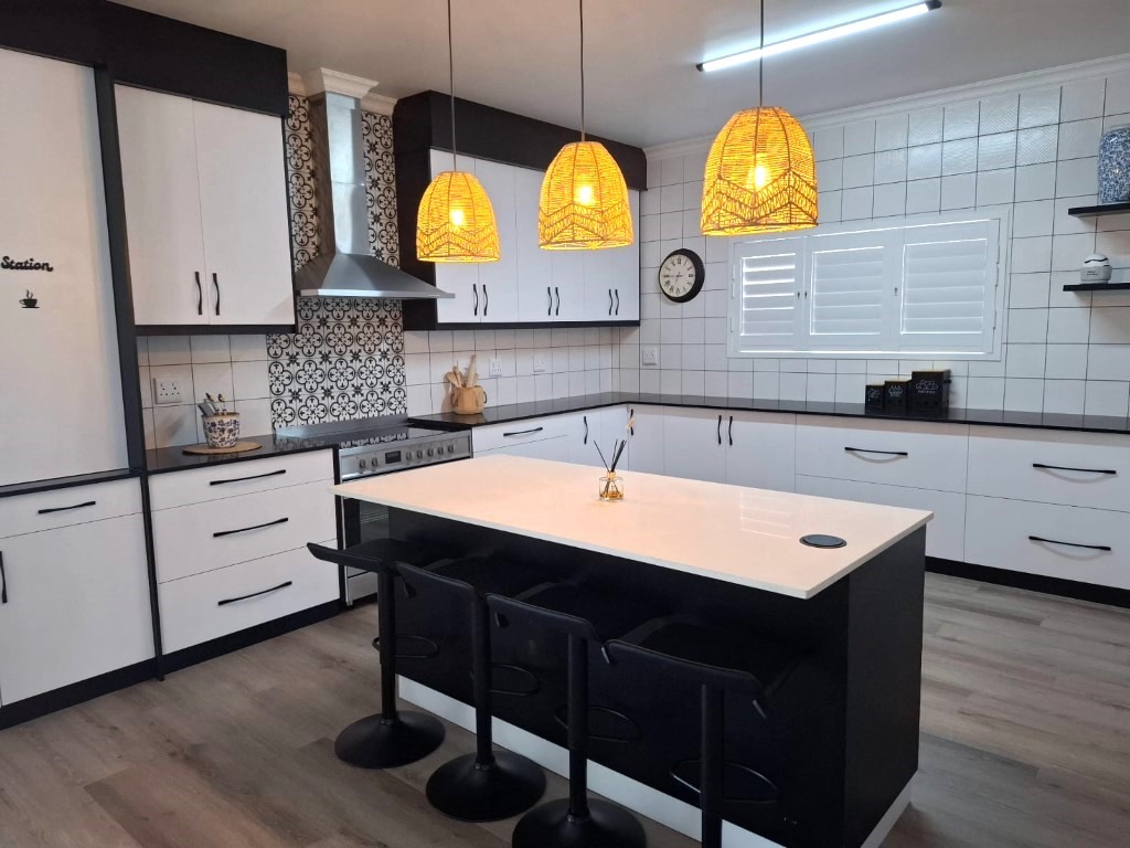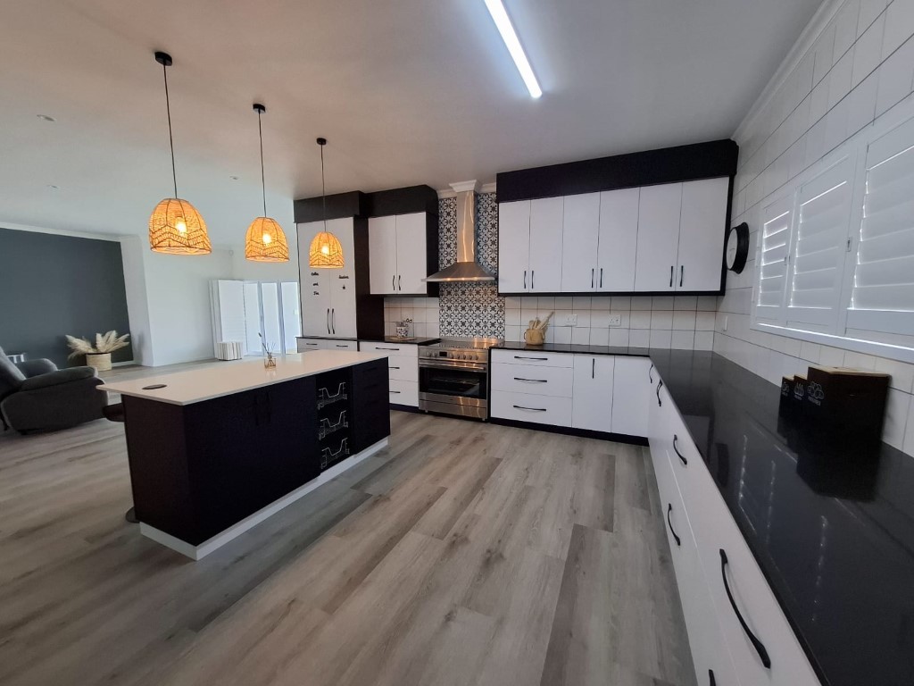 This elegant home features open-plan living at its best, with a spacious lounge flowing seamlessly into a designer kitchen complete with a central island, Caesarstone and engineered granite countertops, quality finishes, and a separate scullery. A wood-burning stove adds warmth and charm for cosy winter evenings.