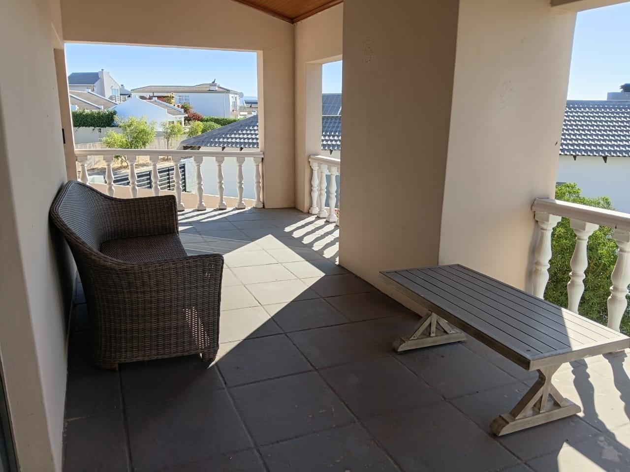 * Sliding doors opening onto a covered balcony with a glimpse of the lagoon
