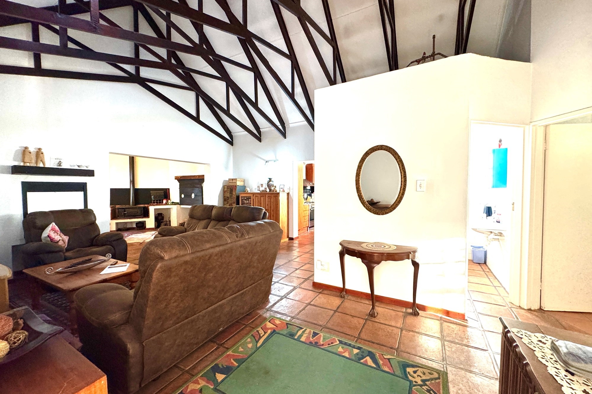 Main Feature: Open wooden trusses offering an airy, Farmhouse cottage charm.