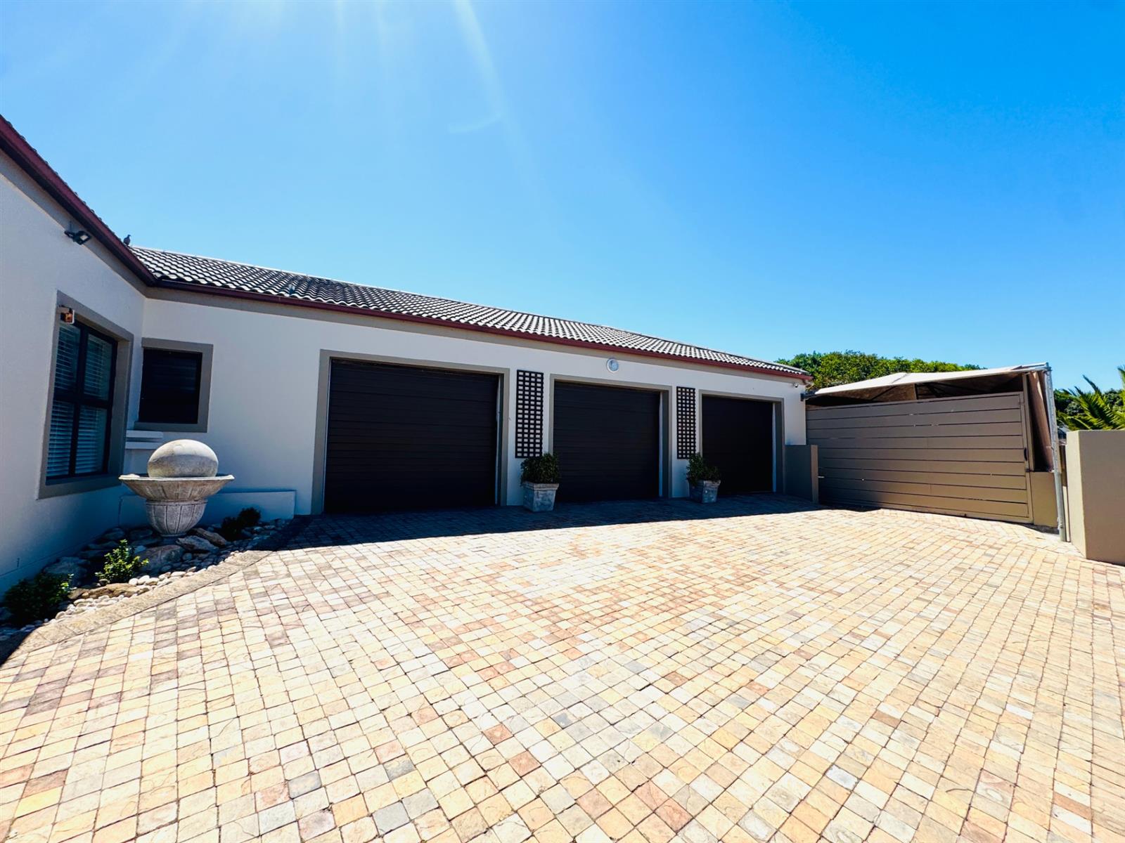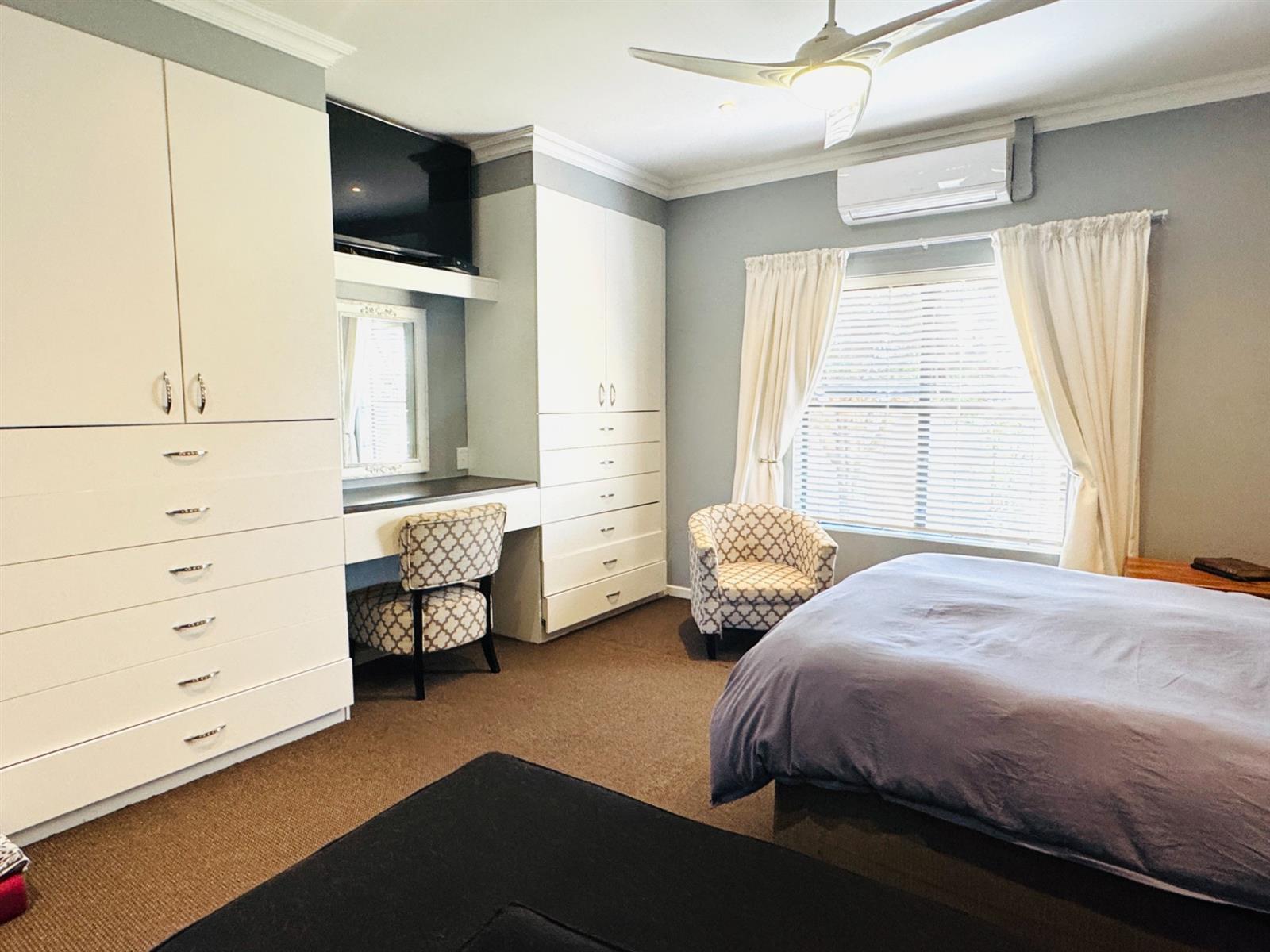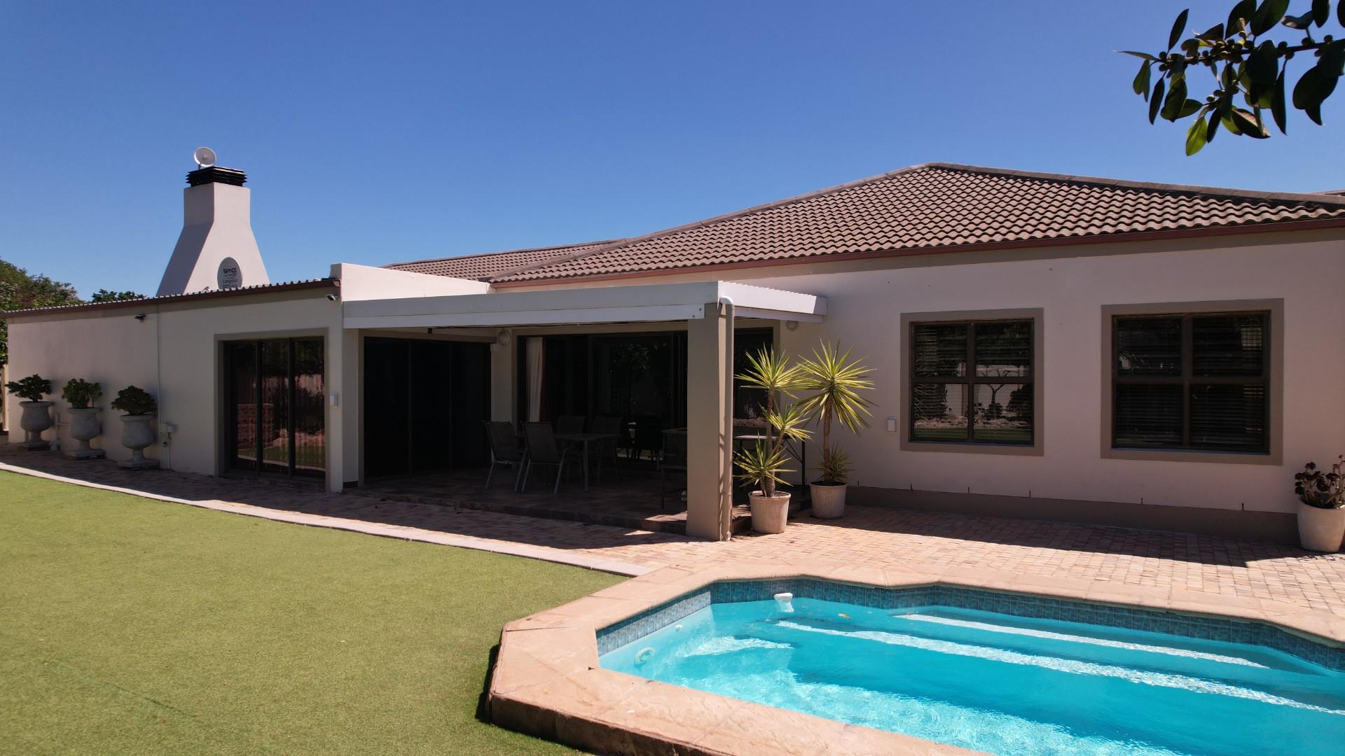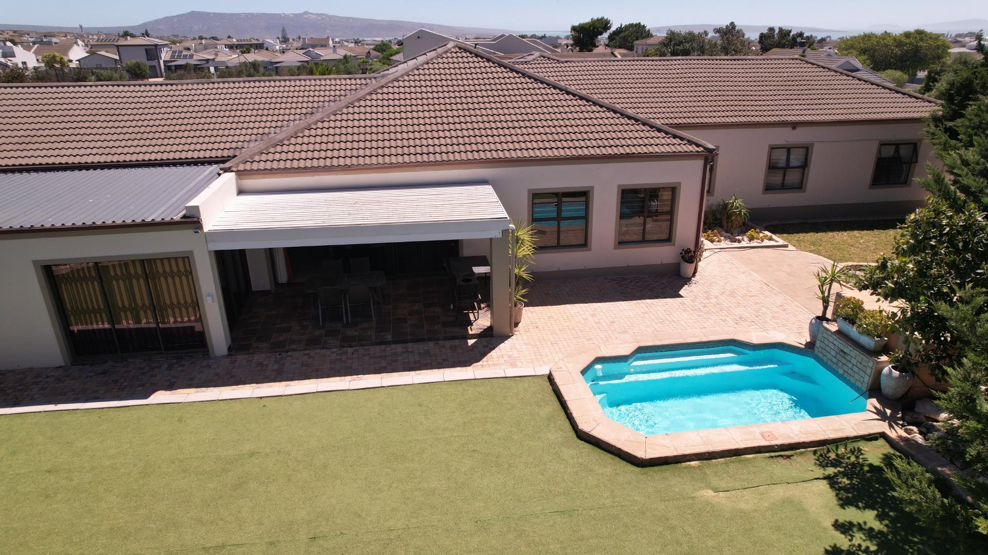 Nestled in a quiet cul-de-sac within the sought-after Langebaan Country Club, this large and inviting family home offers exceptional space, comfort, and versatility. Designed for relaxed living and effortless entertaining, it features a desirable north-facing orientation, with all living areas flowing seamlessly onto a generous under-roof patio fitted with a louvre roof system—perfect for year-round enjoyment.