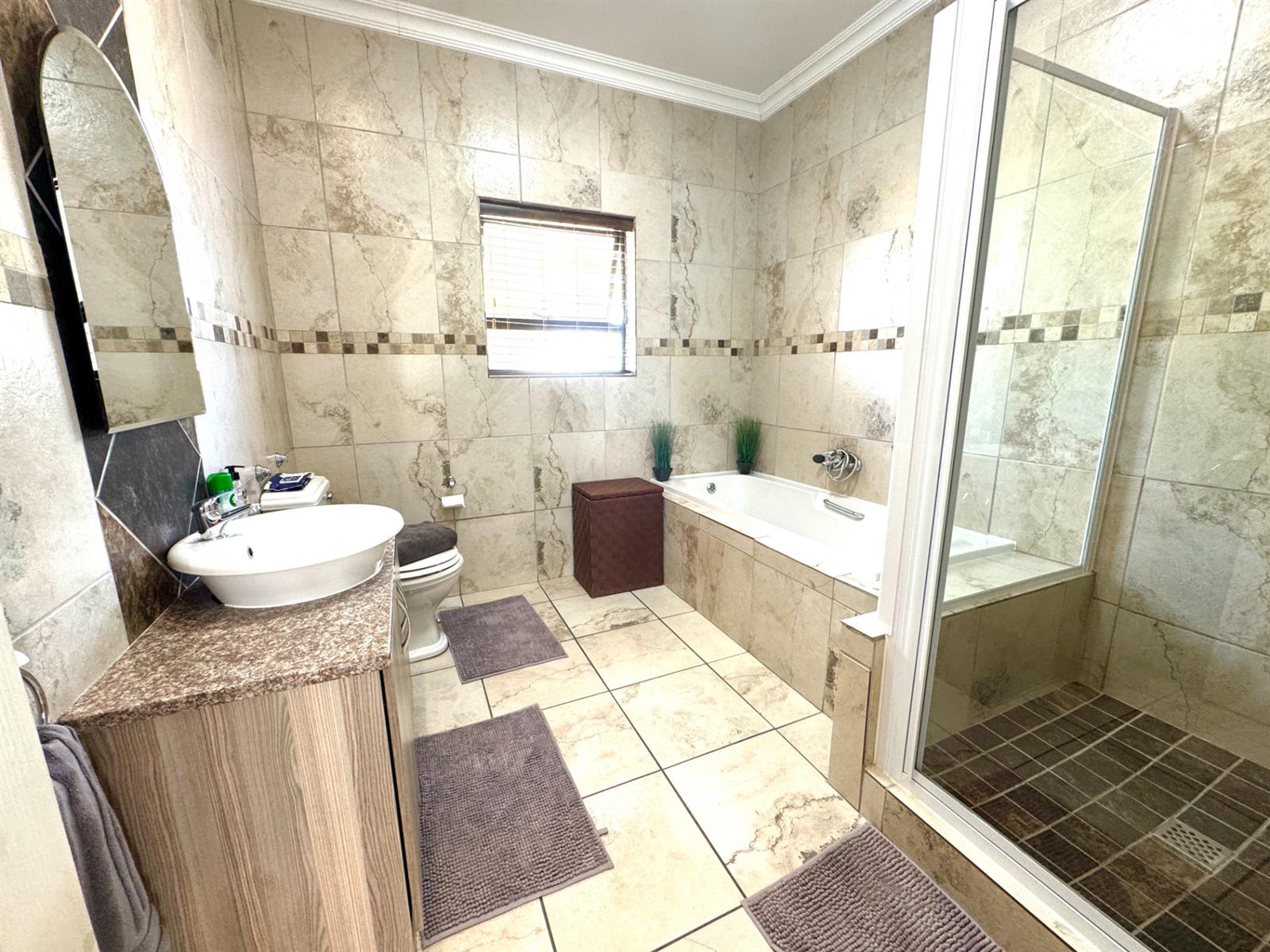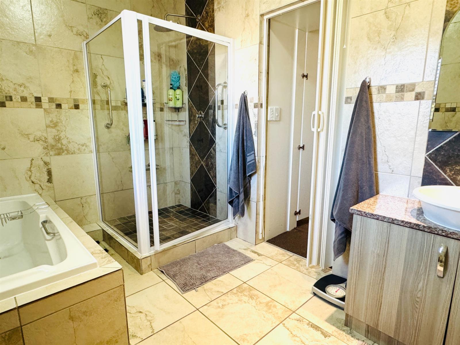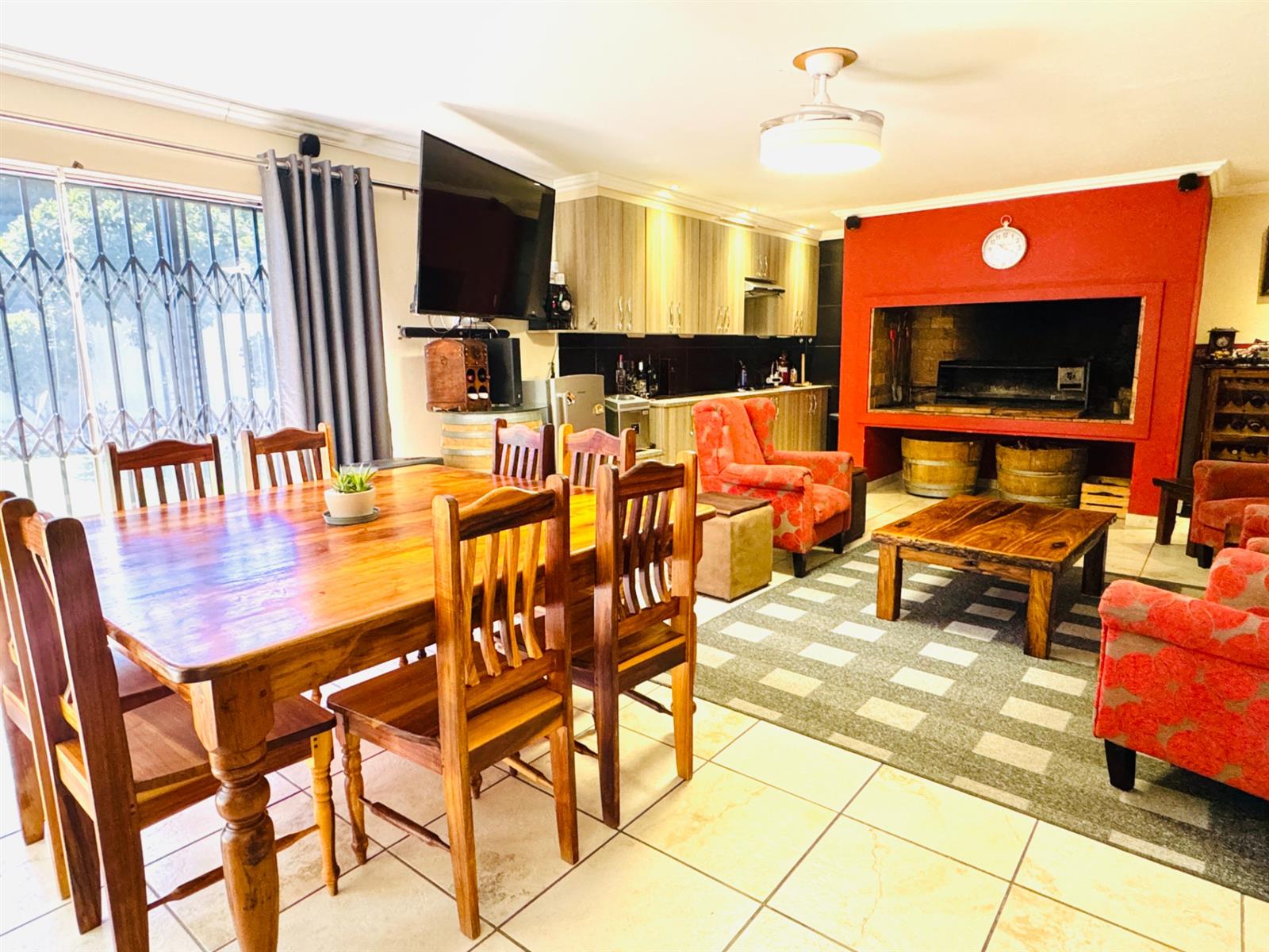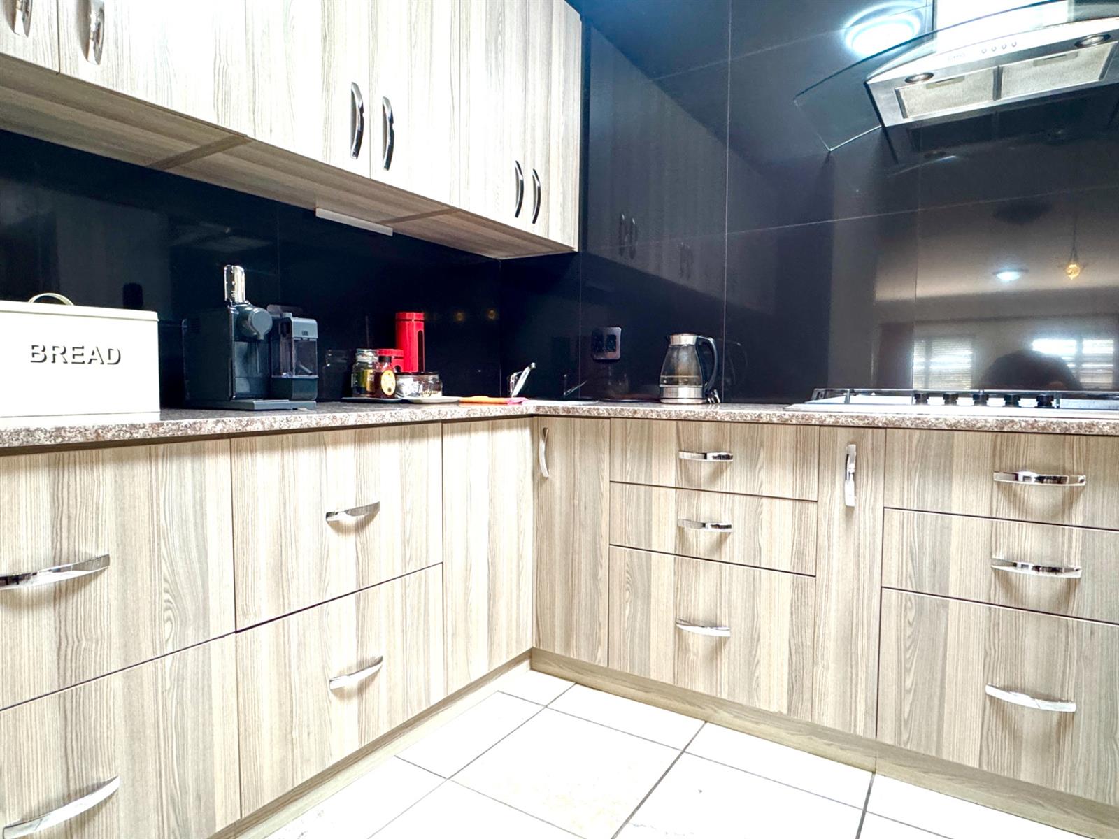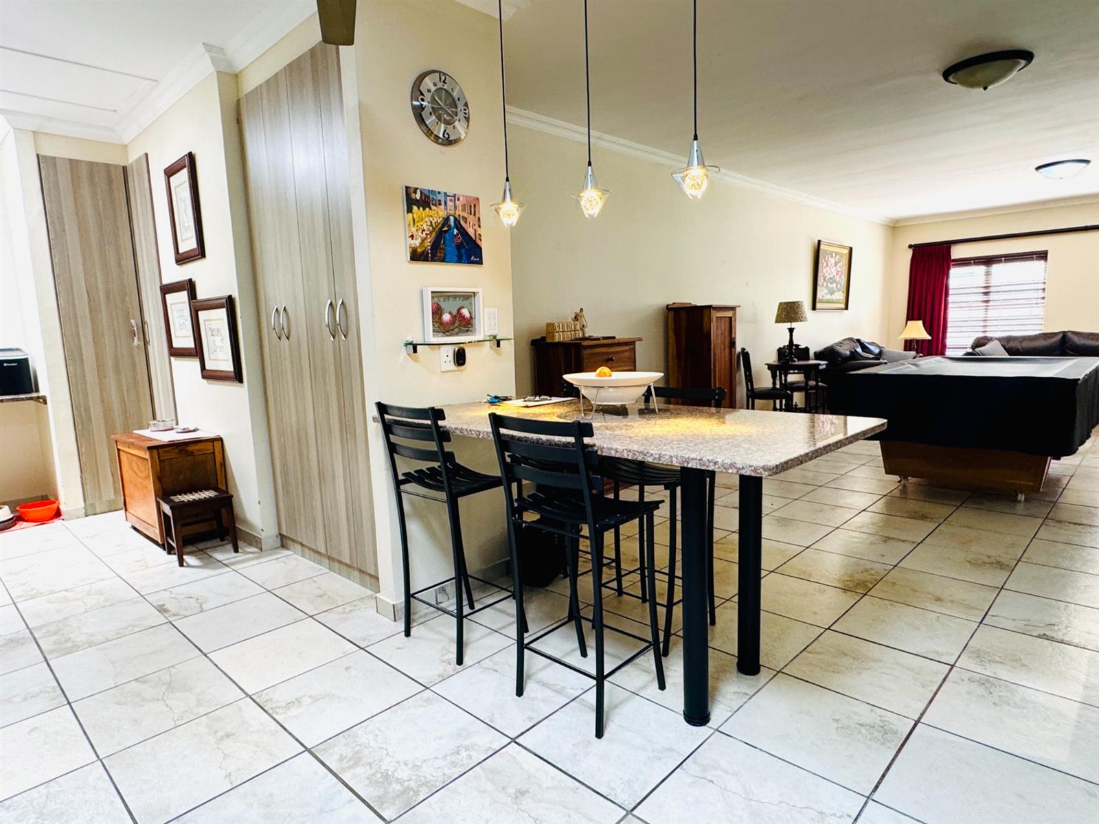 You are welcomed by a spacious entrance hall that sets the tone for the home’s warm and airy atmosphere. The main lounge is expansive and connects beautifully with a modern, functional kitchen. The kitchen boasts clean contemporary finishes, ample working space, and a separate scullery and laundry—ideal for a busy family.