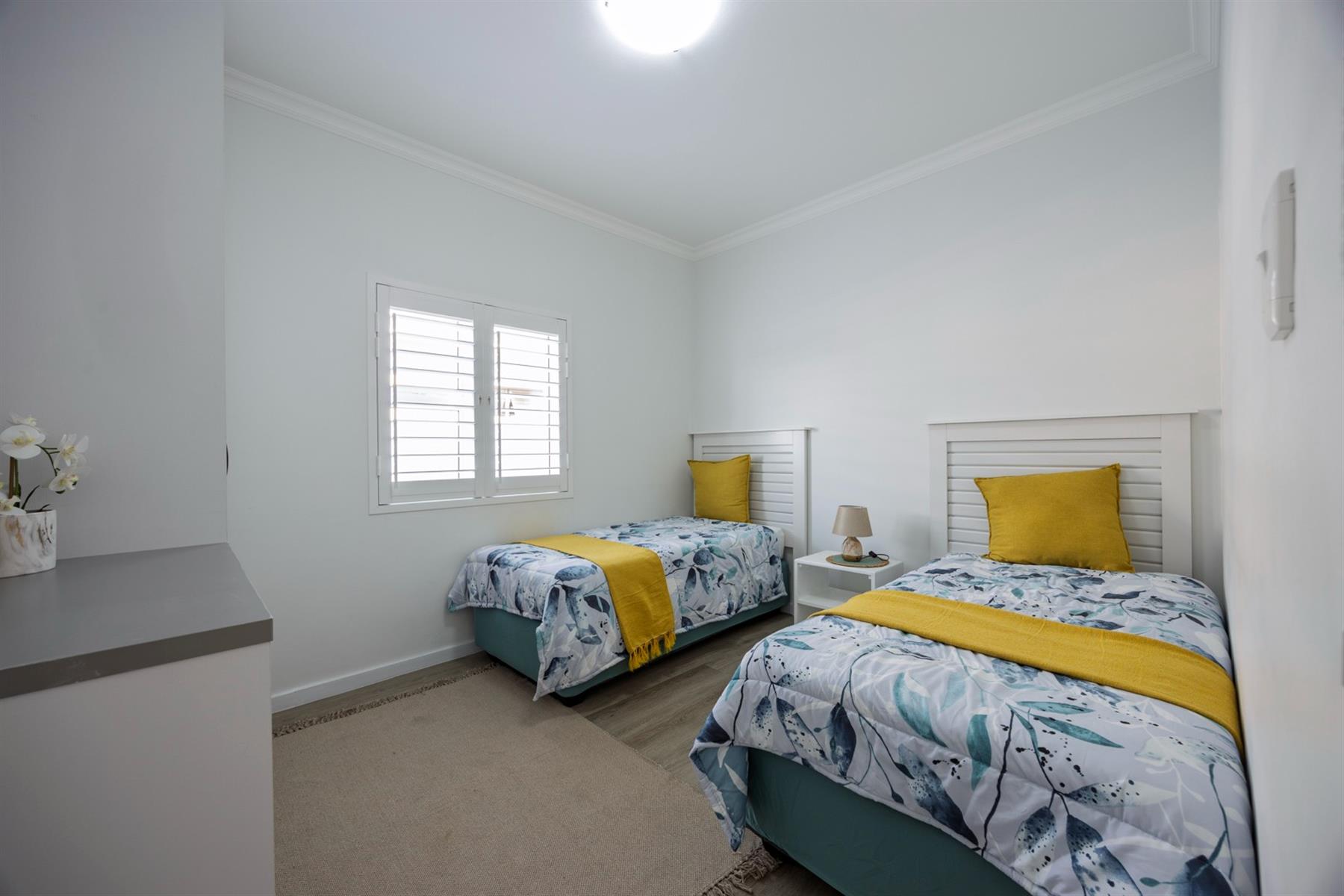 Three well-positioned bedrooms ensure privacy, complemented by three designer bathrooms: two en-suites with modern showers and one full bathroom with bath and shower. The main suite is discreetly set apart for added tranquillity.