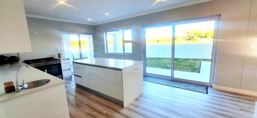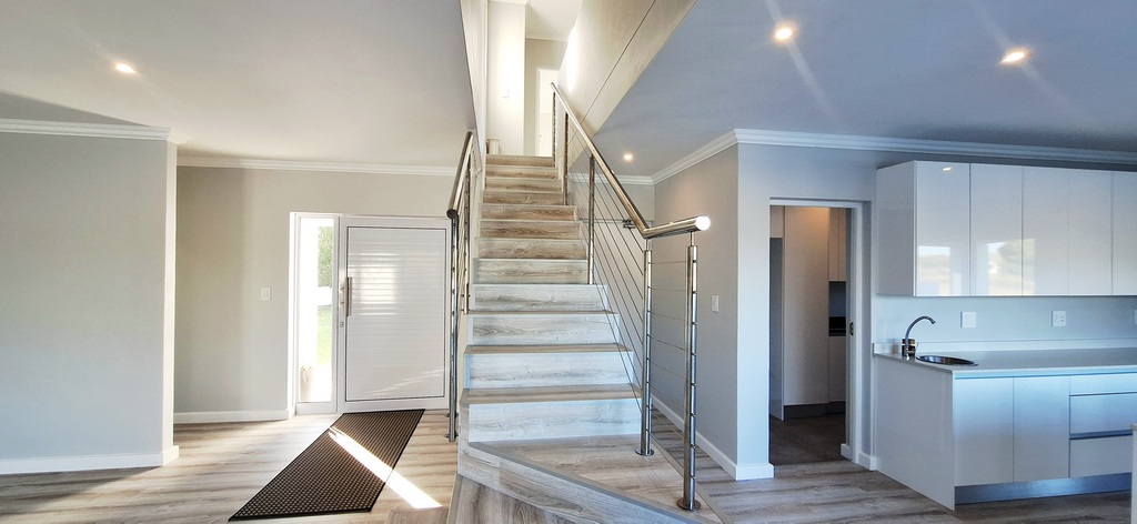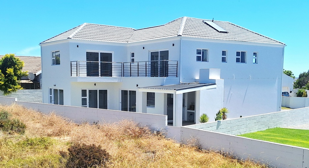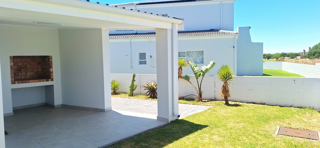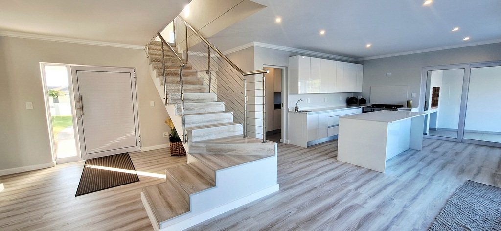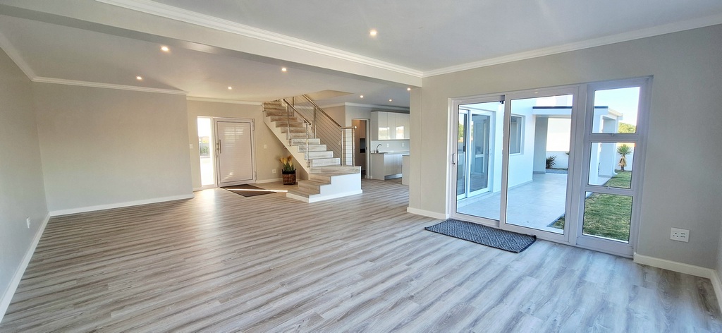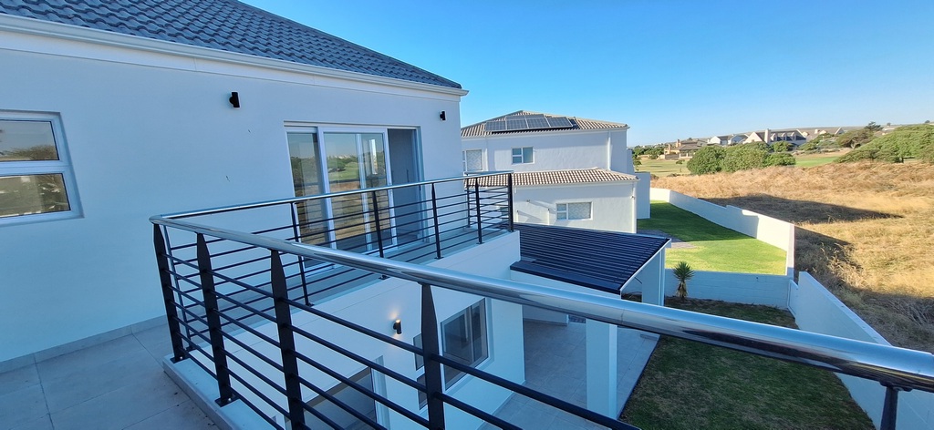 Experience modern tranquility in this new double-storey home, perfectly positioned at the end of a quiet cul-de-sac and bordering the serene Mashie Golf Course in Country Club, Langebaan.