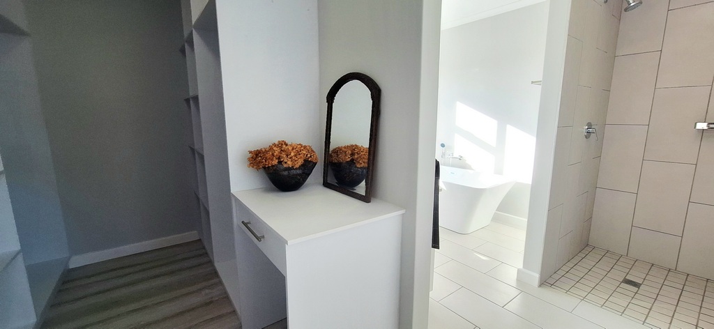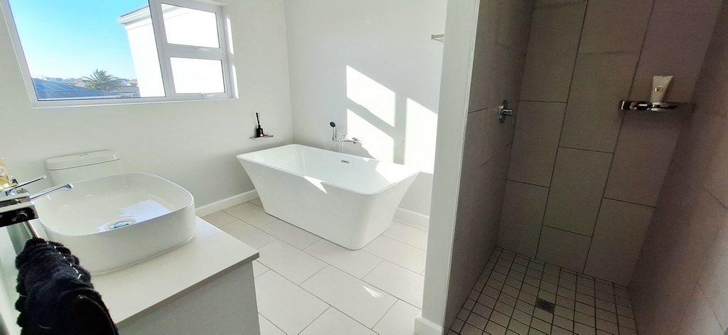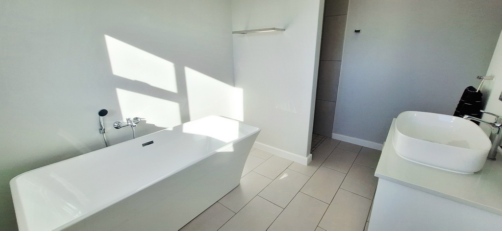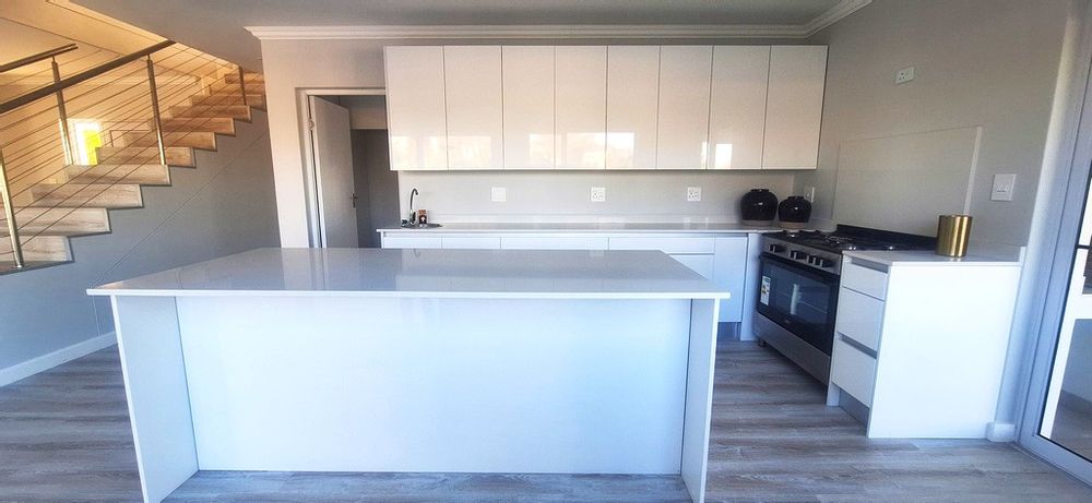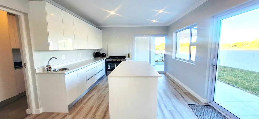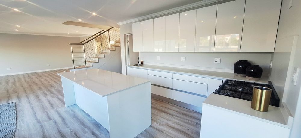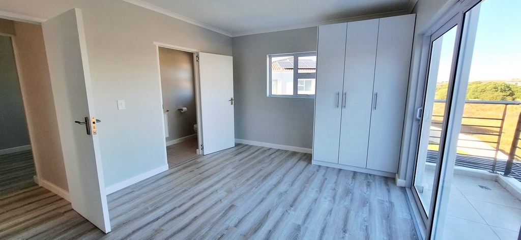 Experience modern tranquility in this new double-storey home, perfectly positioned at the end of a quiet cul-de-sac and bordering the serene Mashie Golf Course in Country Club, Langebaan.