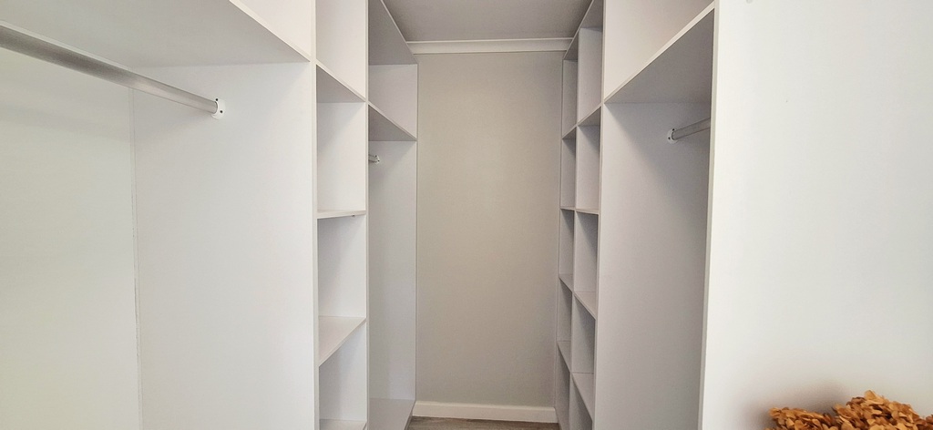 On the opposite side, the heart of the home unfolds—a stunning dream-white kitchen with a gas hob, a generous breakfast island, and an abundance of drawers and cupboards.