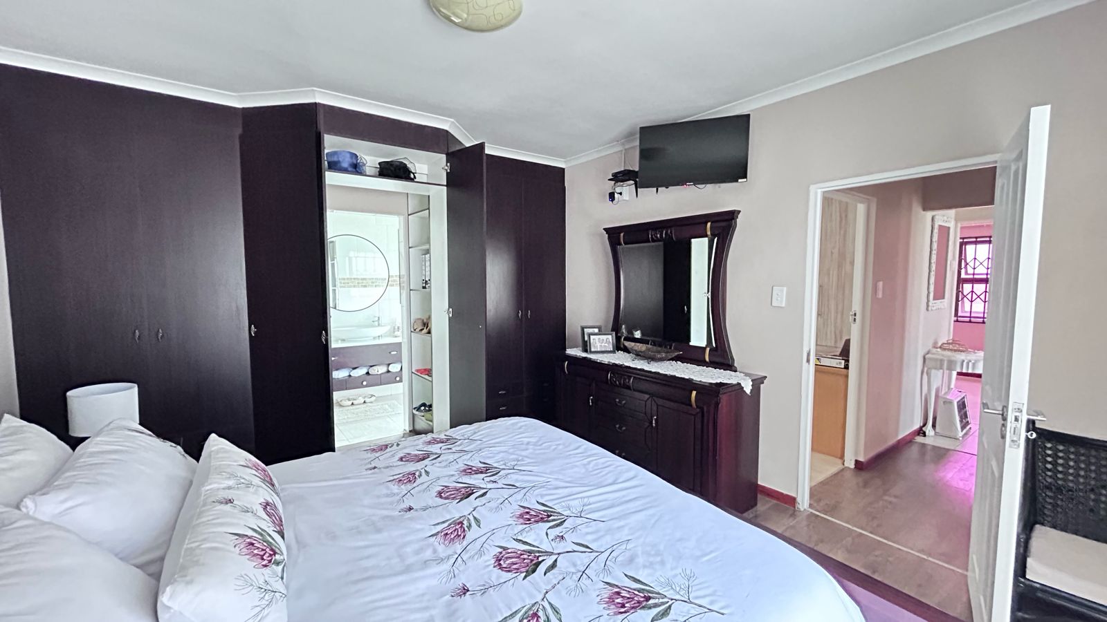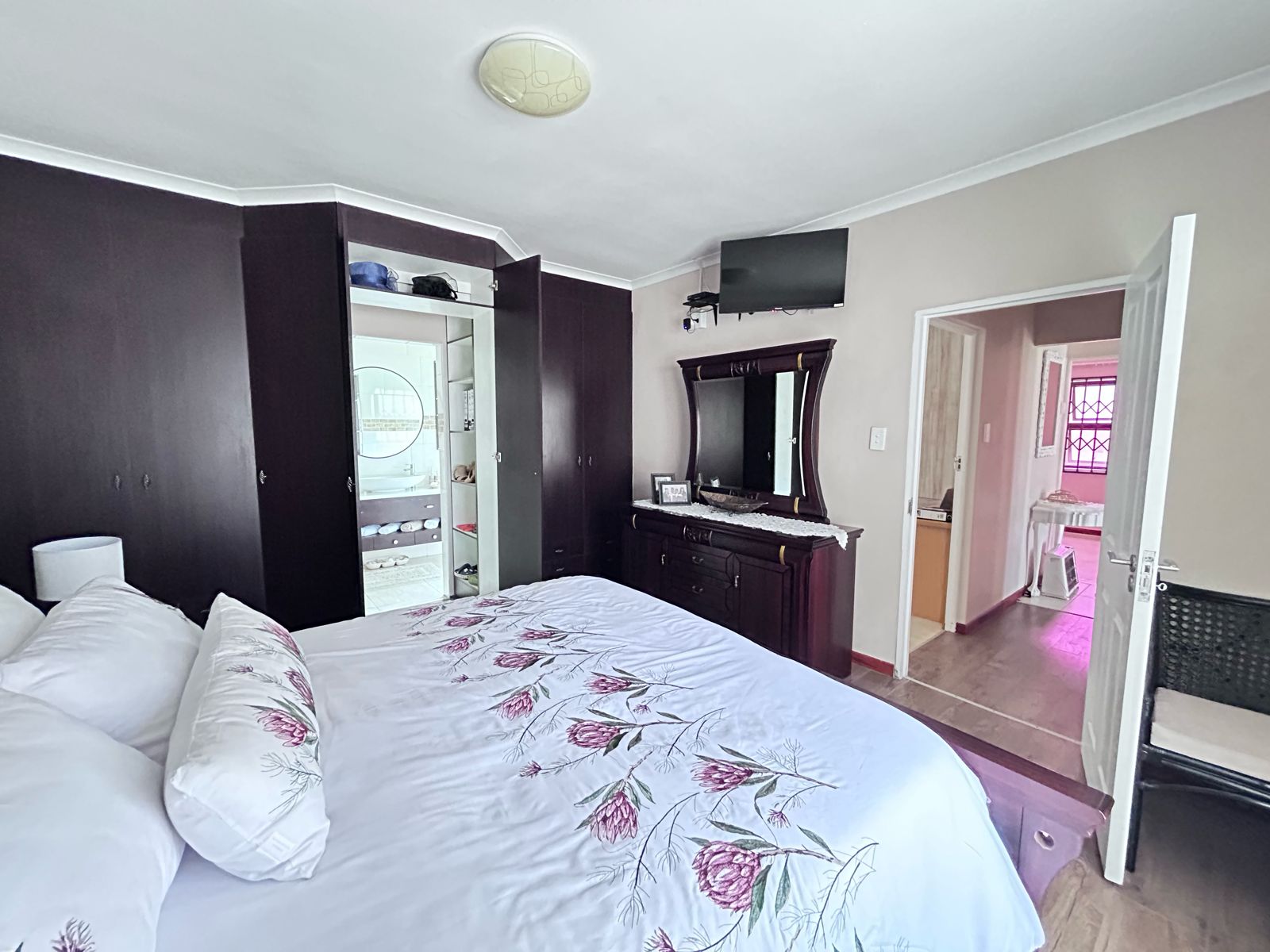 A generously sized main bedroom awaits, boasting ample built-in cupboards for all your storage needs. Enjoy the luxury of an en-suite bathroom, providing convenience and privacy.
