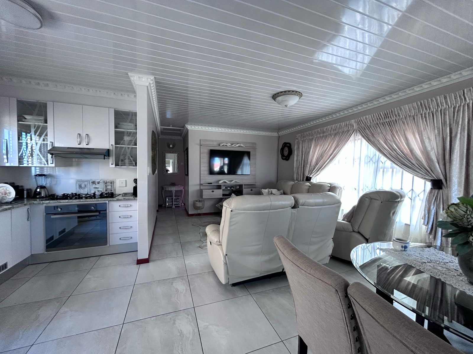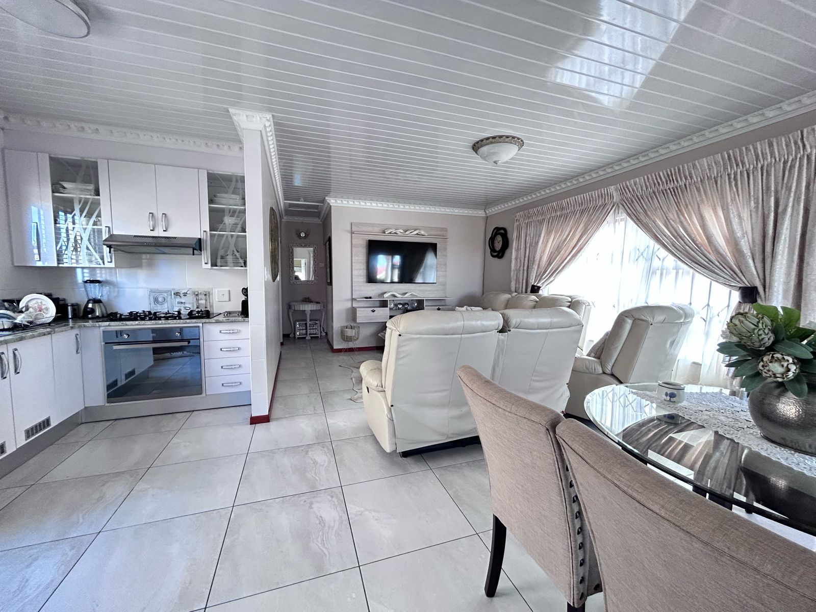 Experience effortless flow throughout the living space, from the kitchen to the living room, allowing for seamless entertaining and daily living.