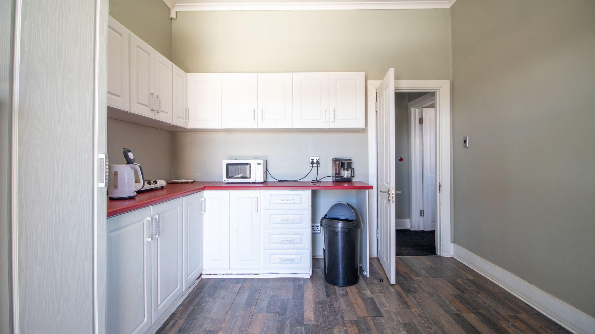 Boardroom, large secretary & waiting room, small electronics room and a files room