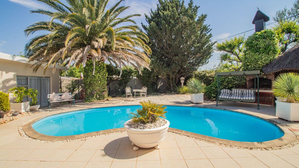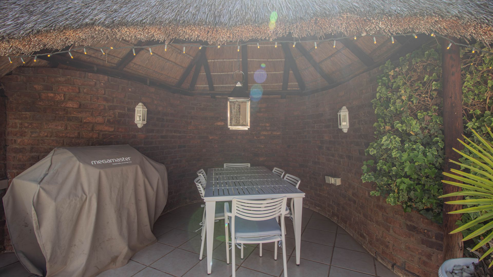An indoor entertainment area with a built-in braai, bar (complete with fridge), and large TV makes this property ideal for year-round entertaining. Two large garages with tiled finishes add practicality and space, while top-tier security features — including a CDK system, palisade fencing, and remote-controlled gate — ensure peace of mind.