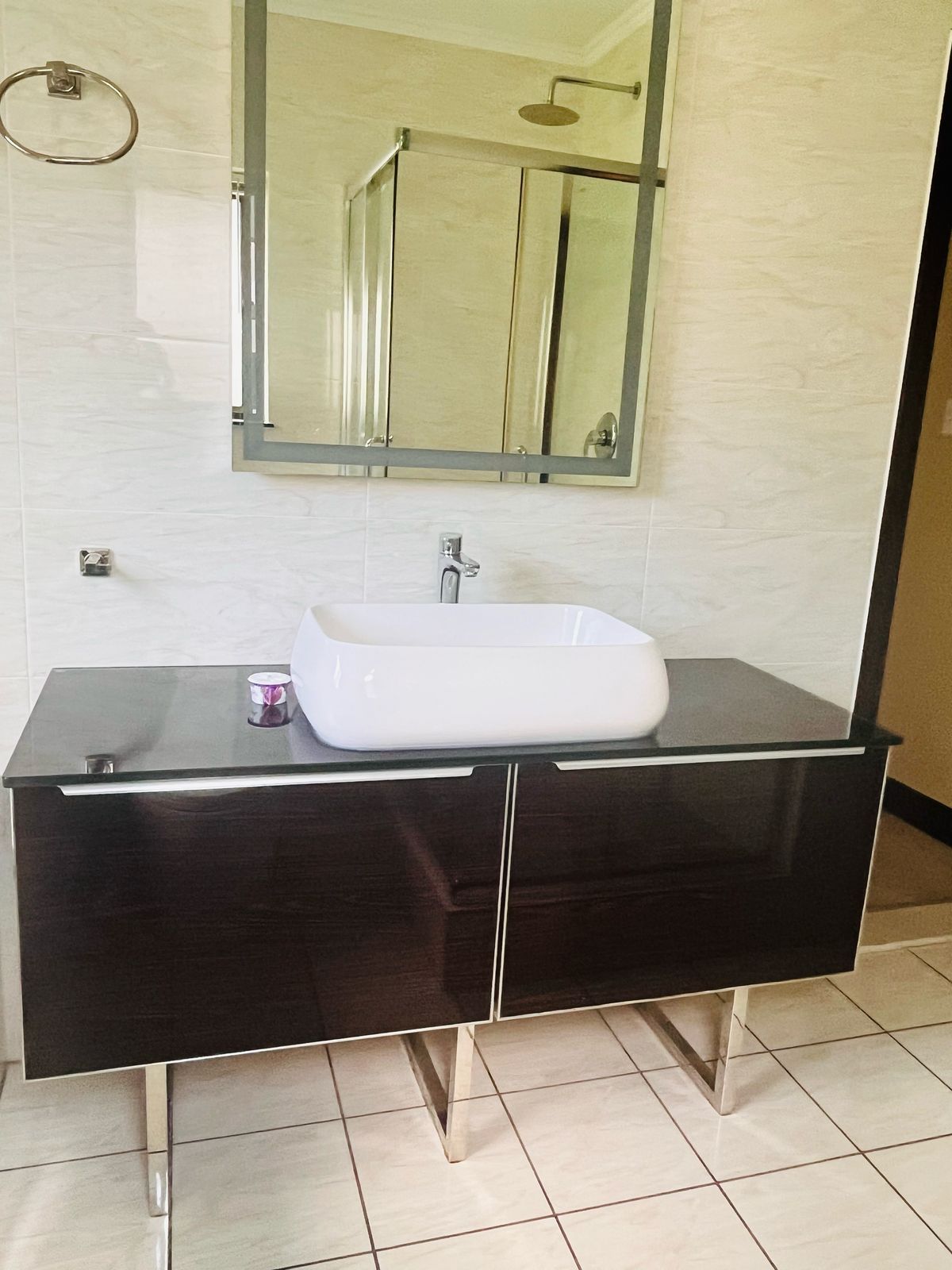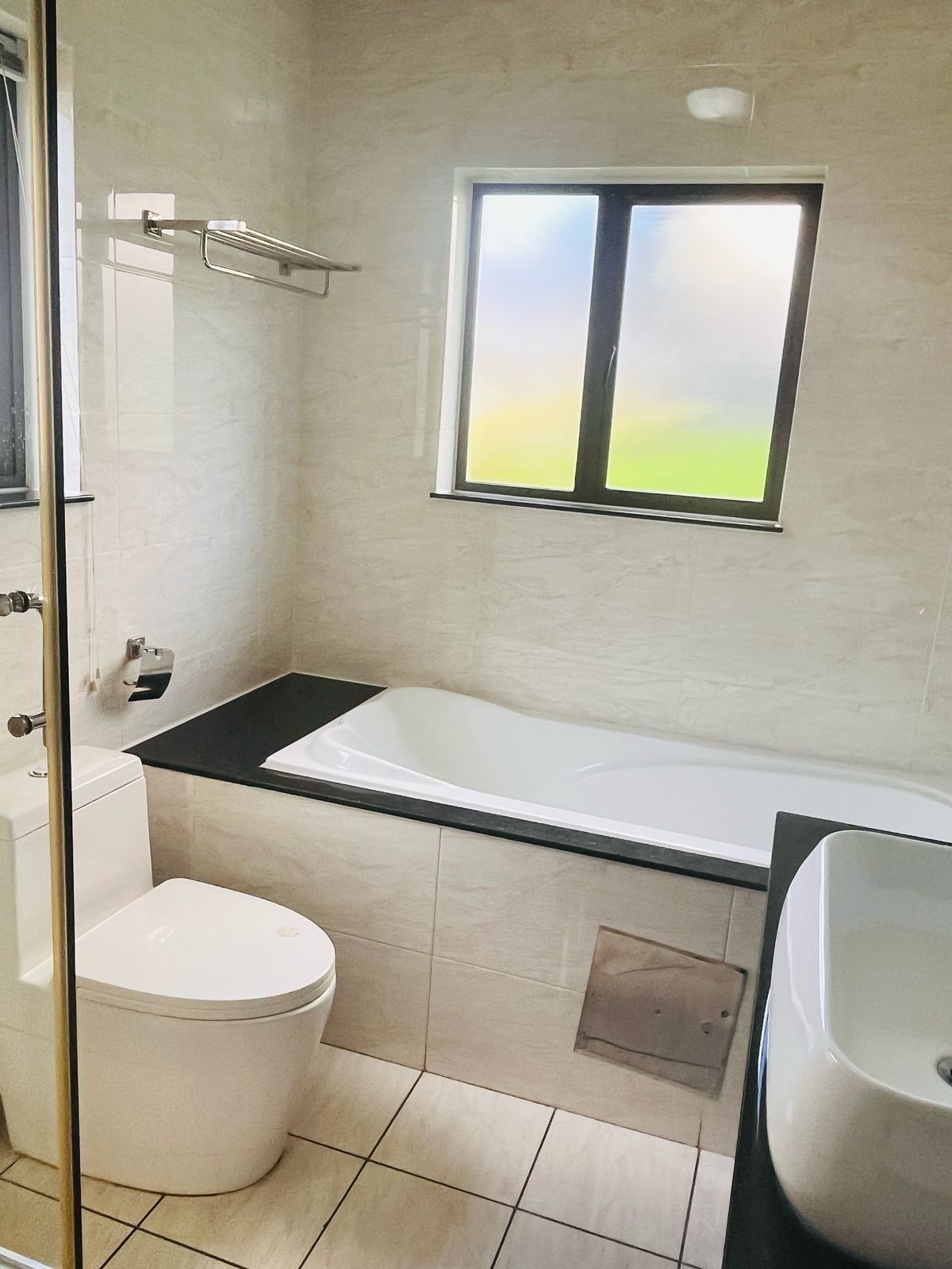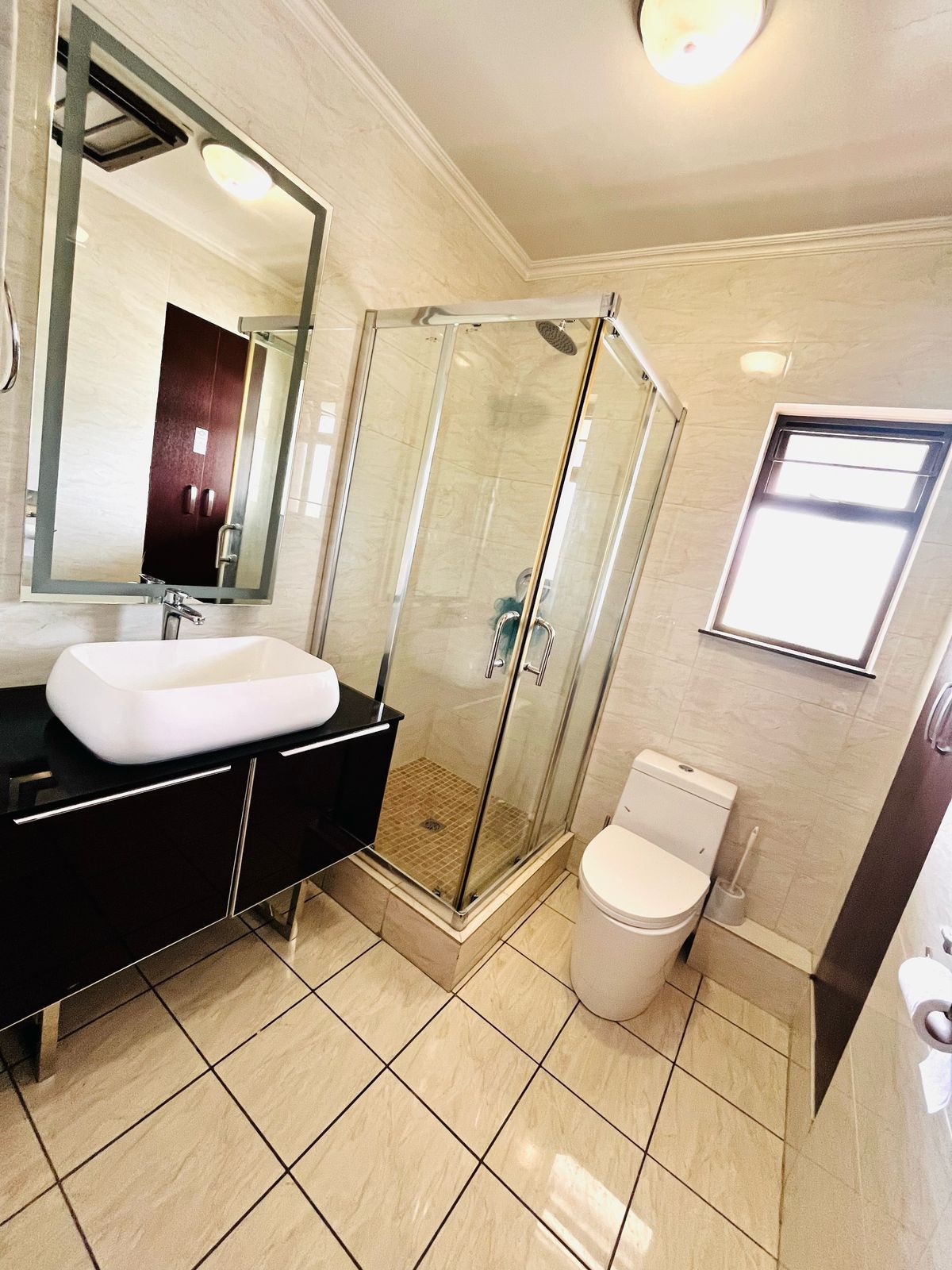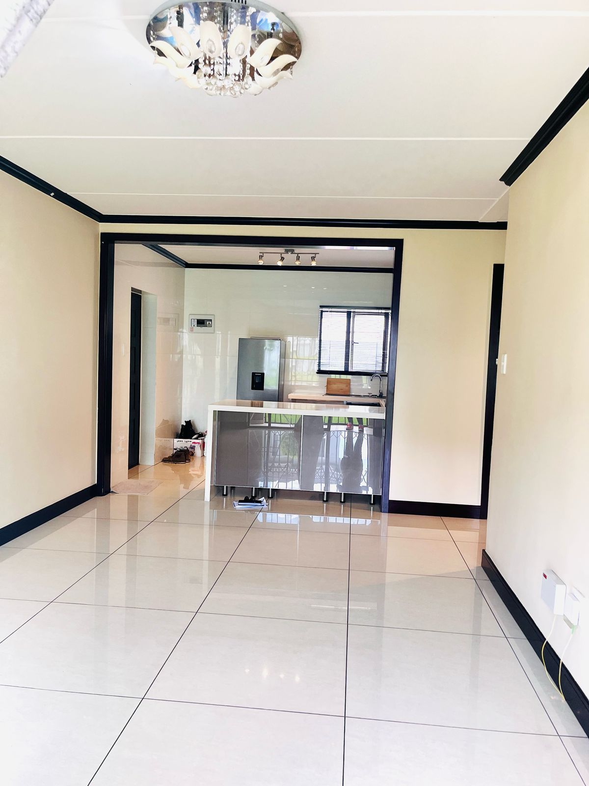 The open-plan layout seamlessly integrates the kitchen and lounge, creating a bright and airy space perfect for both entertaining and relaxing. Large windows flood the living area with natural light, creating a welcoming ambiance. The living room offers ample space for lounging, while the kitchen is a chef’s dream, featuring sleek cabinetry, high-quality countertops. Whether you’re preparing a quick meal or hosting friends and family, this kitchen is both functional and stylish.