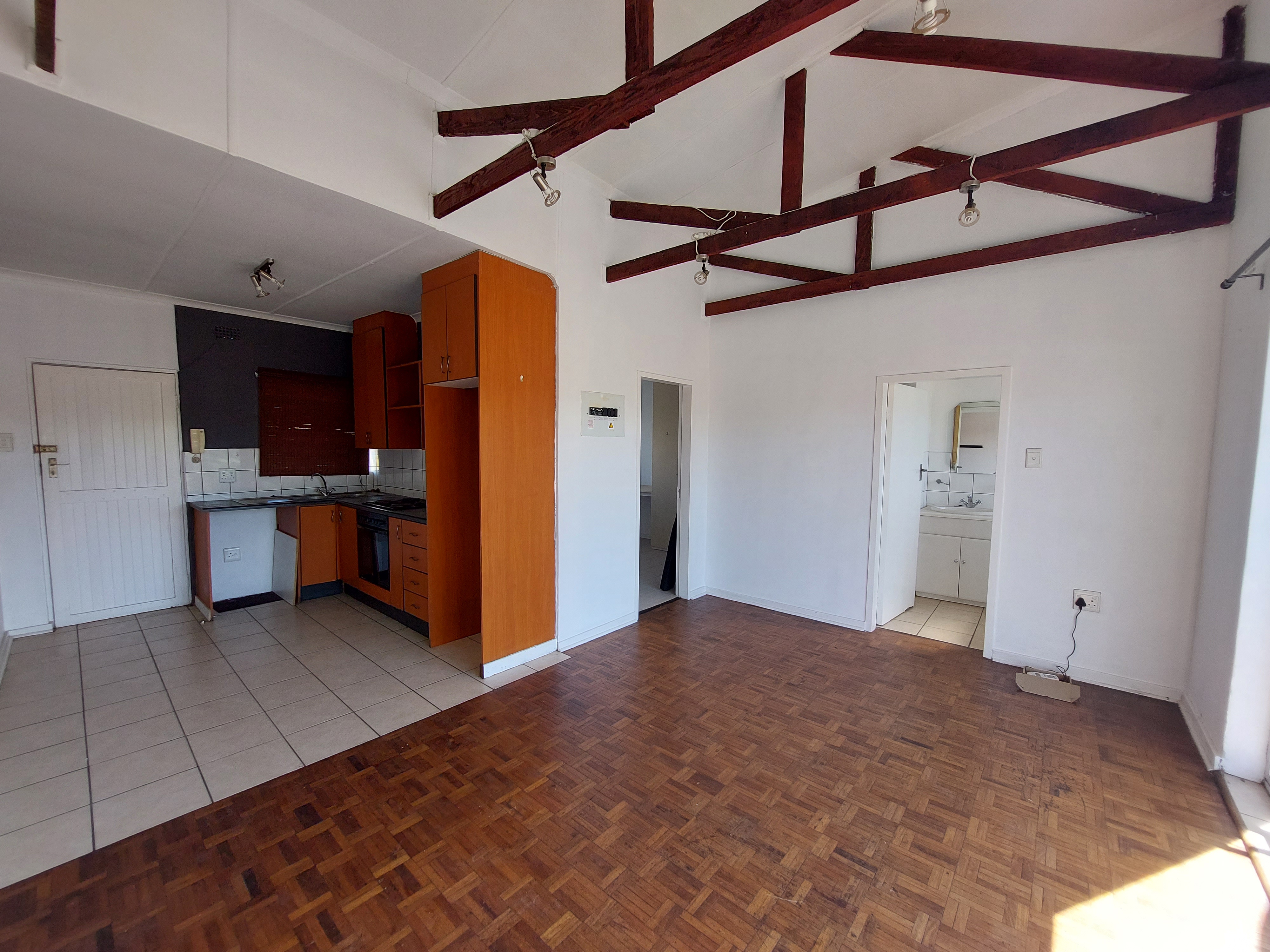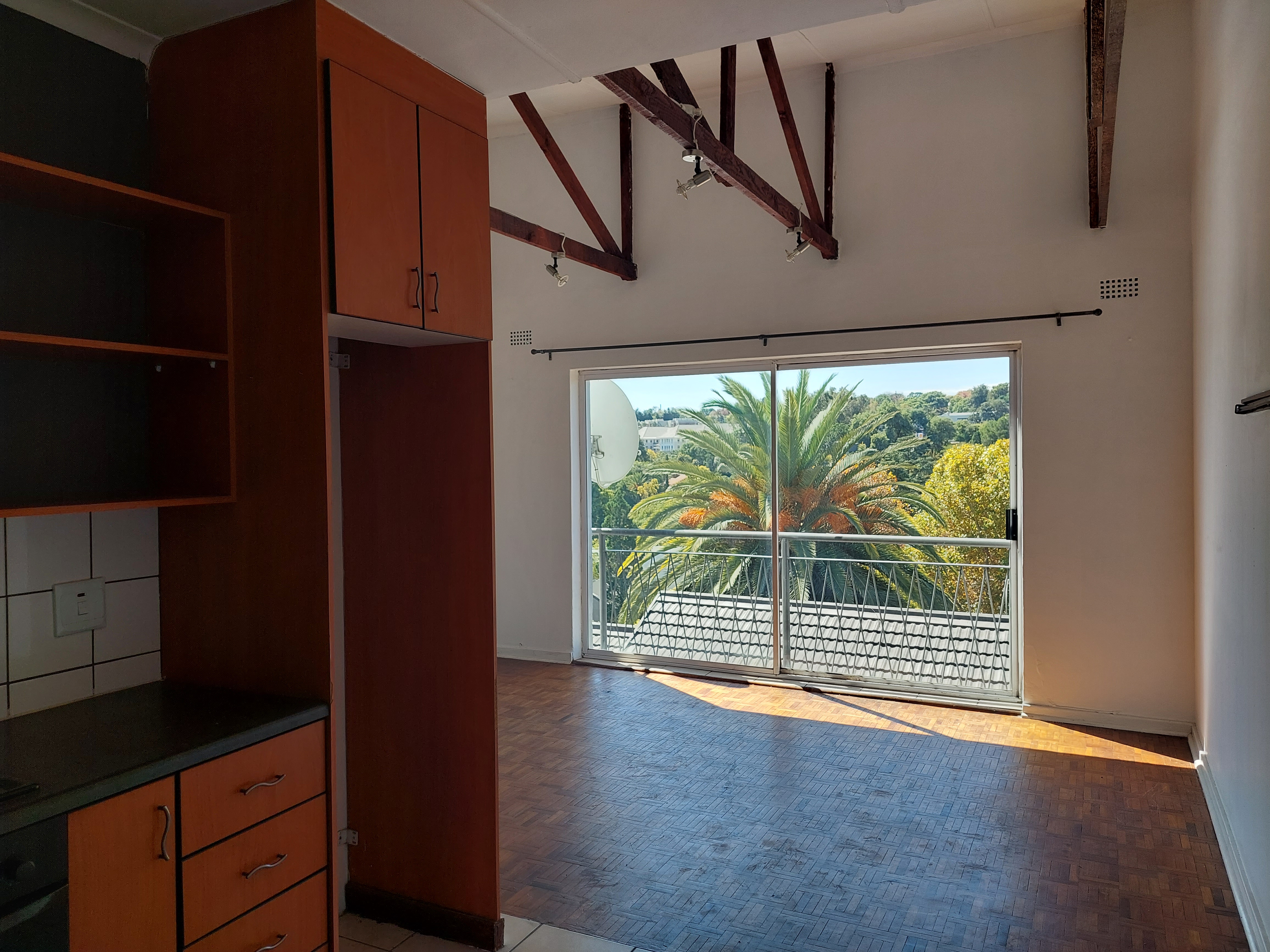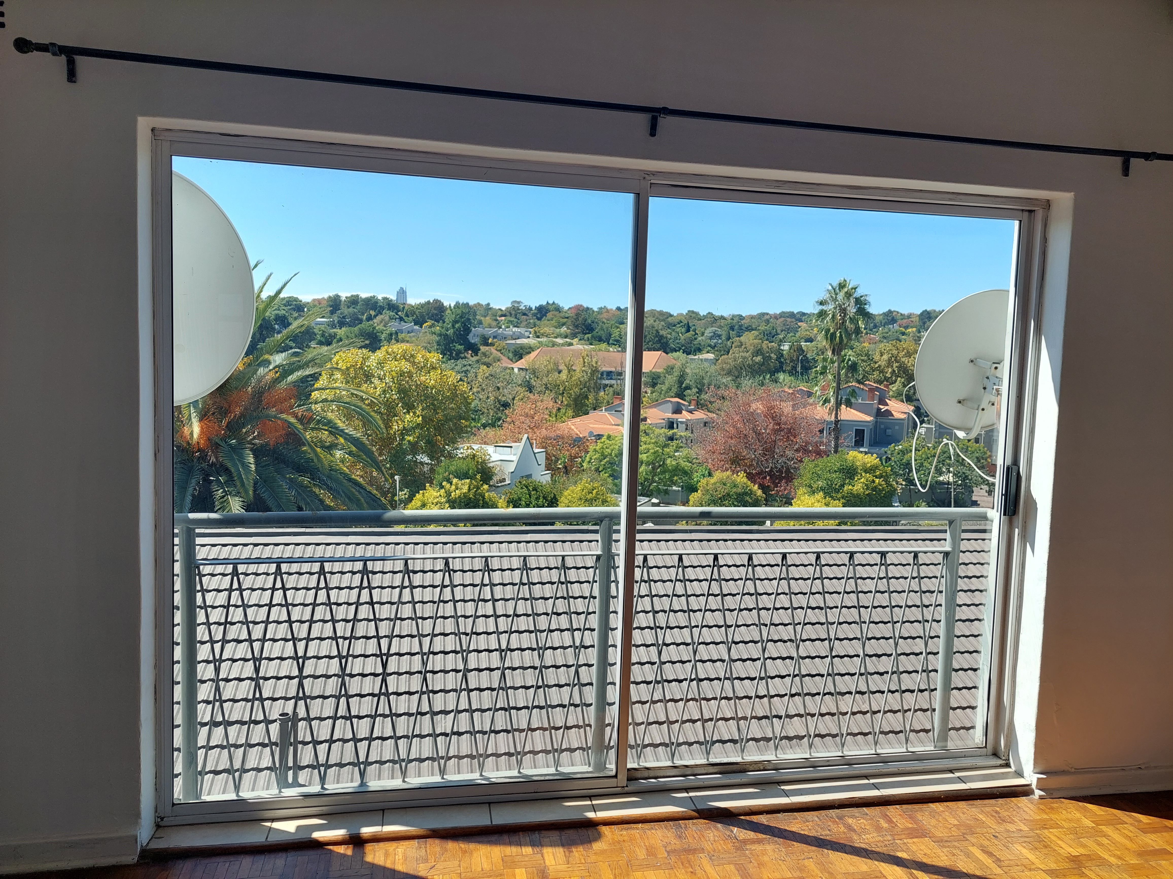 This is a safe and well secured 1 bedroom and 1 bathroom apartment located on Jan Smuts Ave in Craighall. The kitchen and living space are open plan. The kitchen has space for a single door fridge and 1 under counter appliance. The living room (parcade flooring) has a large glass window offering a stunning view