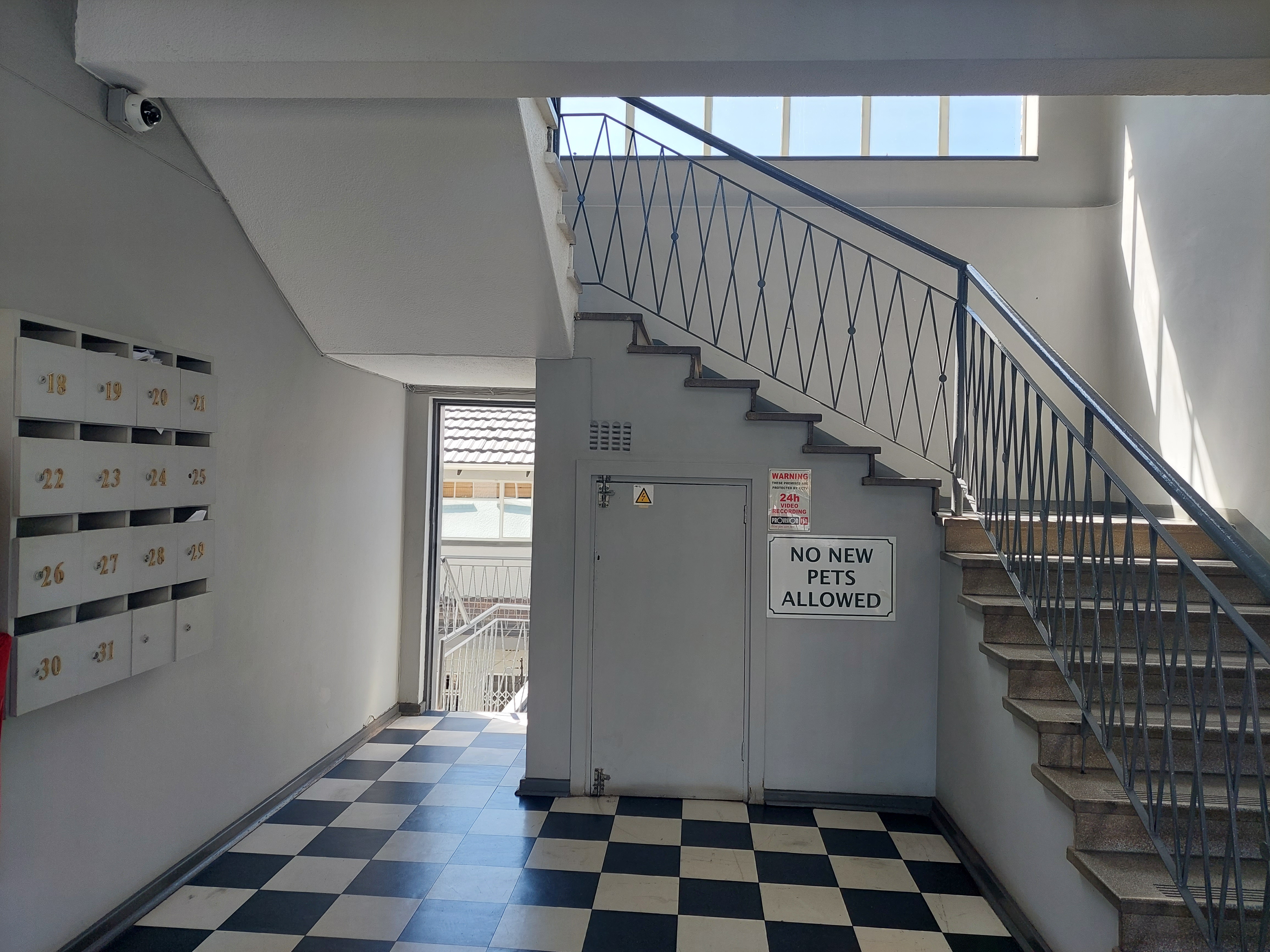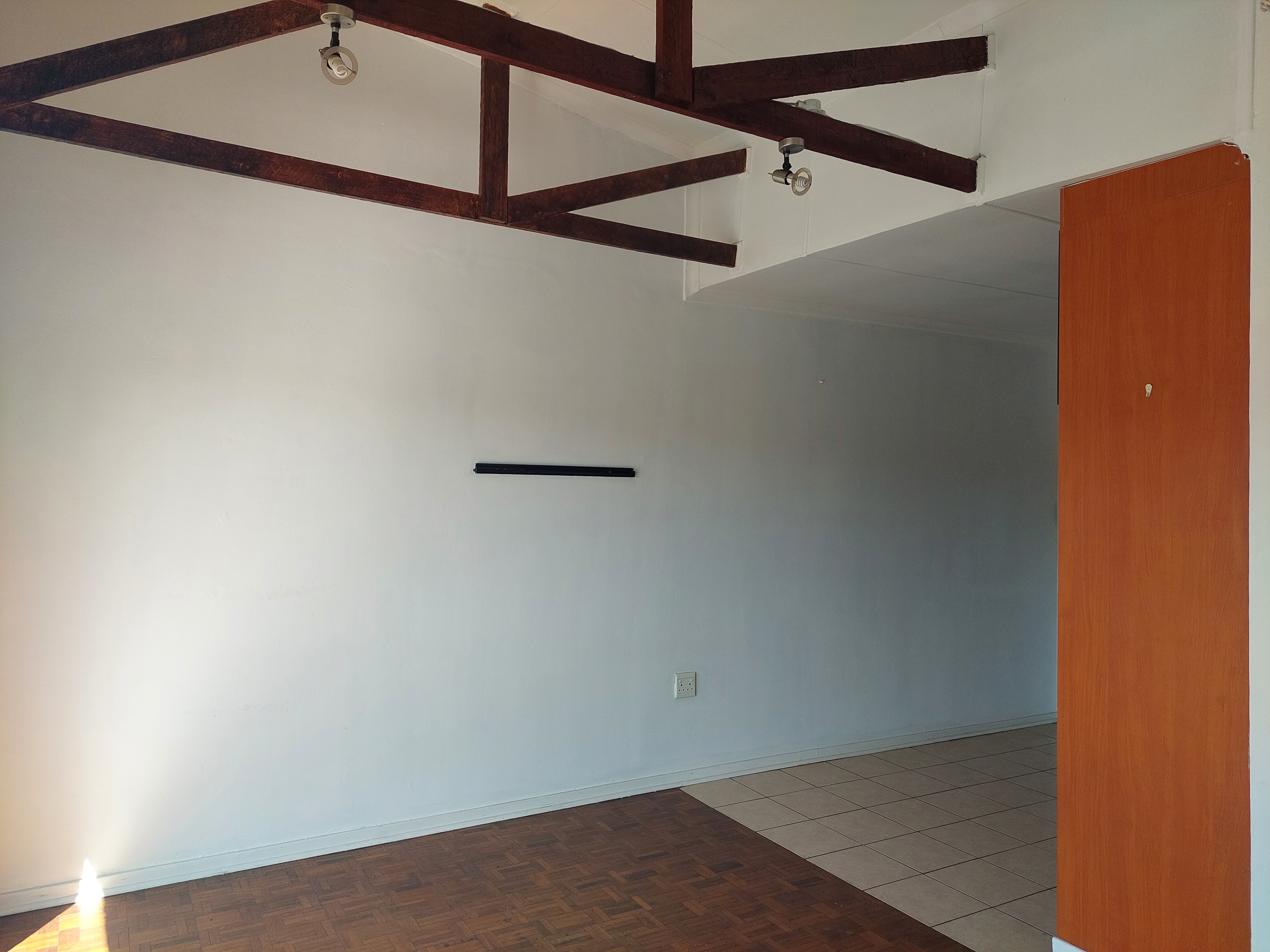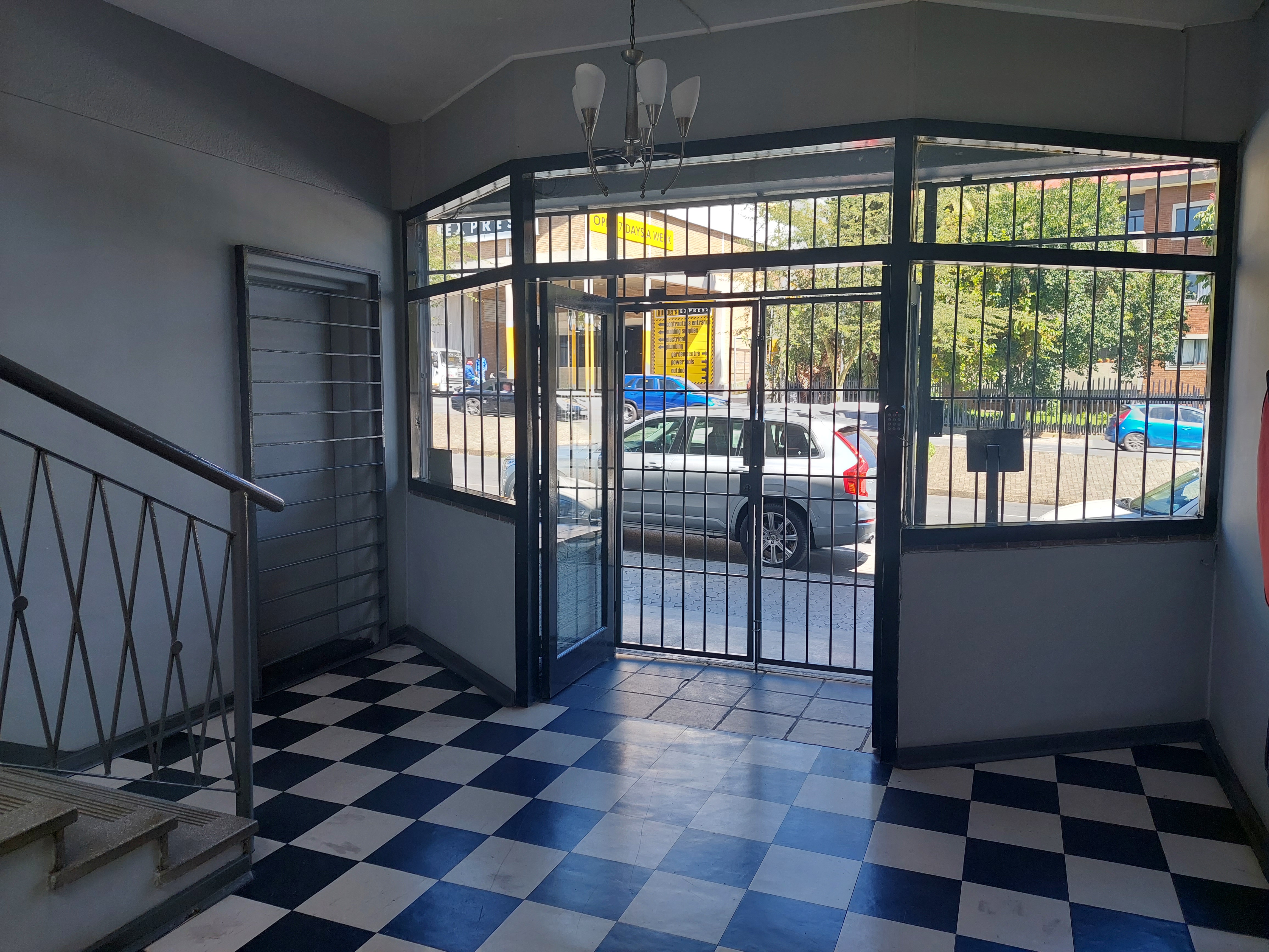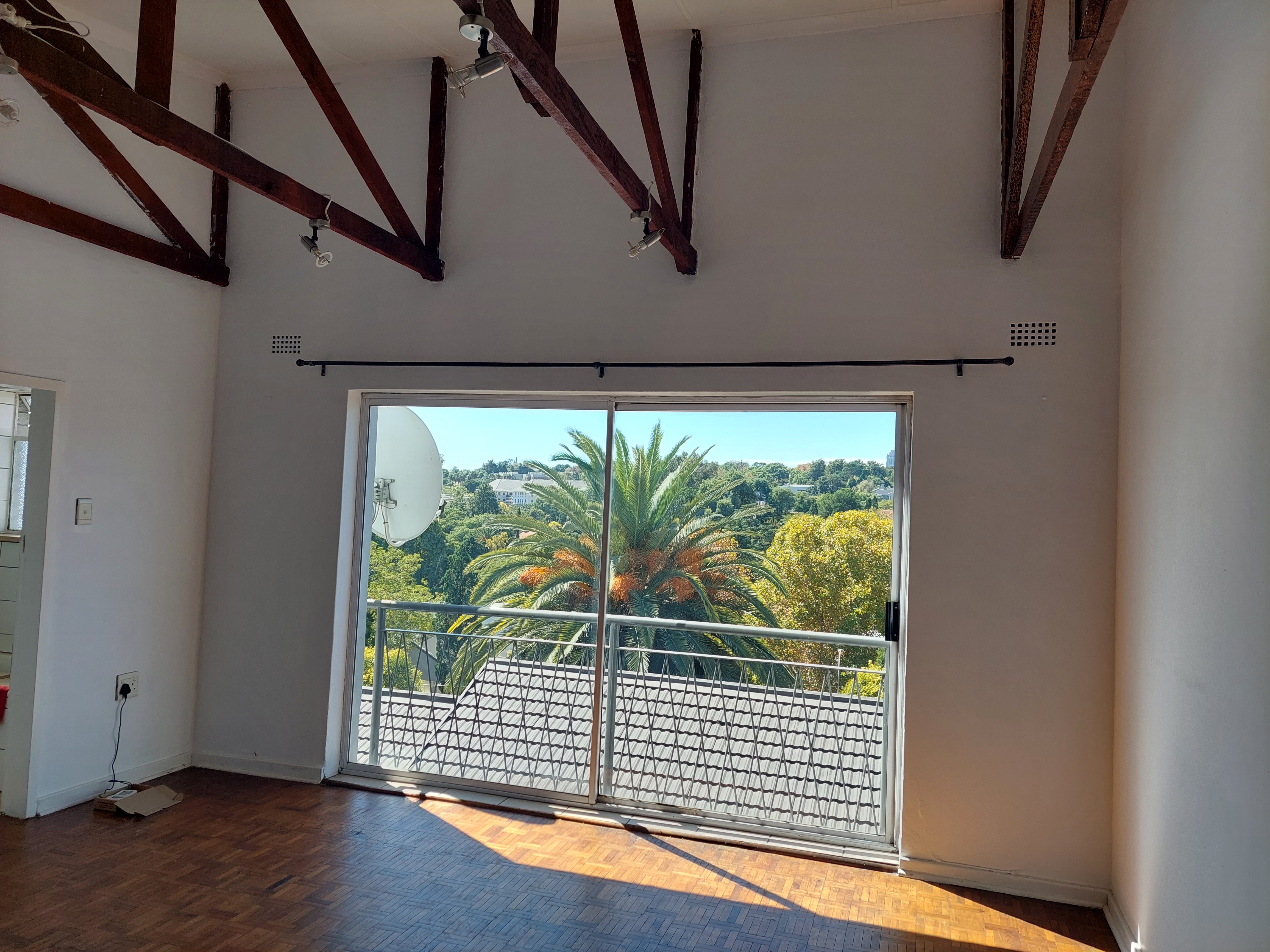 This is a safe and well secured 1 bedroom and 1 bathroom apartment located on Jan Smuts Ave in Craighall. The kitchen and living space are open plan. The kitchen has space for a single door fridge and 1 under counter appliance. The living room (parcade flooring) has a large glass window offering a stunning view