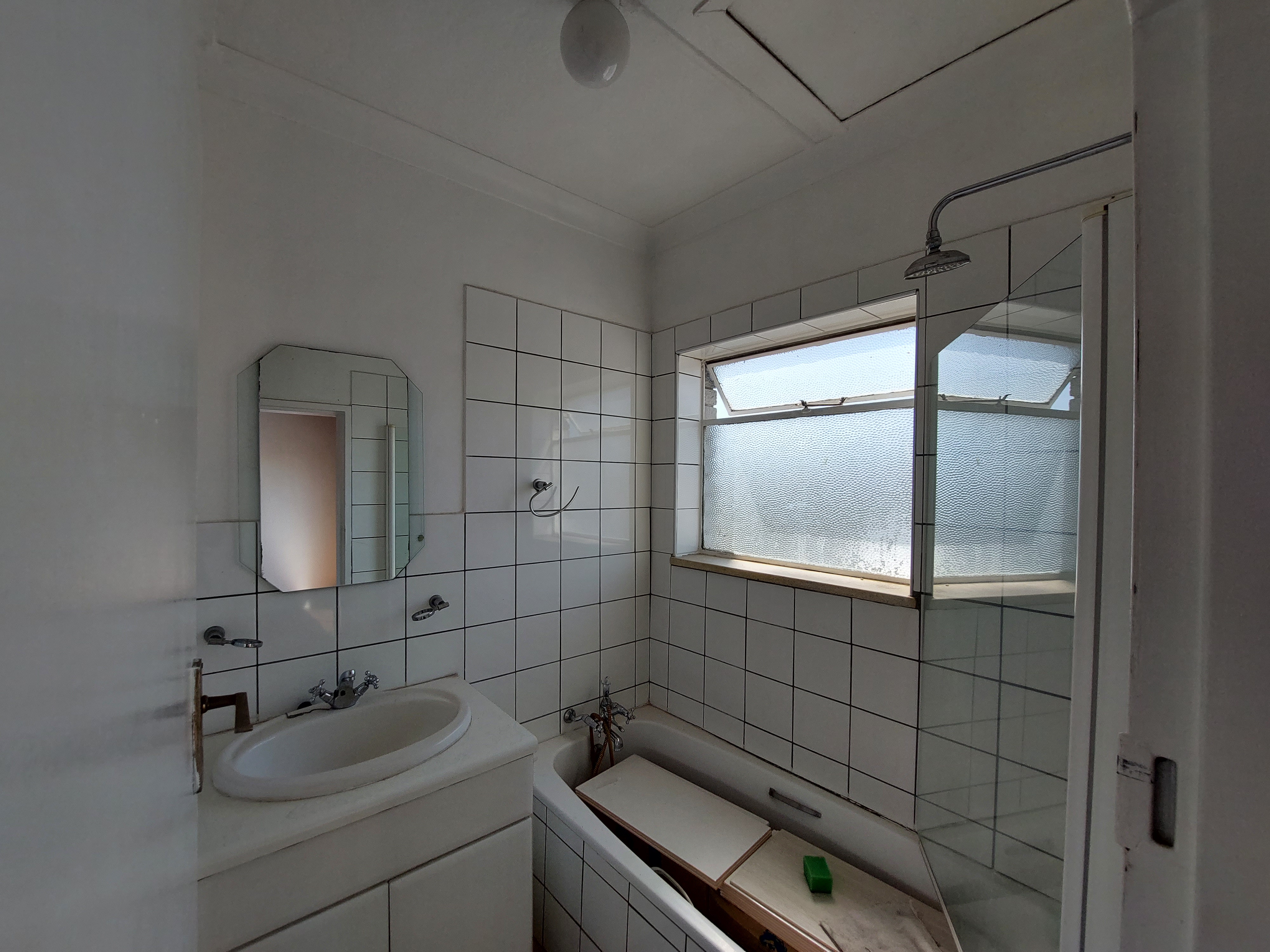 The bedroom and bathroom are separate. The bedroom is tiled and has built in cupboards. the bathroom offers a bath with a built in shower.