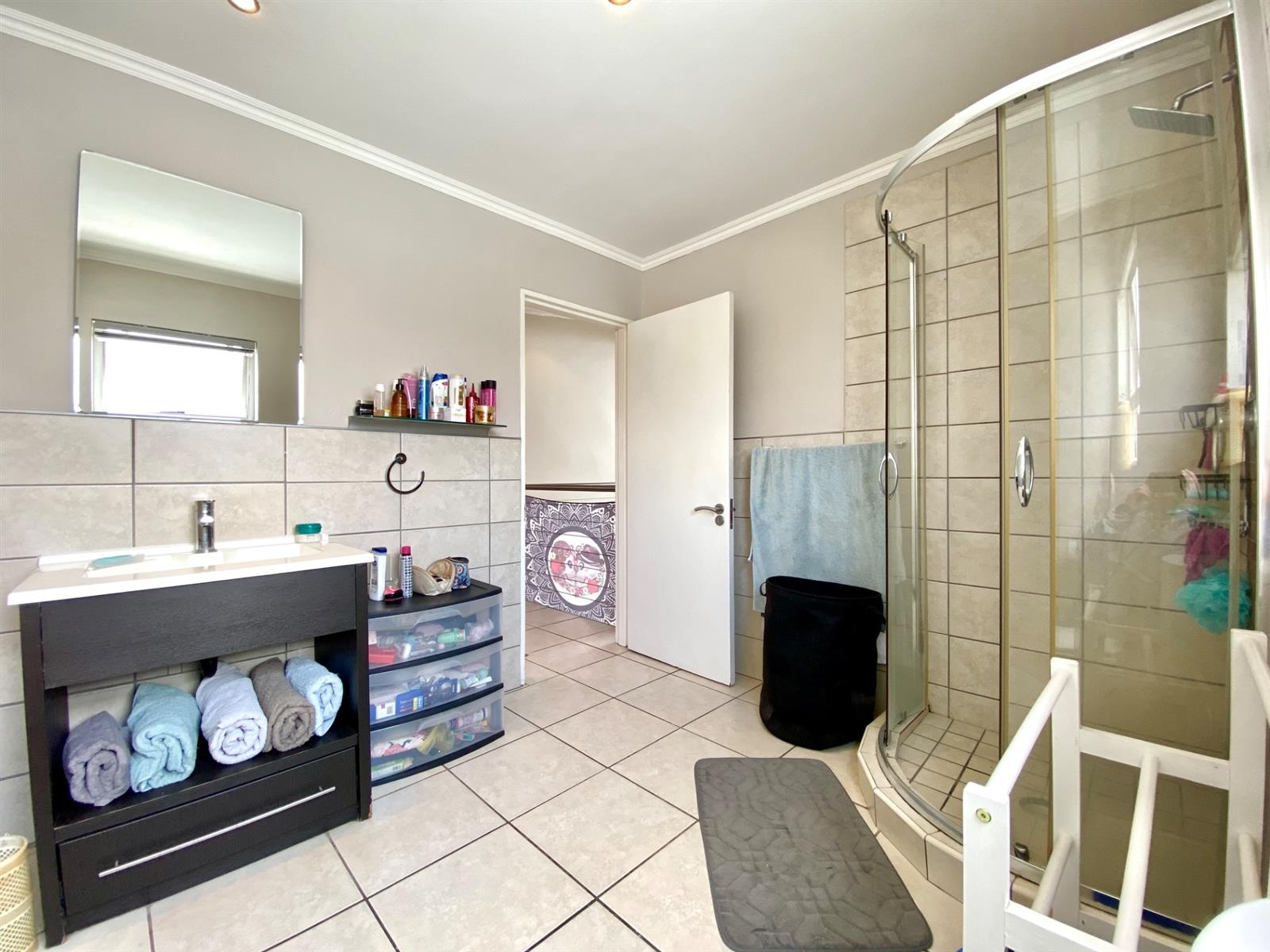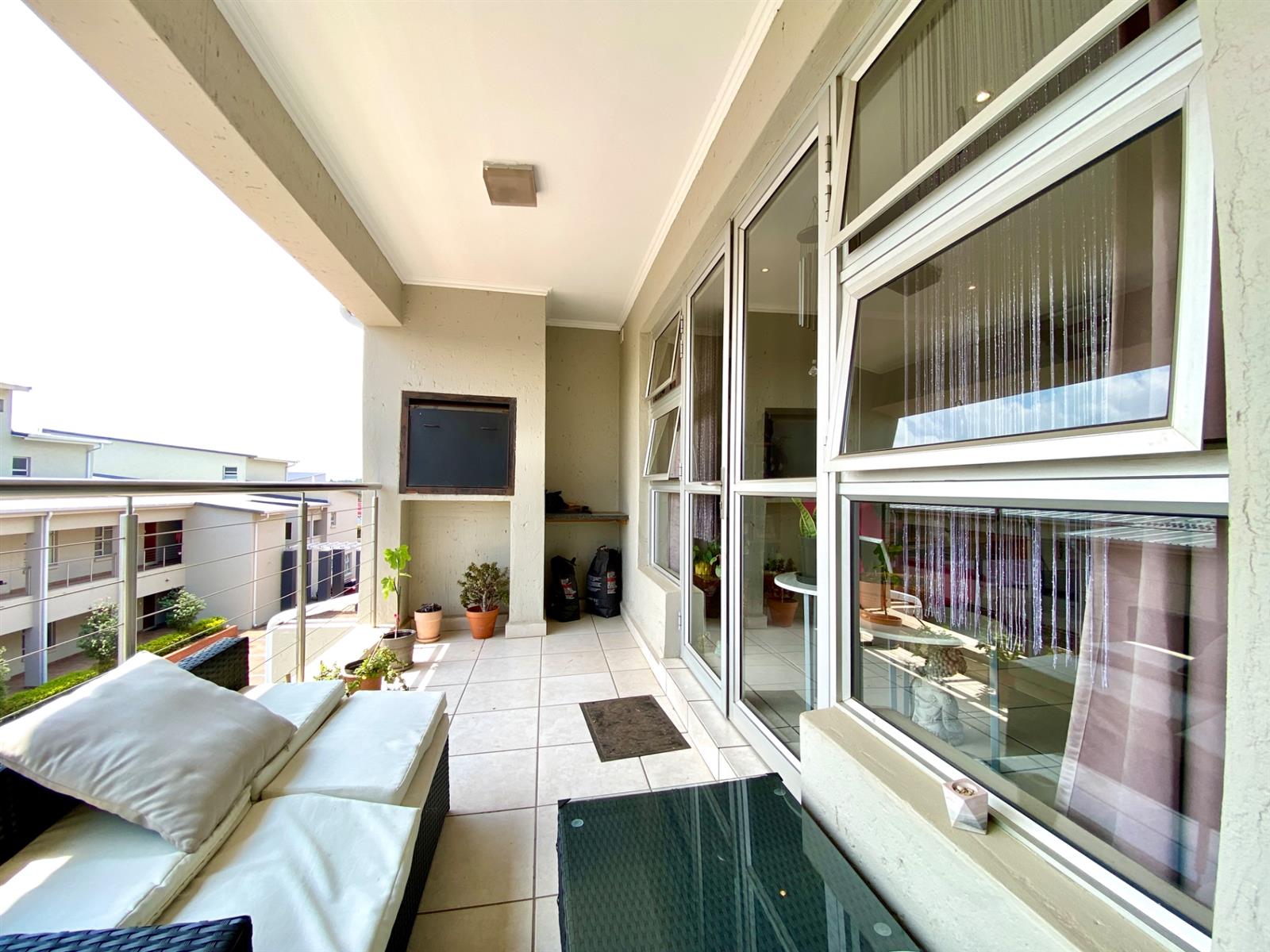 Security and peace of mind are paramount in this complex, featuring 24-hour guards, high perimeter walls, and electric fencing. The unit offers a bright, corner position with abundant natural light from numerous windows and white blinds.