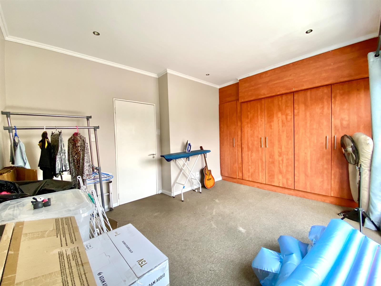 Ground-level bedroom with direct patio access and generous storage