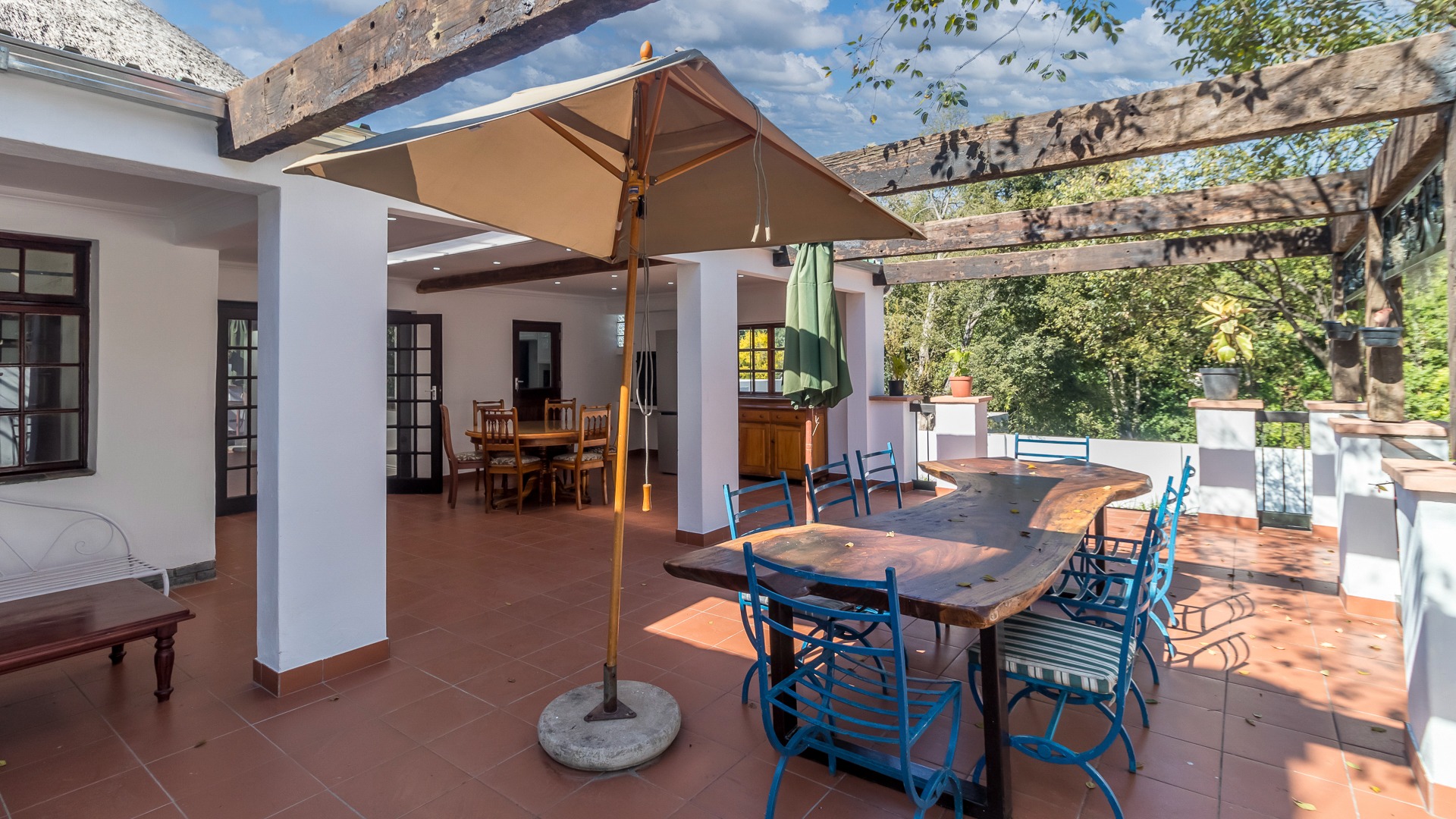 Escape to the tranquility of Craighall Park with this stunning original farmhouse for sale. This unique completely renovated home boasts a thatch roof, waterfall, and wetland in the front garden, offering a peaceful retreat from the hustle and bustle of daily life.