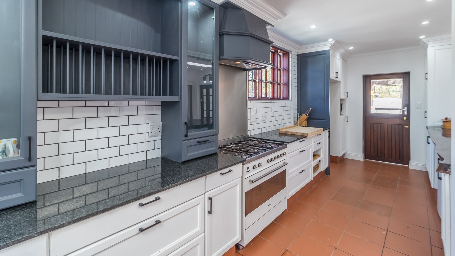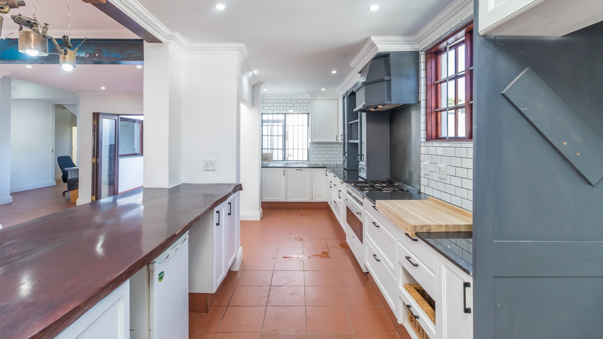 The modern kitchen features skylights, subway tiles, and quirky light fittings, making it a chef's dream. Entertain guests in the west-facing covered patio with a built-in braai, creating unforgettable memories.