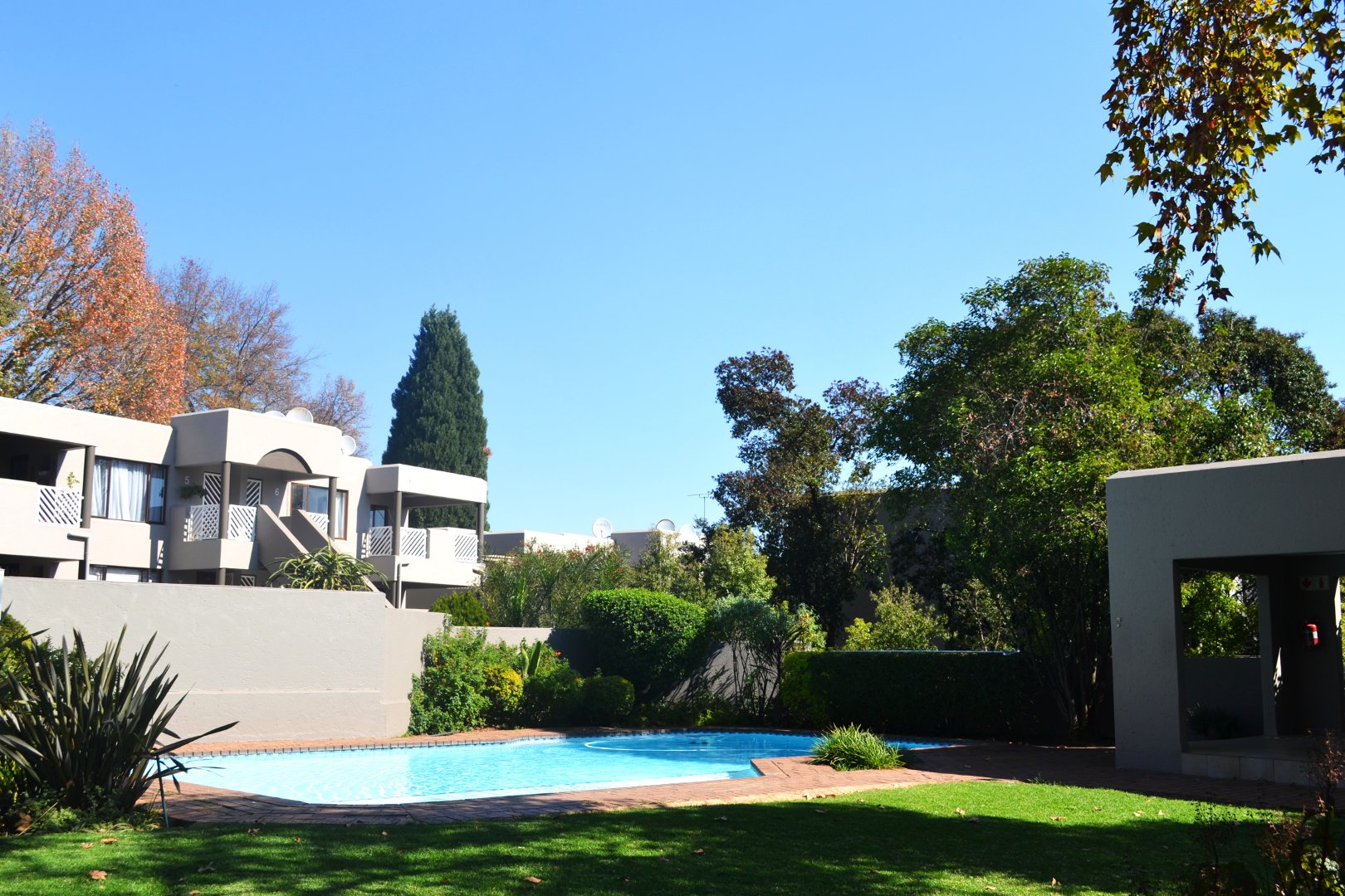 This complex offers a large enclosed pool, clubhouse and barbeque facilities.