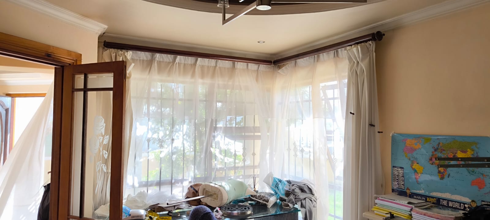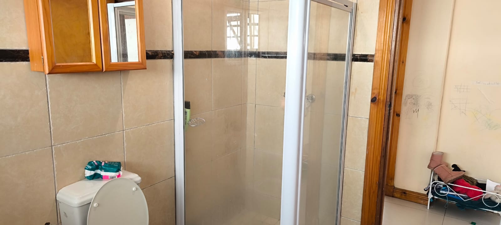 Spacious family home with 5 bedrooms and 4 bathrooms fully porcelain tiled in the lounge, kitchen , bathroom .