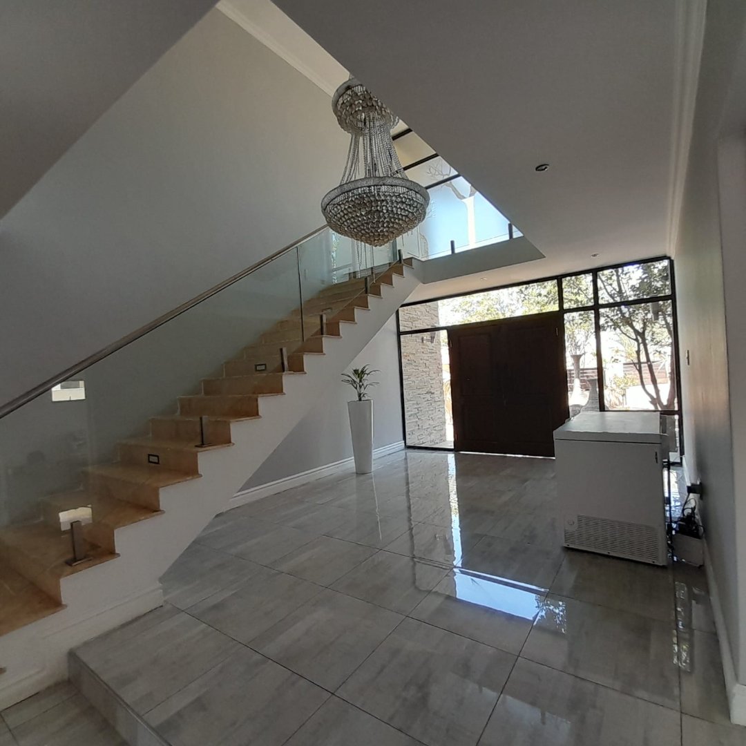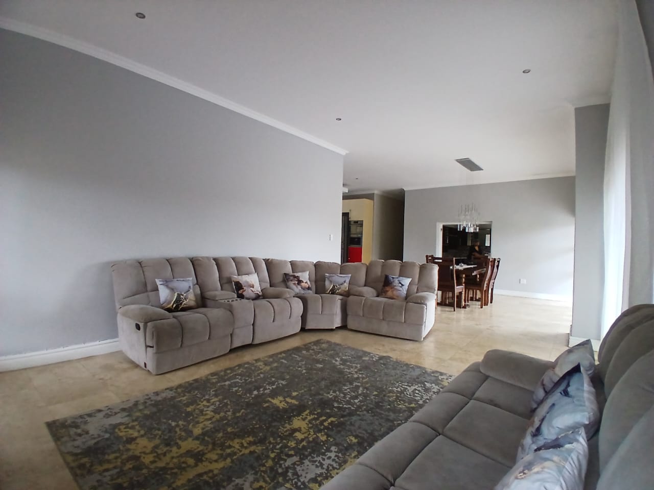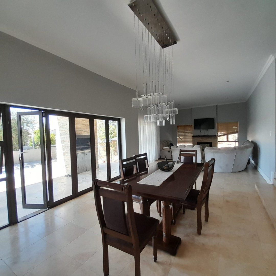 Step outside to a manicured garden featuring a swimming pool and a built-in braai area, perfect for entertaining or unwinding in style. Additional highlights include staff quarters and ample parking space.