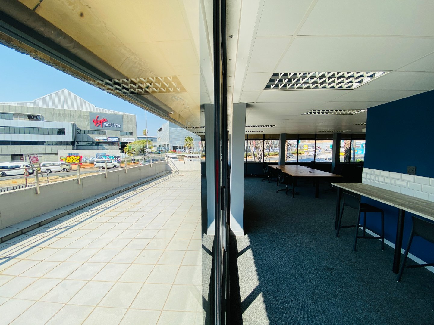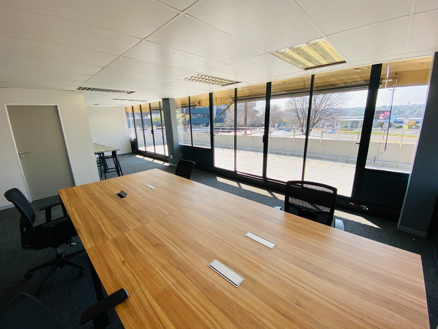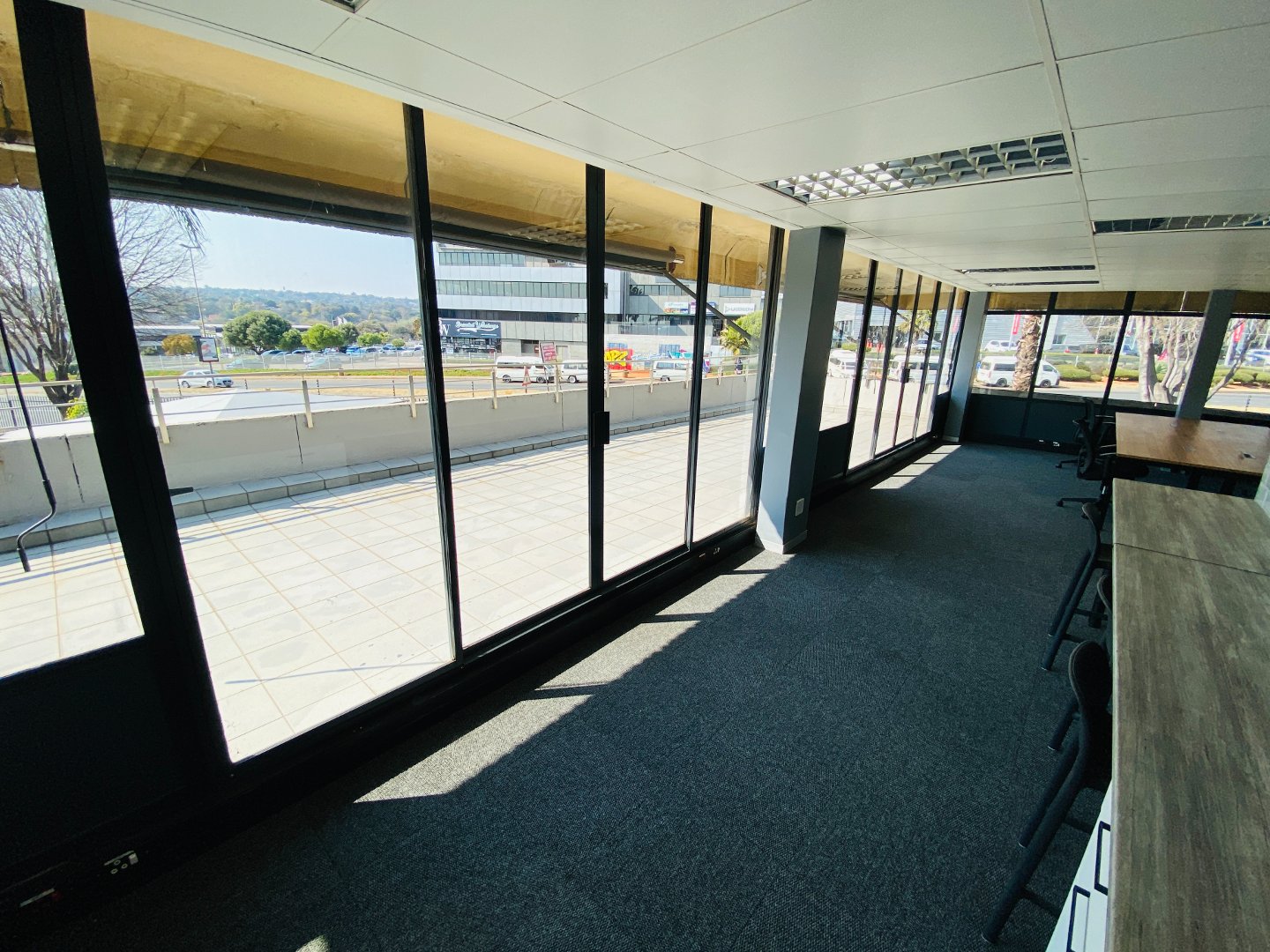 This office provides a reception area, open plan work space, dry kitchen (communal kitchens are also available), boardroom with a large private balcony creating an open feeling and relaxed getaway. This office has been staged, furniture options are available at additional cost. The buildings common areas have all been upgraded to a modern clean look creating an inviting environment. Well-equipped property combining modern amenities with a prime address in one of Johannesburg’s most sought-after commercial nodes.